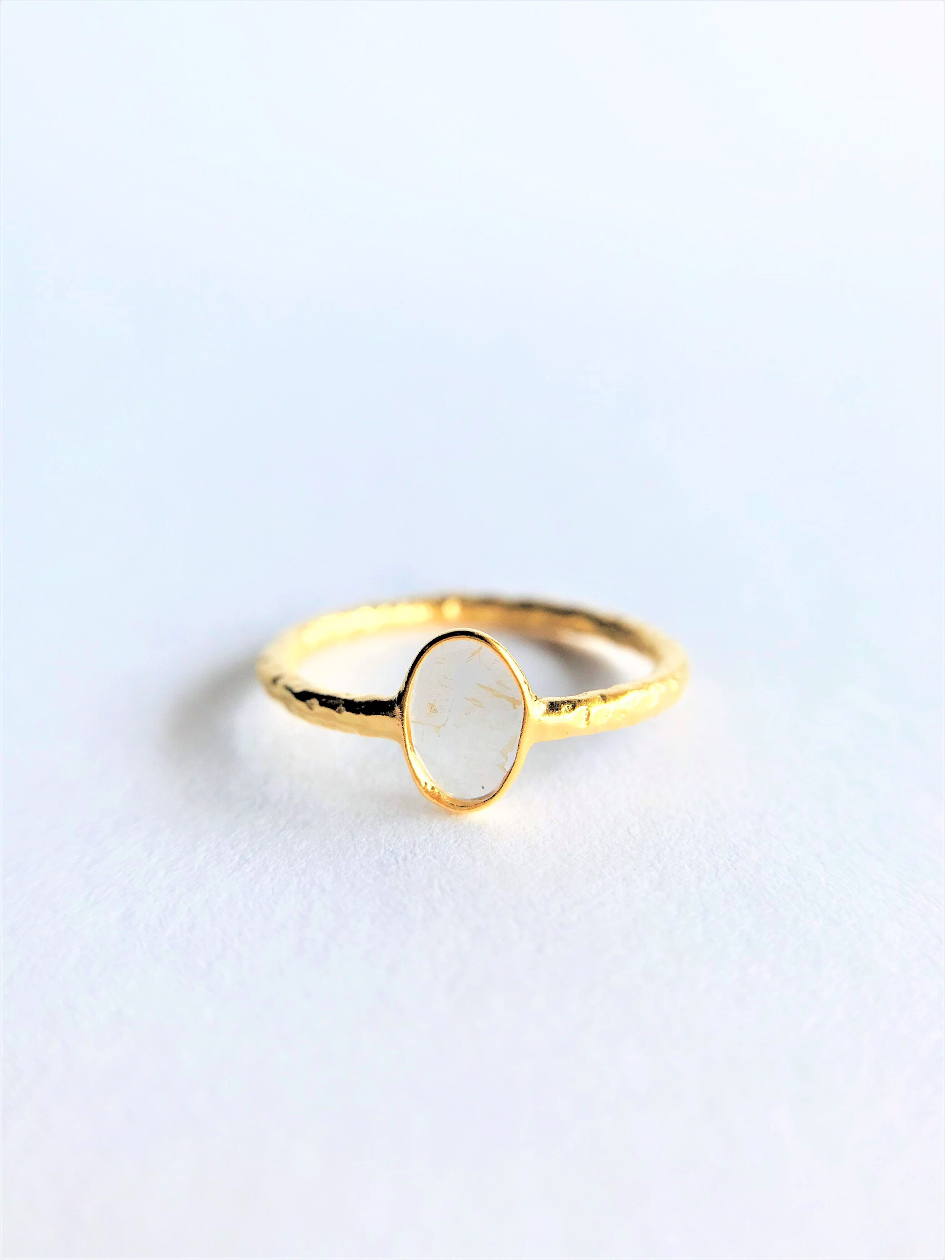 不揃いのスライスダイヤで、中に刻まれている内容物も個々なので、唯一無二のリングとして身に着けていただけます。