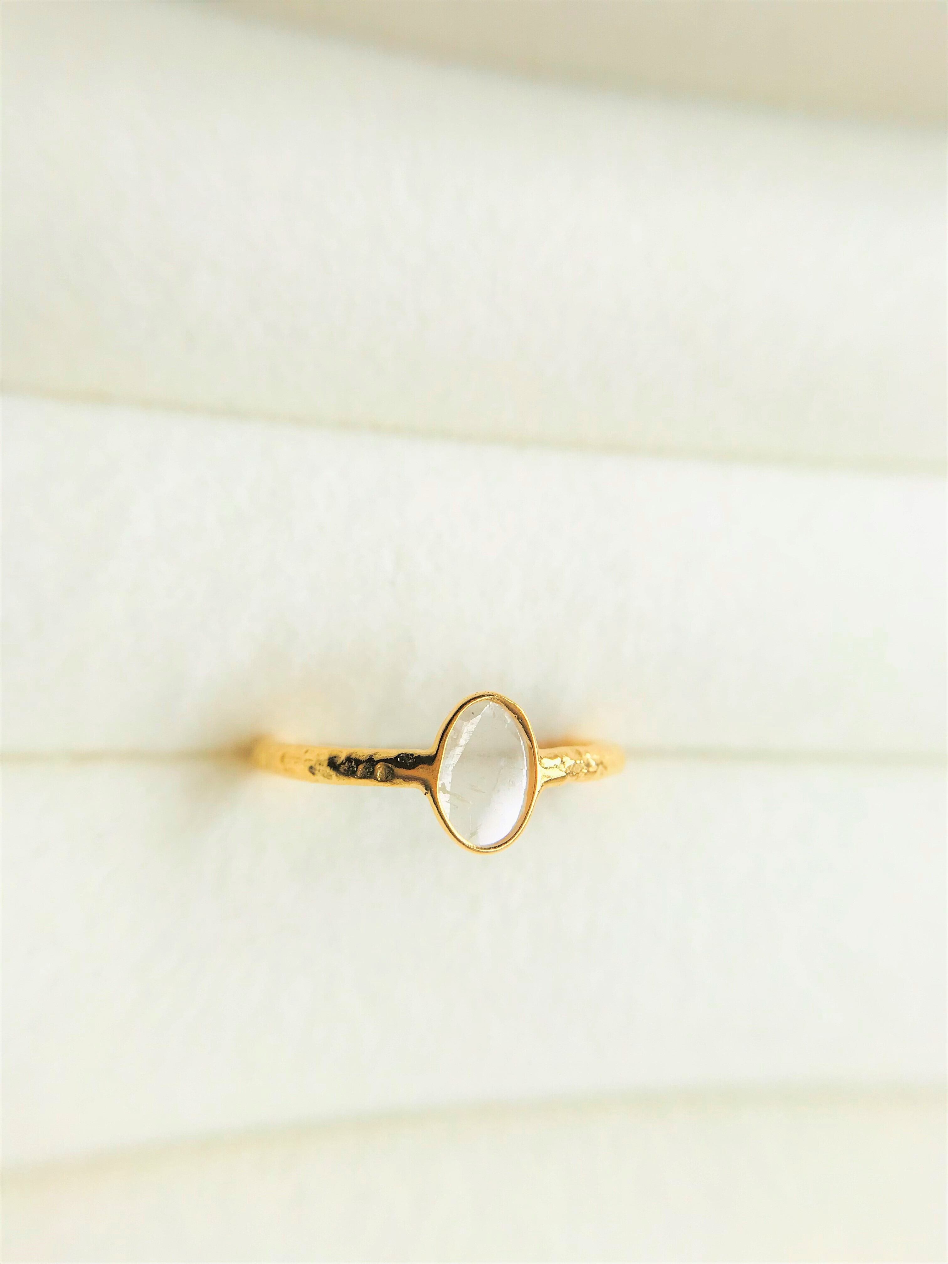 スライスダイヤは、突起が少なく指に馴染みつけごこち抜群なので、普段使いにおすすめです。18Kコーティング素材で指輪を仕上げています。