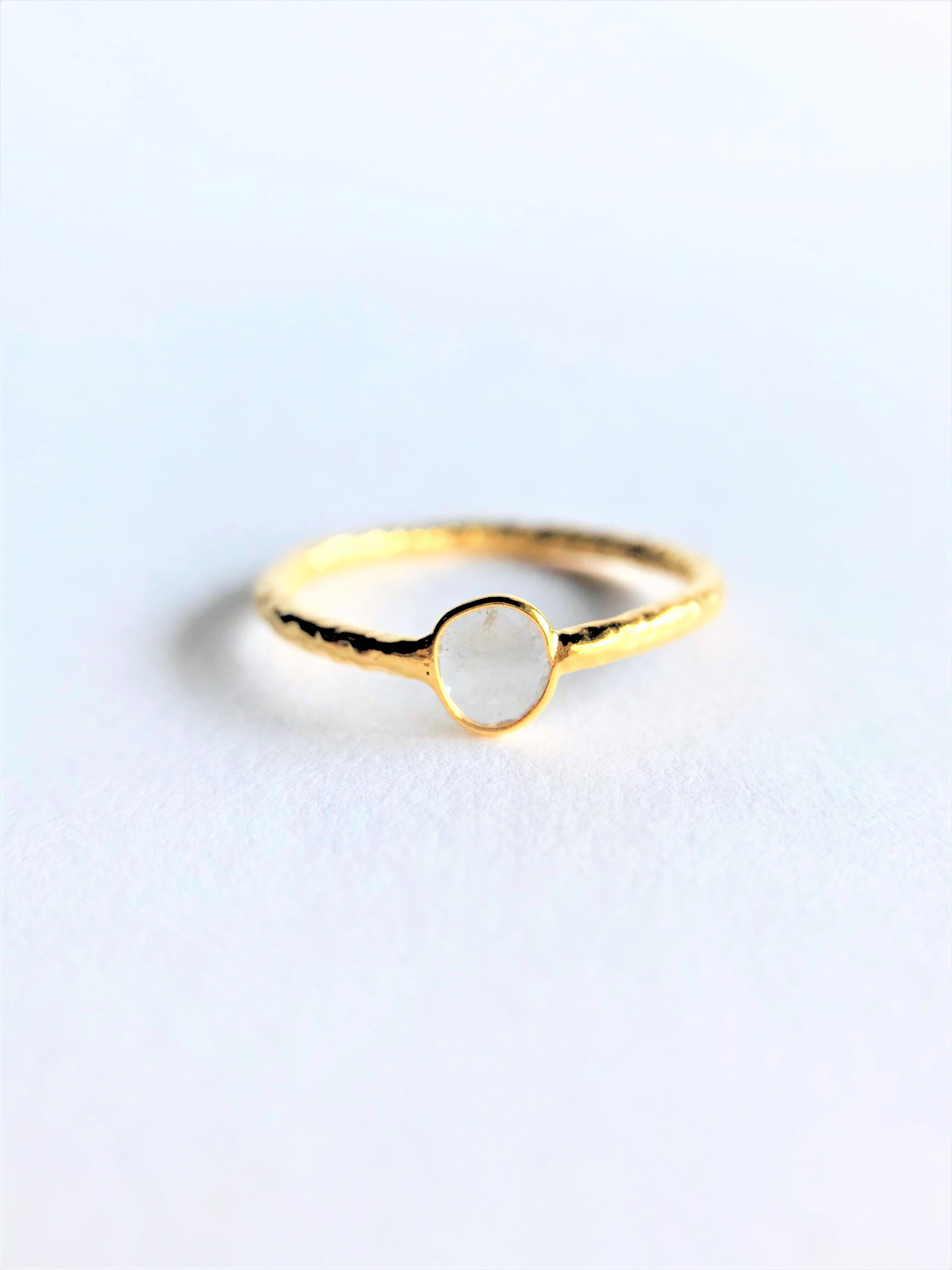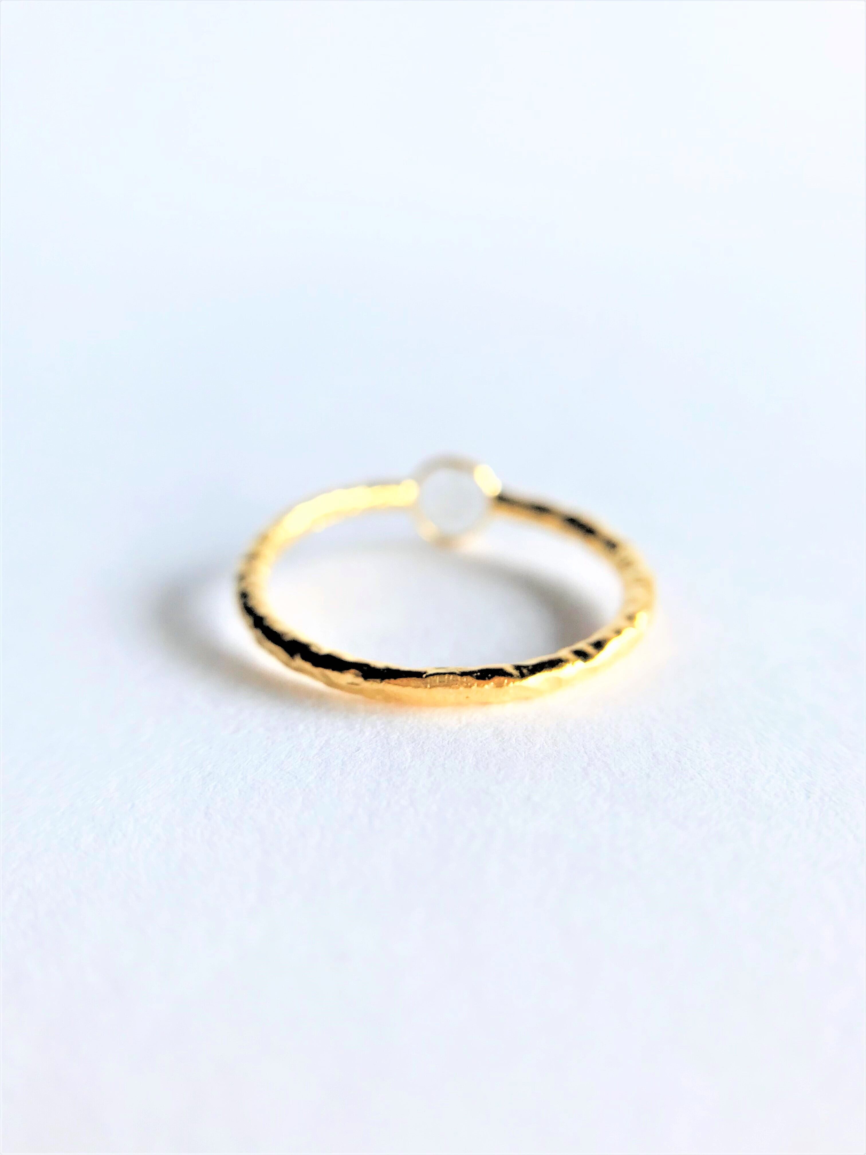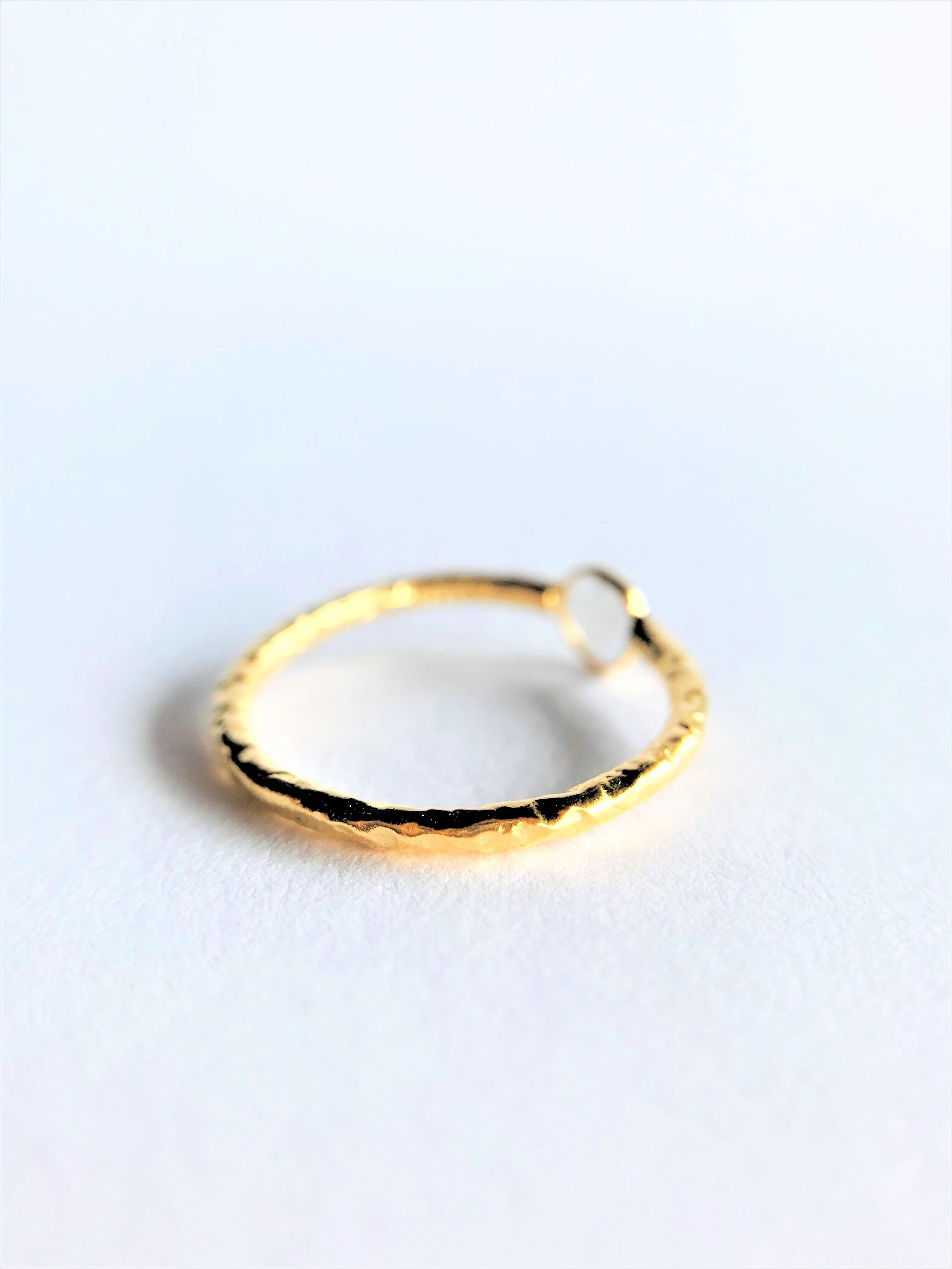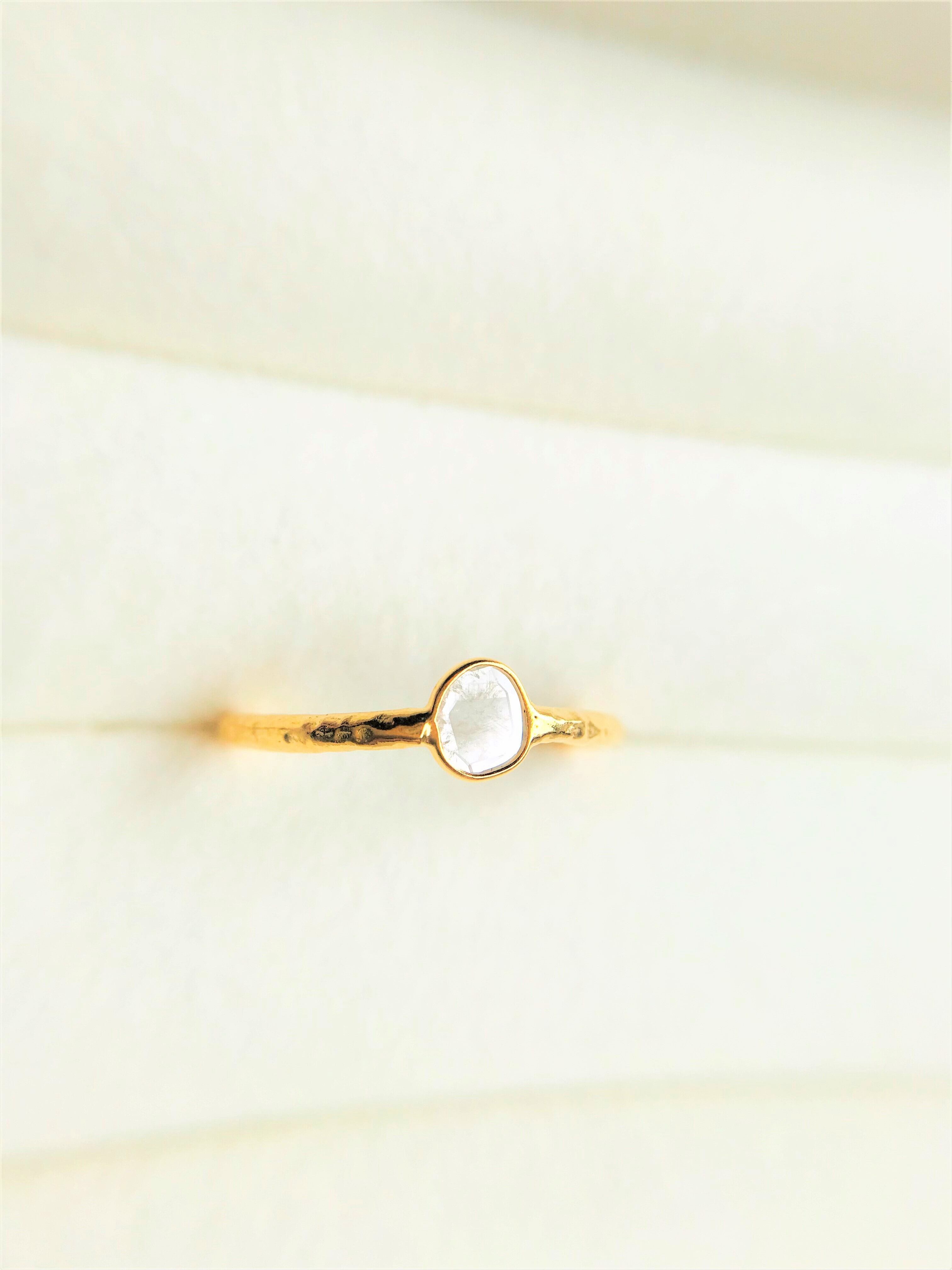 スライスダイヤは、突起が少なく指に馴染みつけごこち抜群なので、普段使いにおすすめです。18Kコーティング素材で指輪を仕上げています。