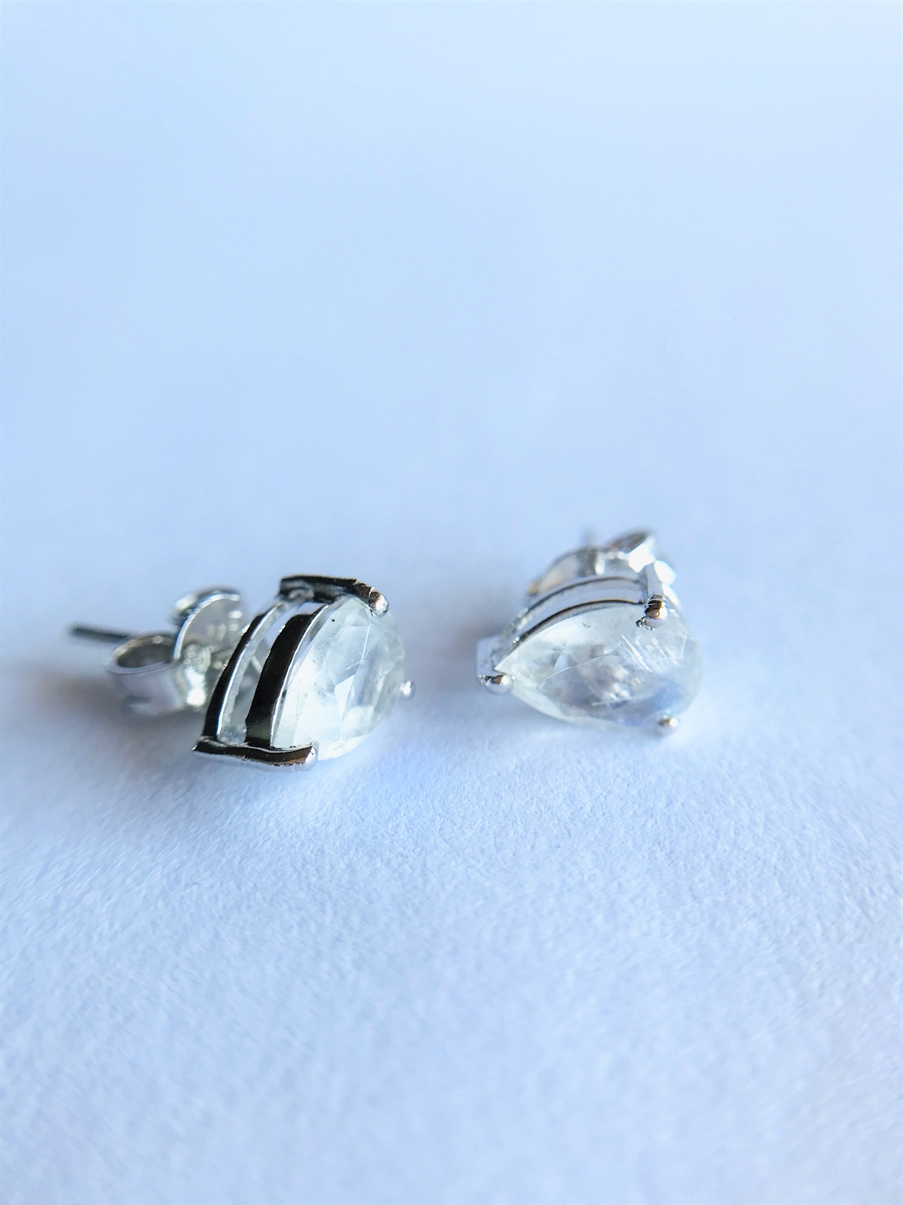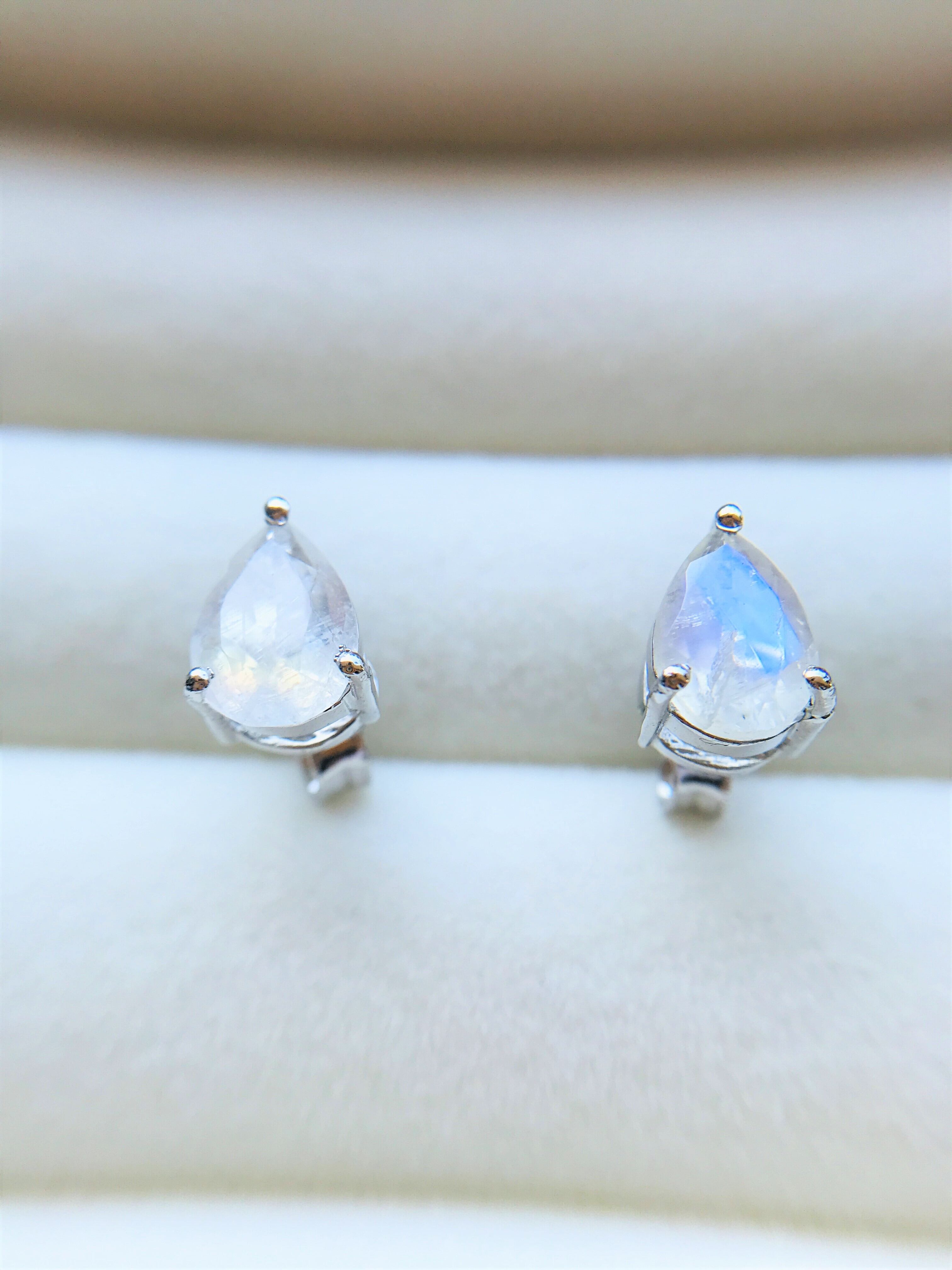 しずく型のムーンストーンのスールを3つの爪で止めてピアスに仕上げました。