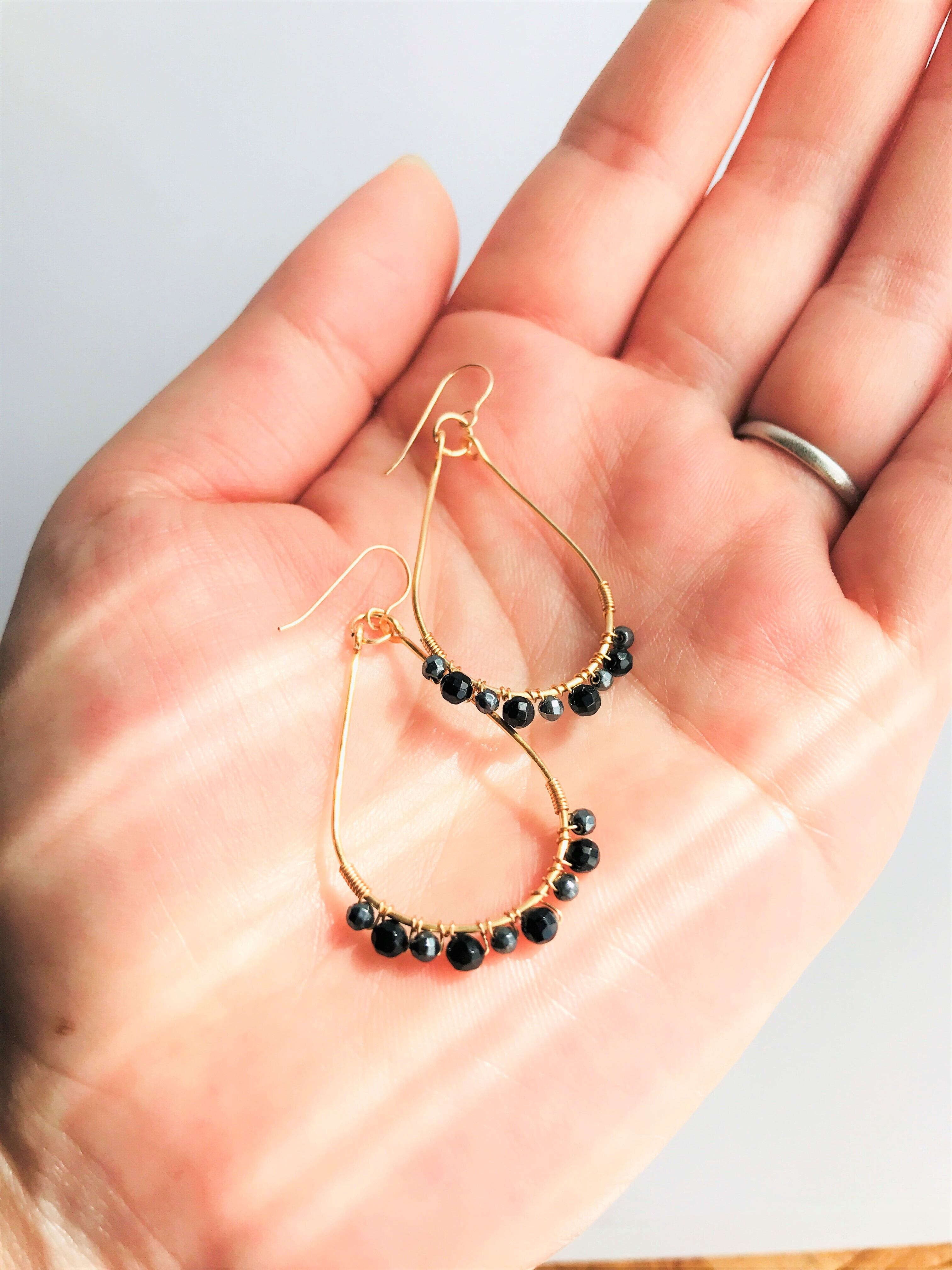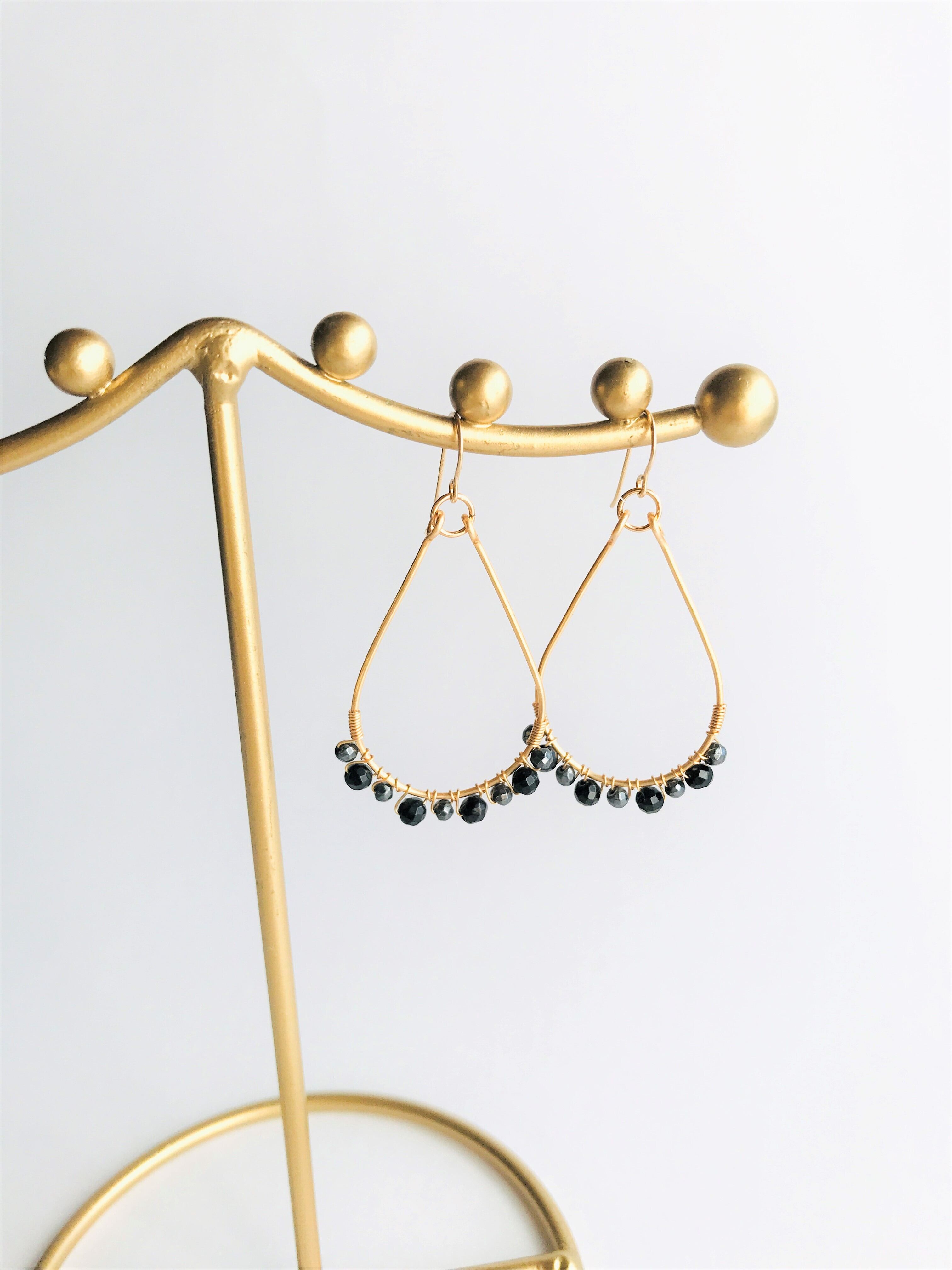 14kgfワイヤーをしずく型に加工し、耳元でゆらゆら揺れるようにしました。