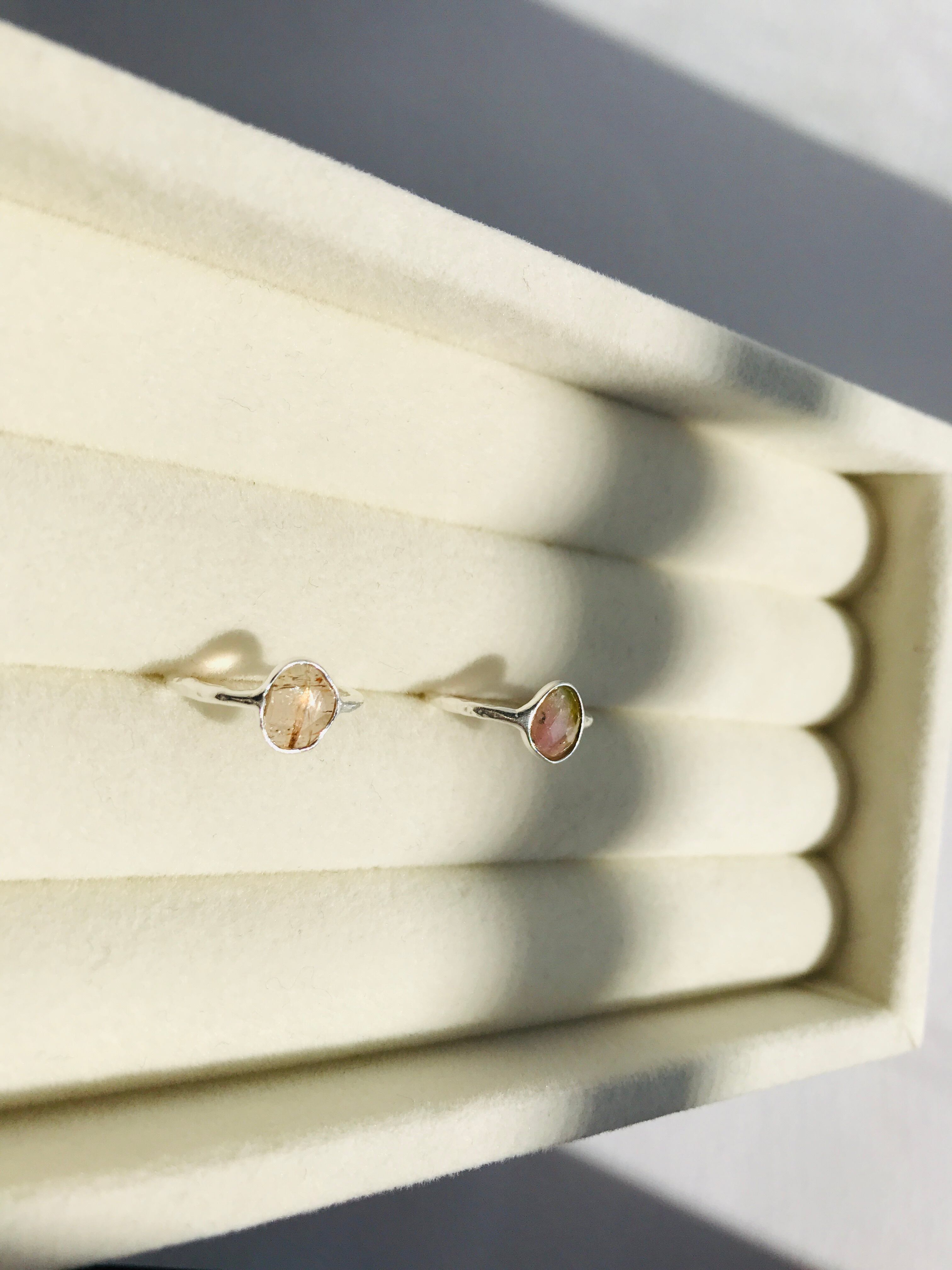 1つ1つ石のサイズや形状がちがうので、自分好みの色、サイズ、形を選んでください。唯一無二の自分だけの指輪になります。