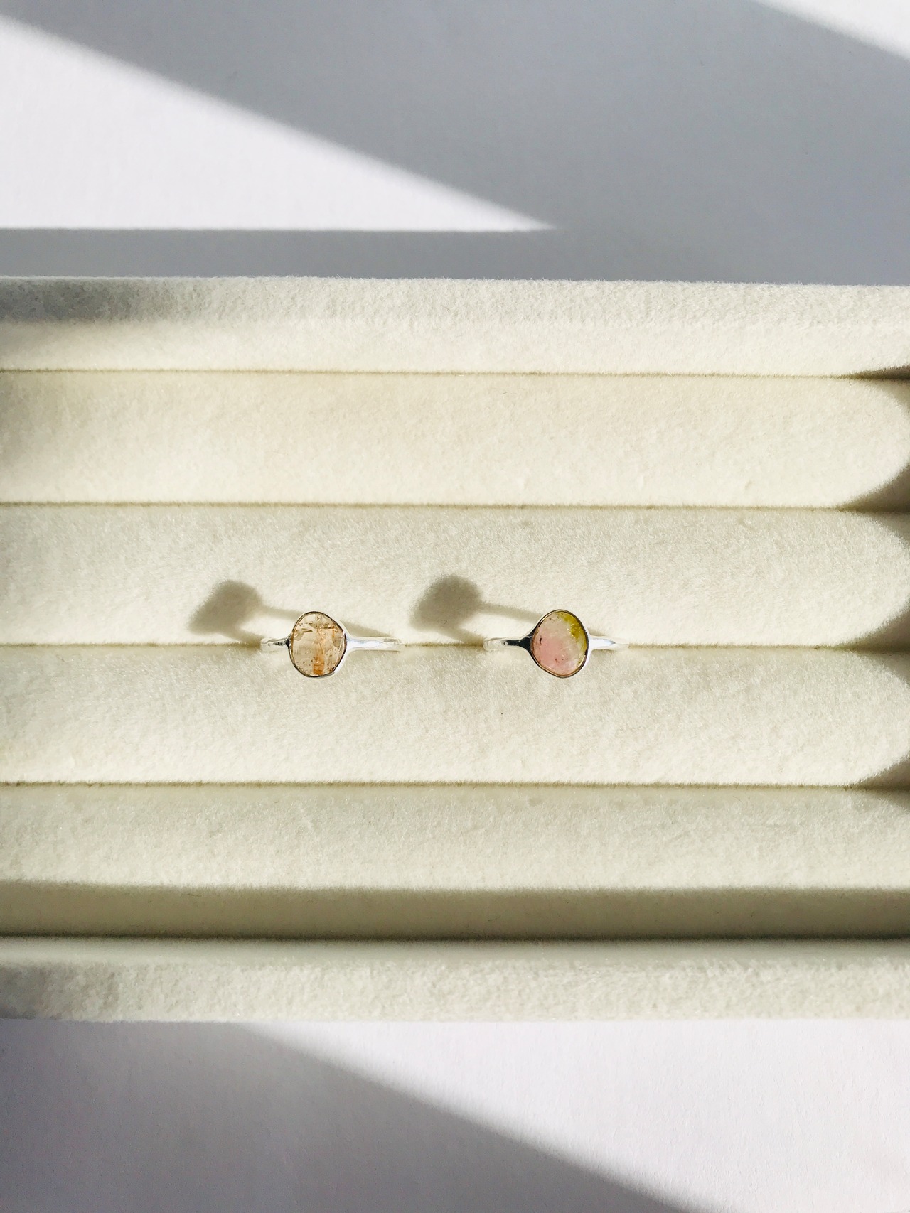 そんなトルマリンをスライスしてリングにすることで、透き通った素敵な色合いになっています。