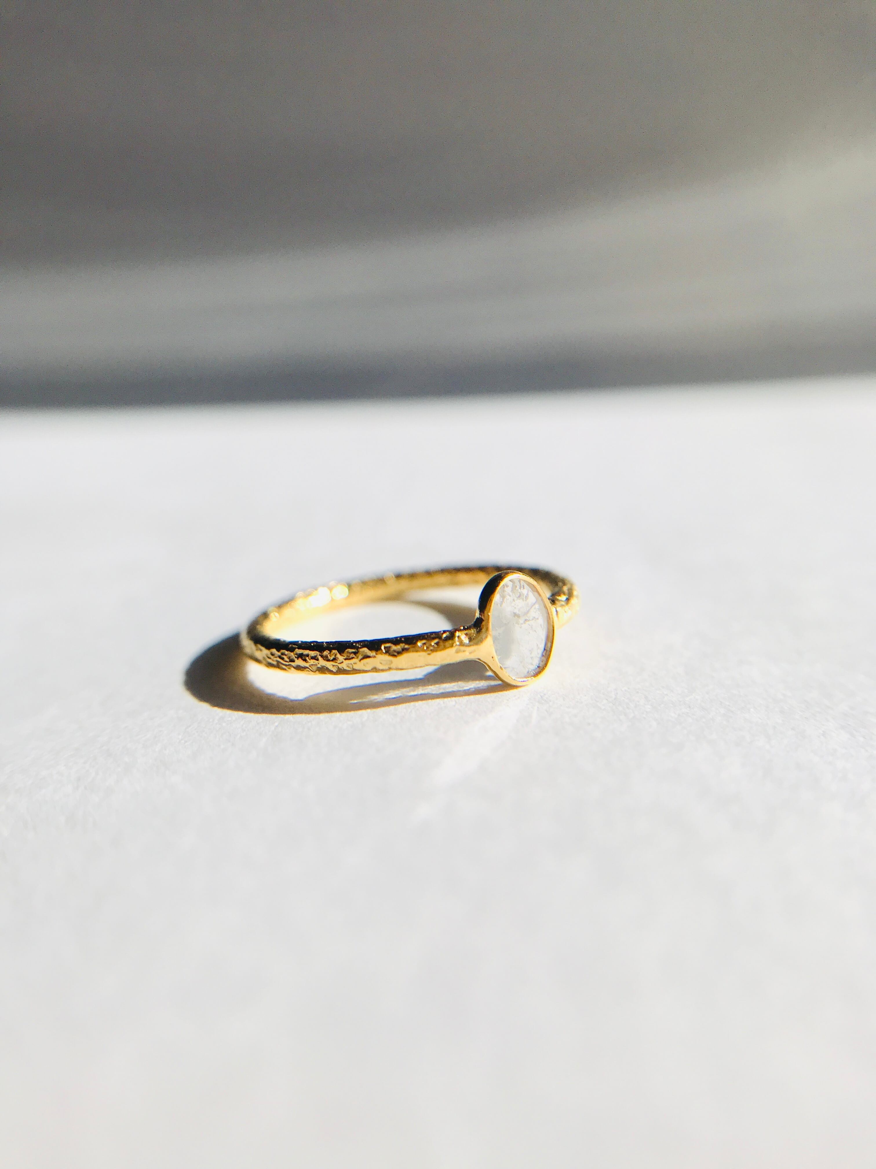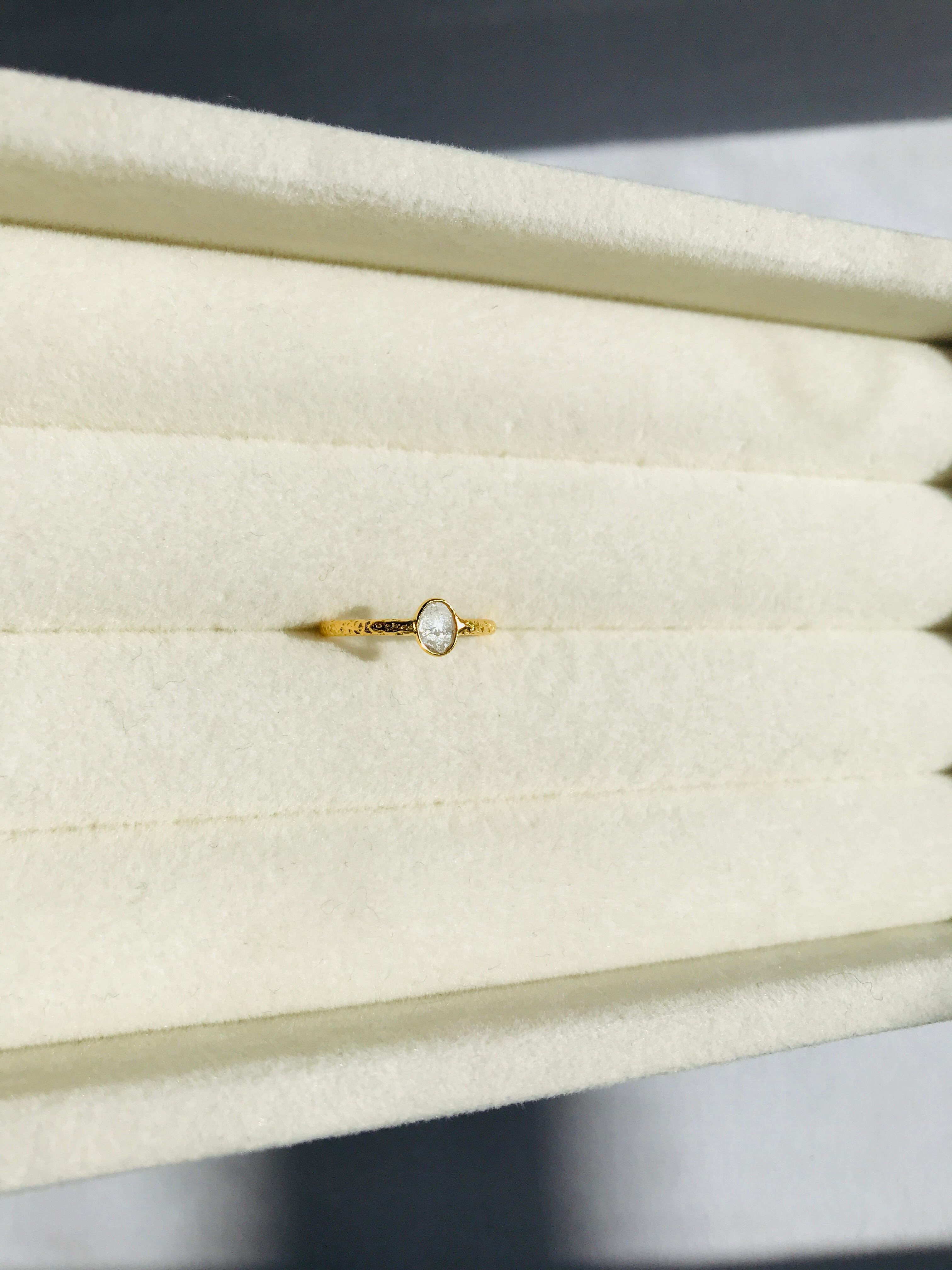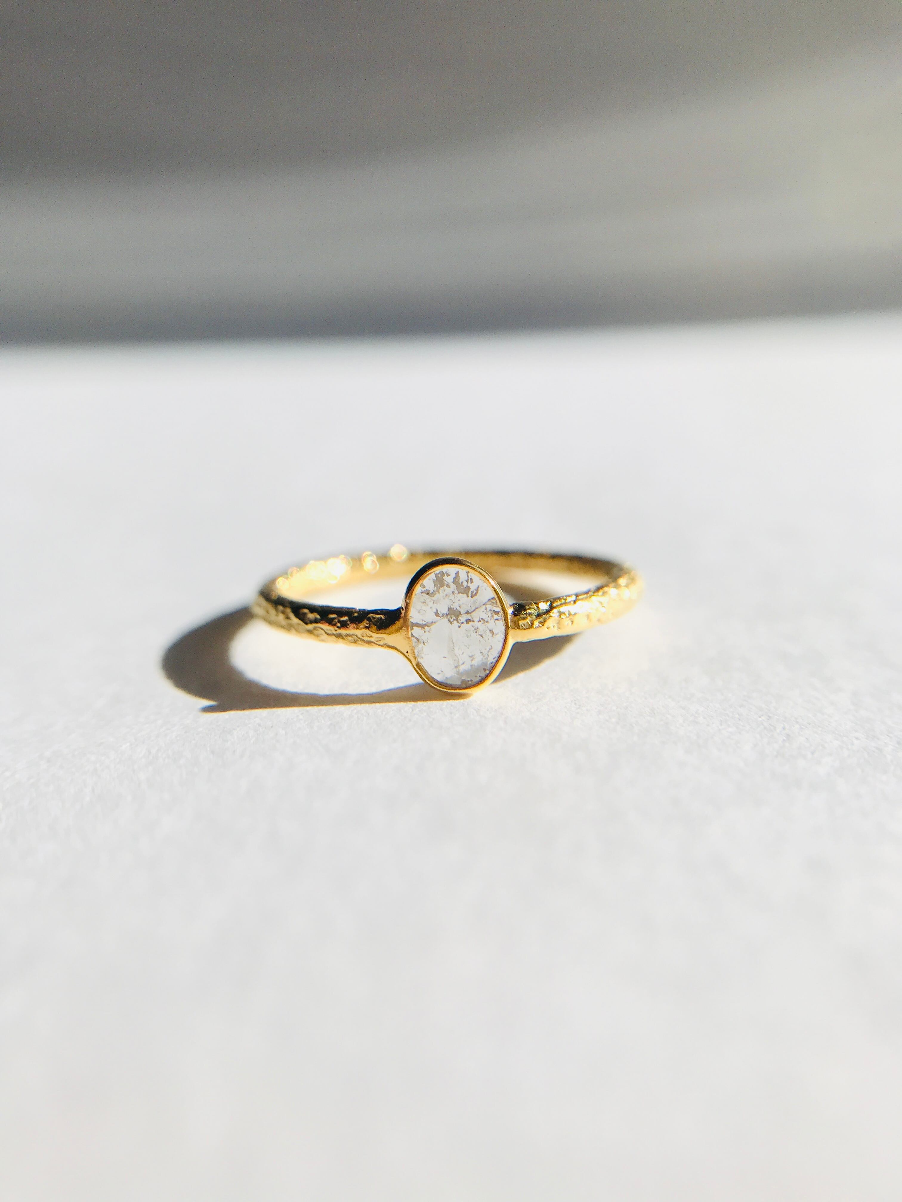 不揃いのスライスダイヤで、中に刻まれている内容物も個々なので、唯一無二のリングとして身に着けていただけます。