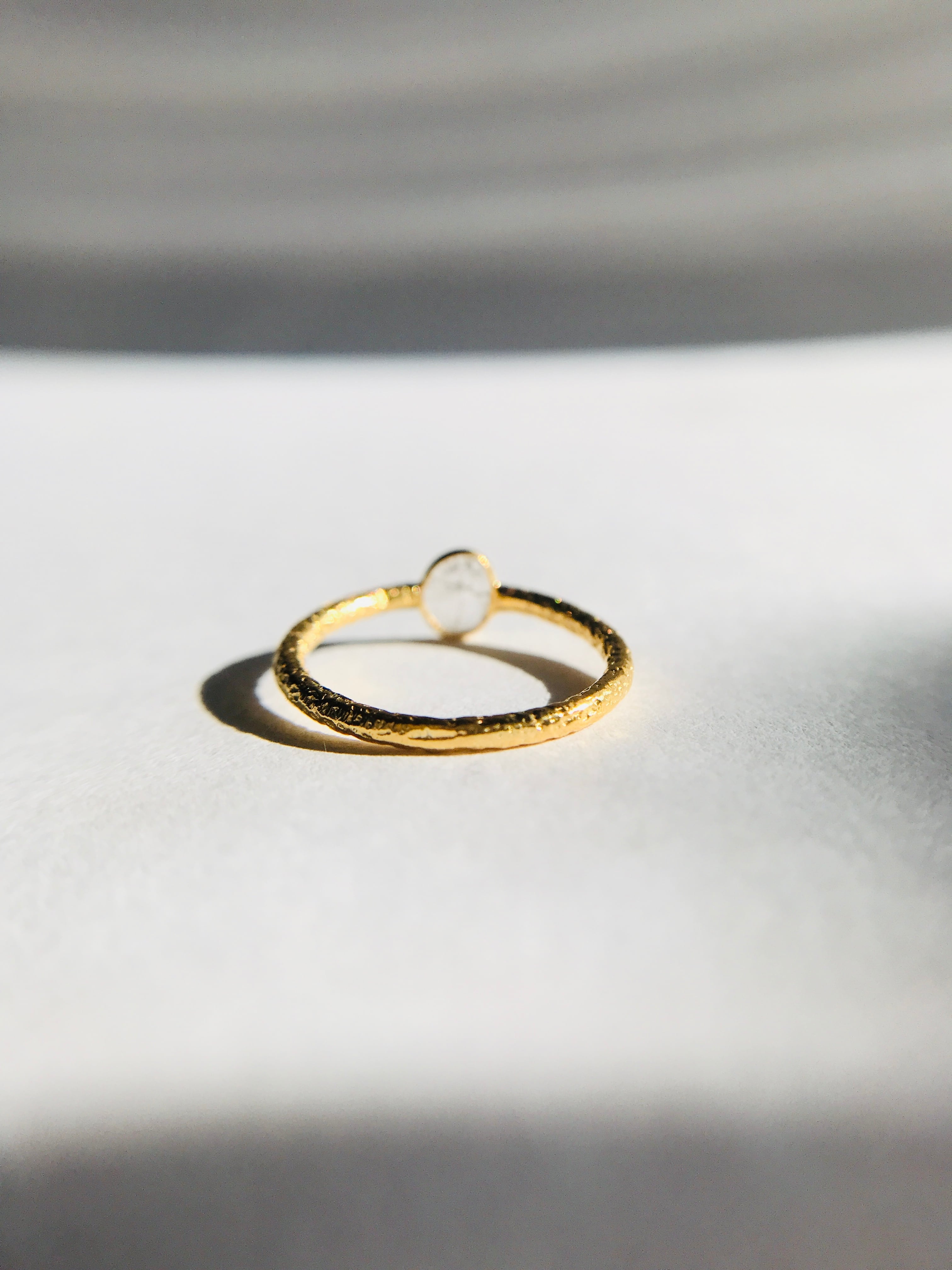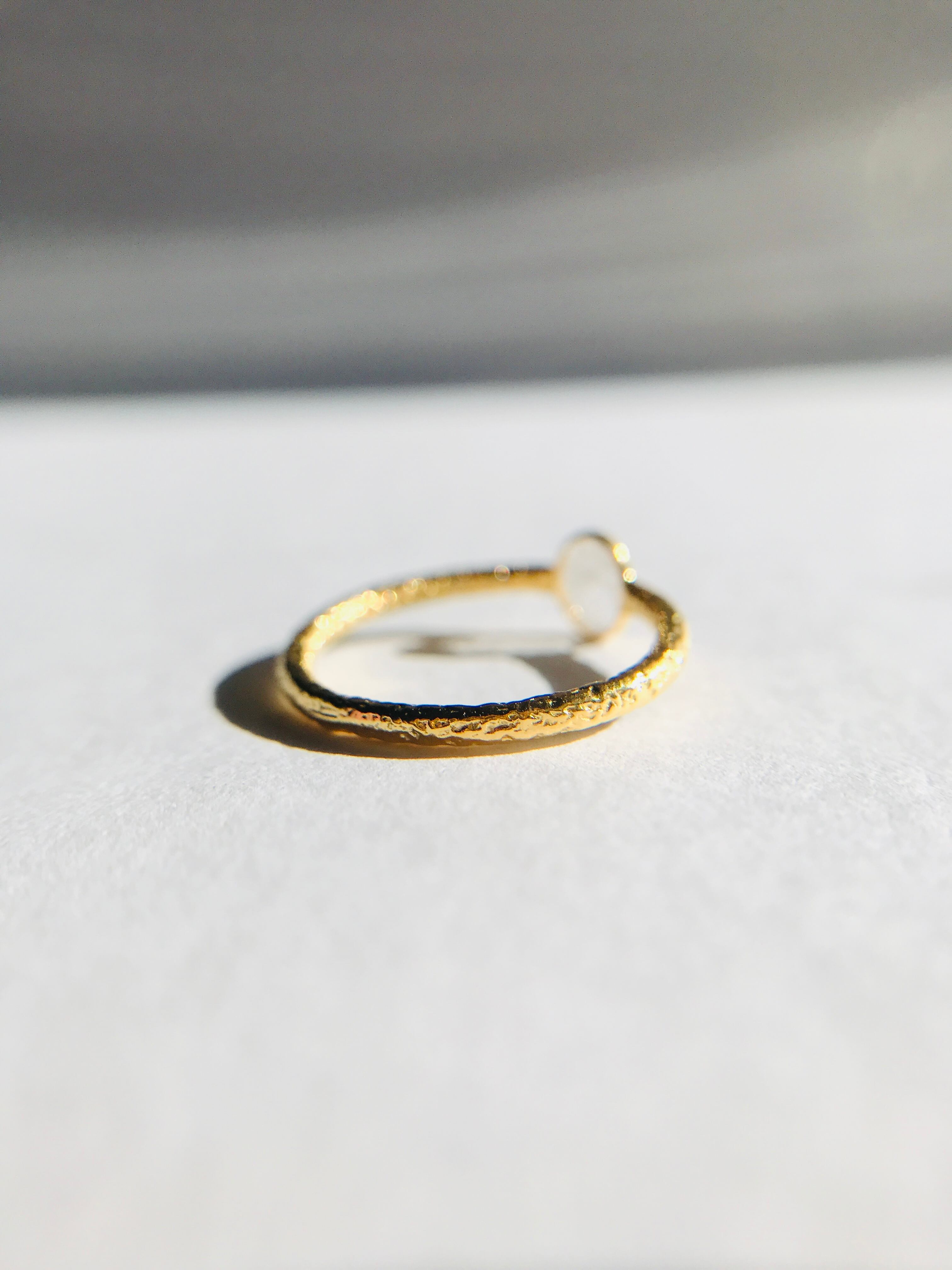スライスダイヤは、突起が少なく指に馴染みつけごこち抜群なので、普段使いにおすすめです。18Kコーティング素材で指輪を仕上げています。