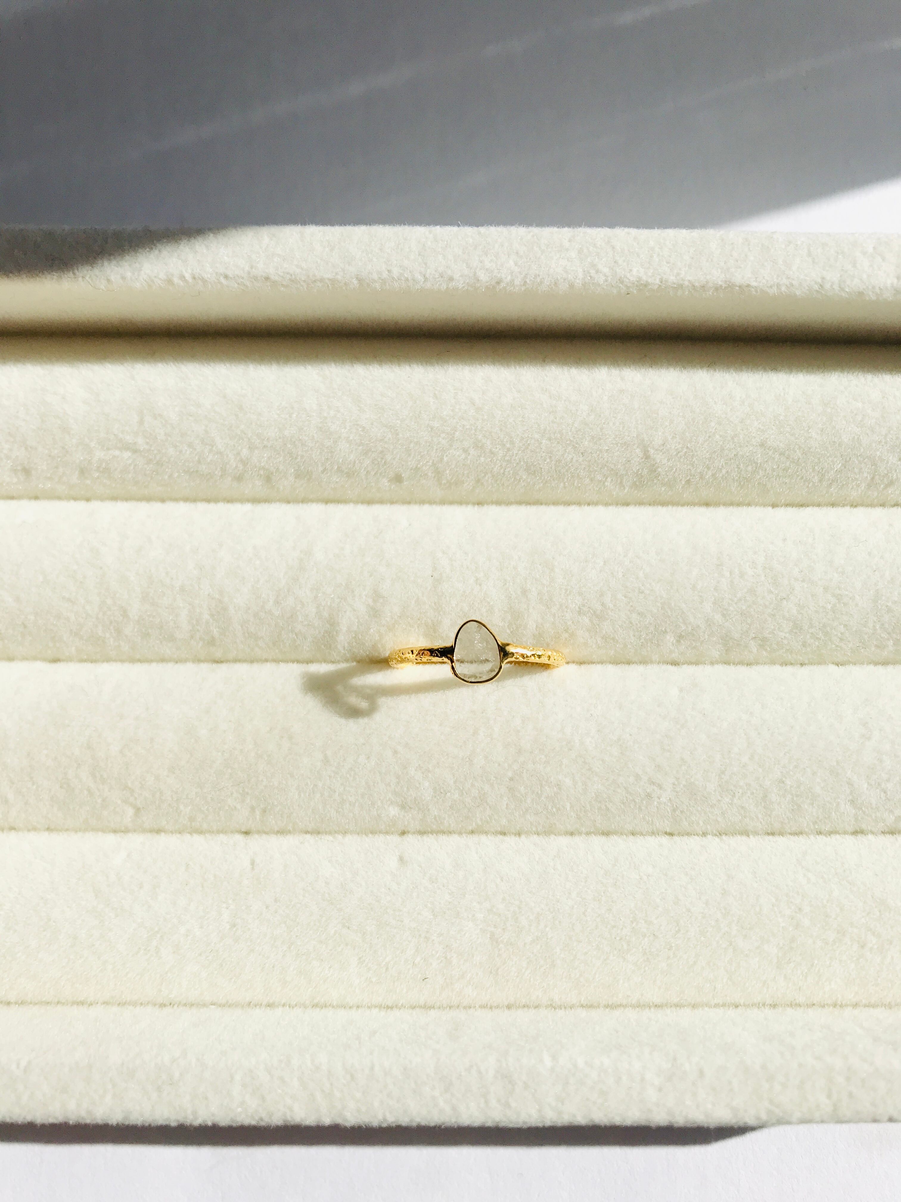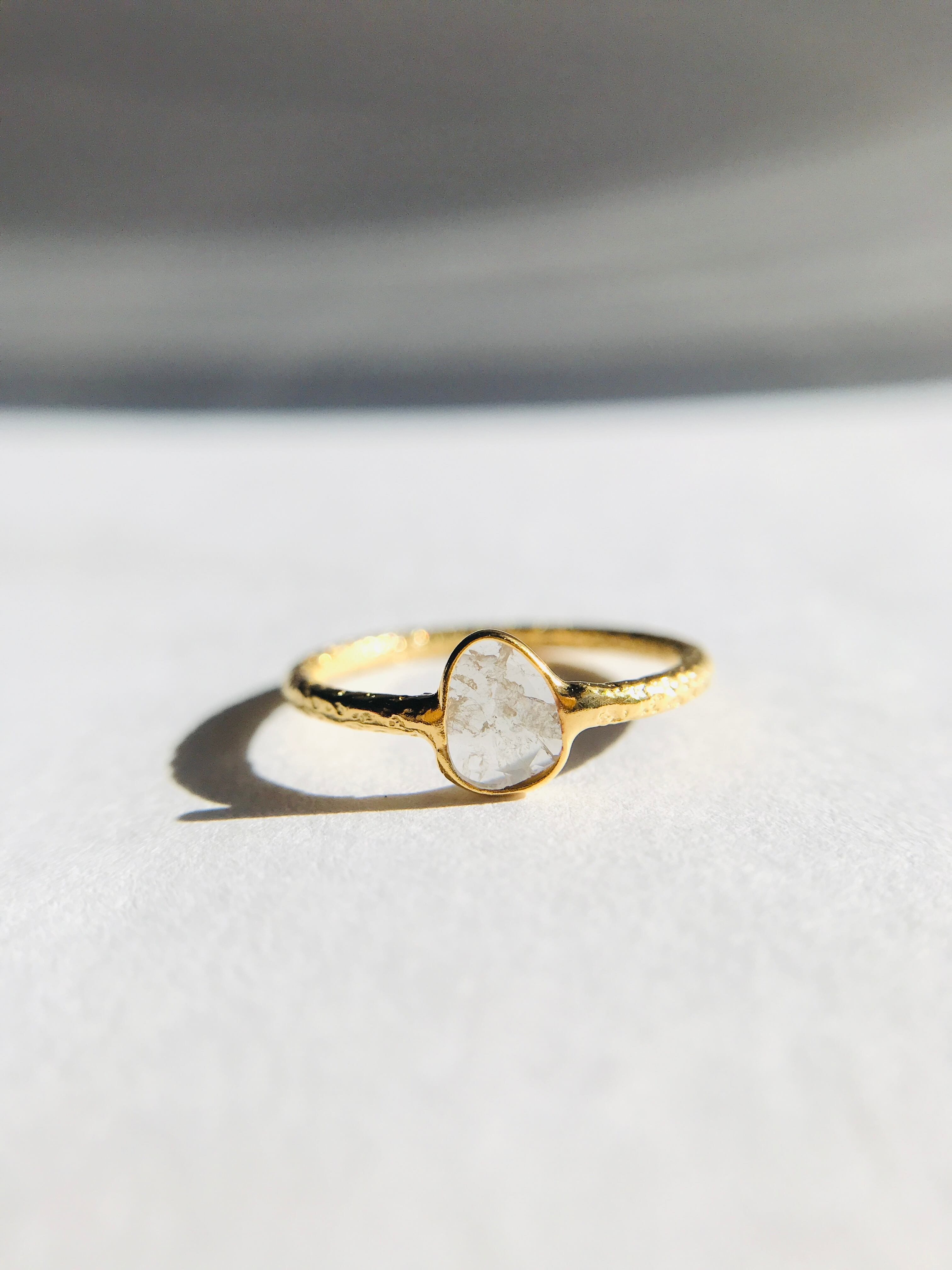 不揃いのスライスダイヤで、中に刻まれている内容物も個々なので、唯一無二のリングとして身に着けていただけます。