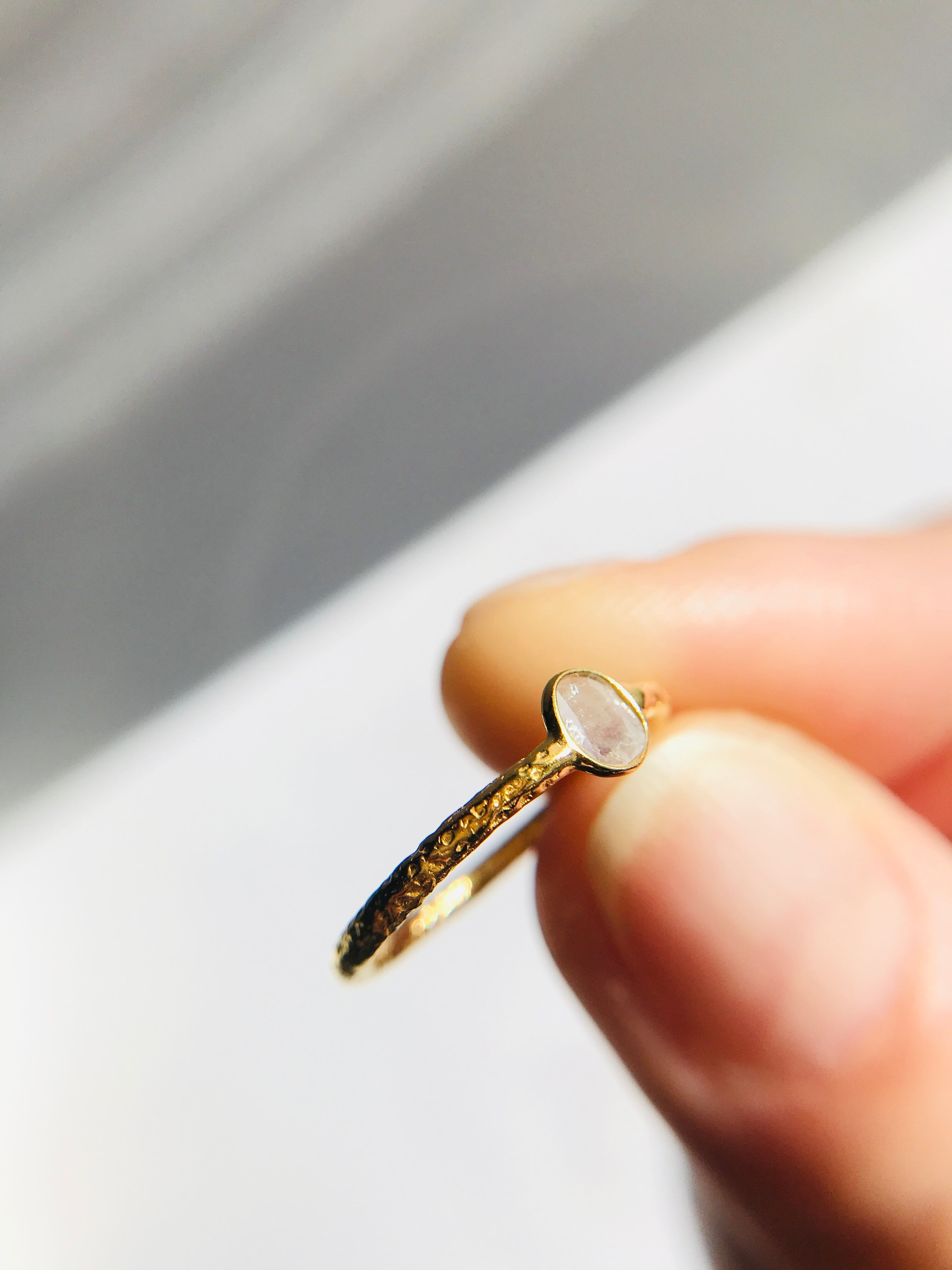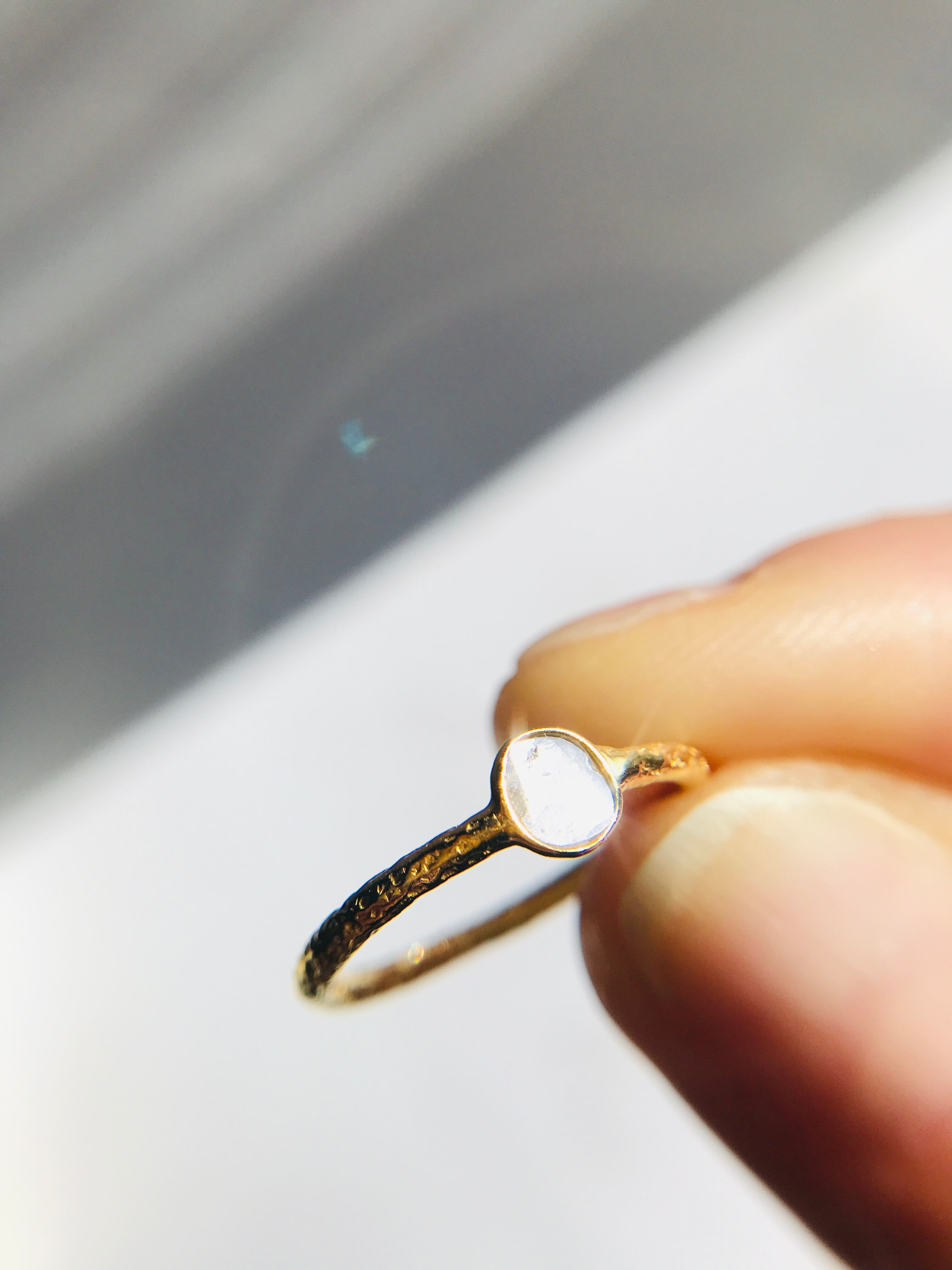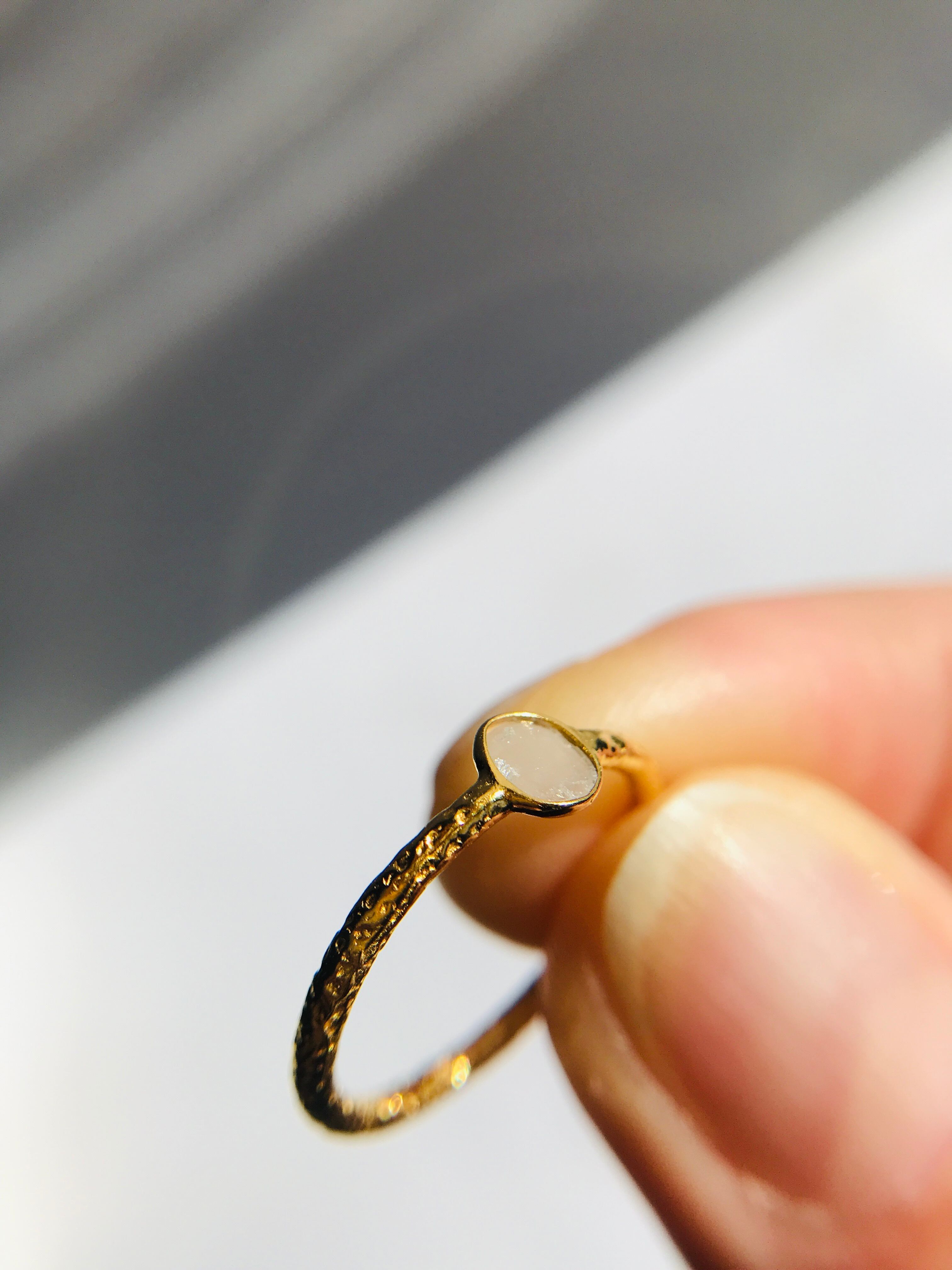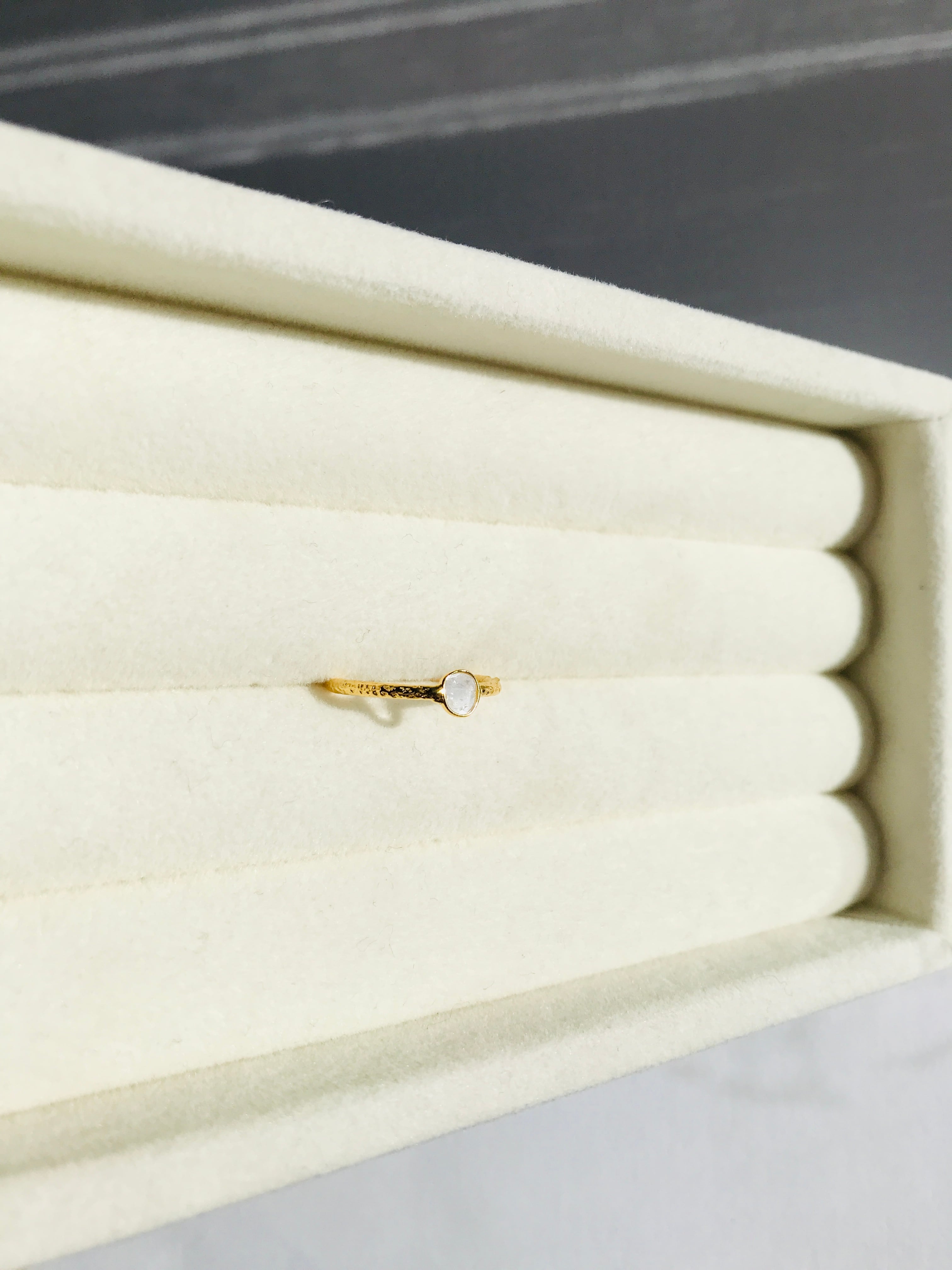 不揃いのスライスダイヤで、中に刻まれている内容物も個々なので、唯一無二のリングとして身に着けていただけます。