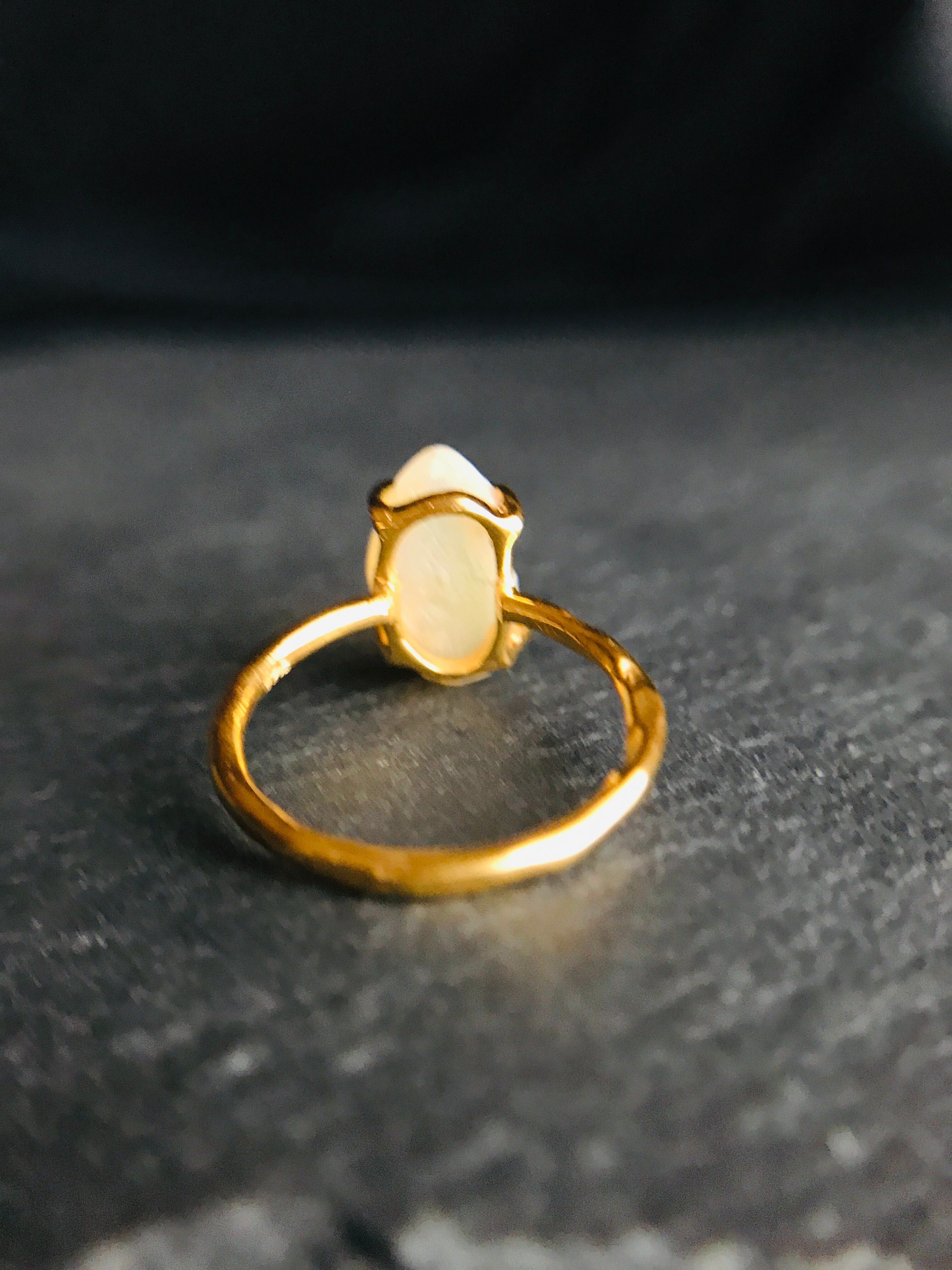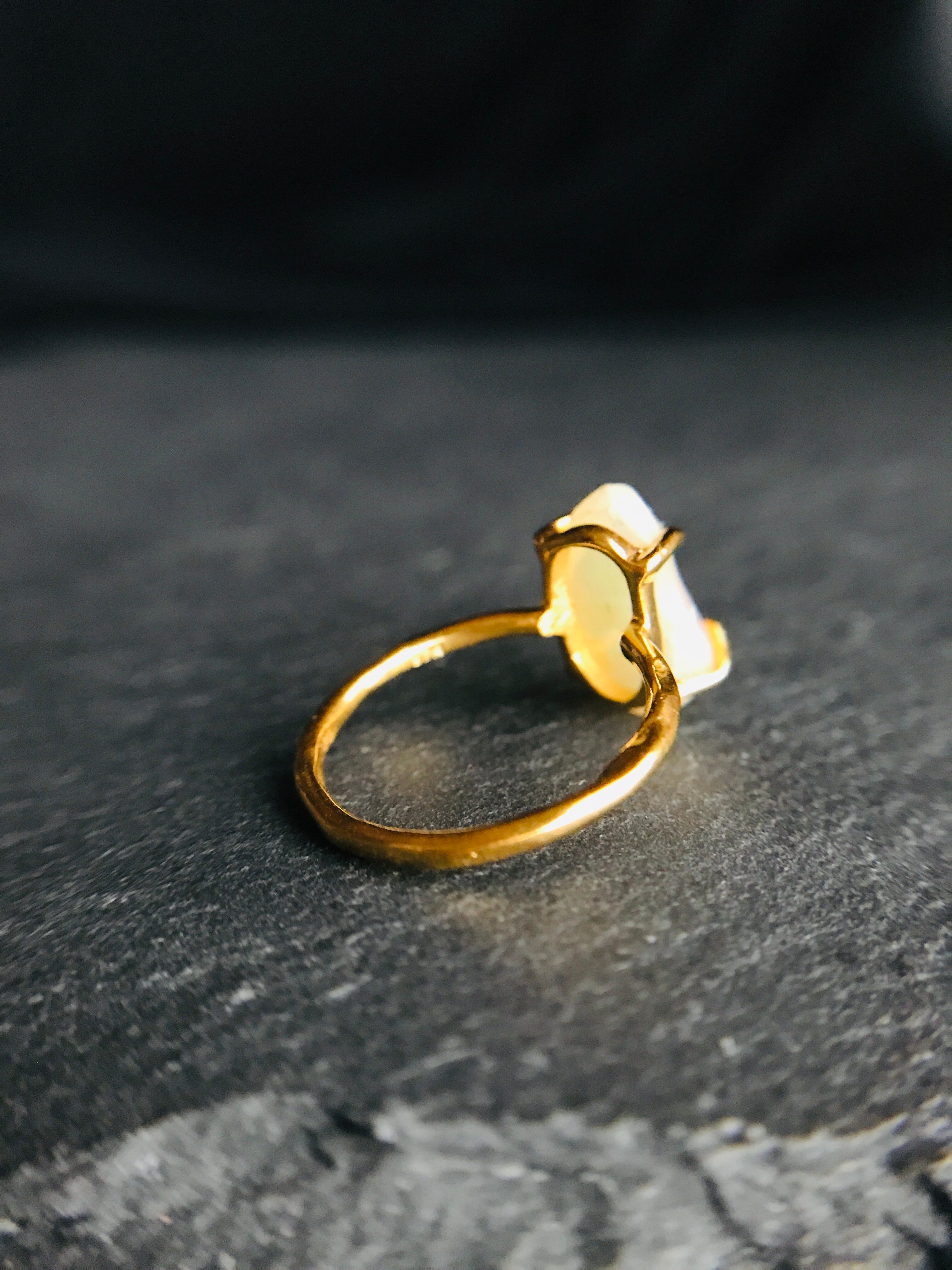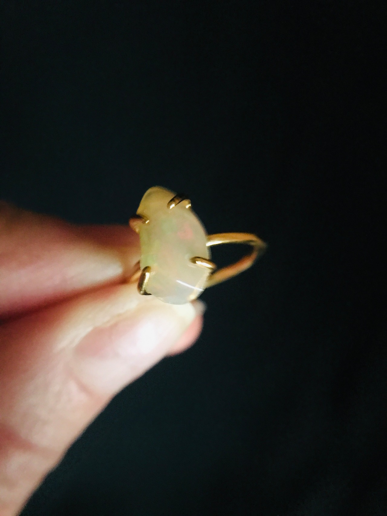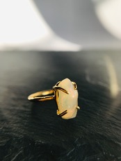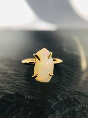オパールの原石をそのまま、4つの爪でシンプルにリングとして仕上げています。原石らしい自然な形ですので、唯一無二の自分だけのアクセサリーとして身に着けていただけます。