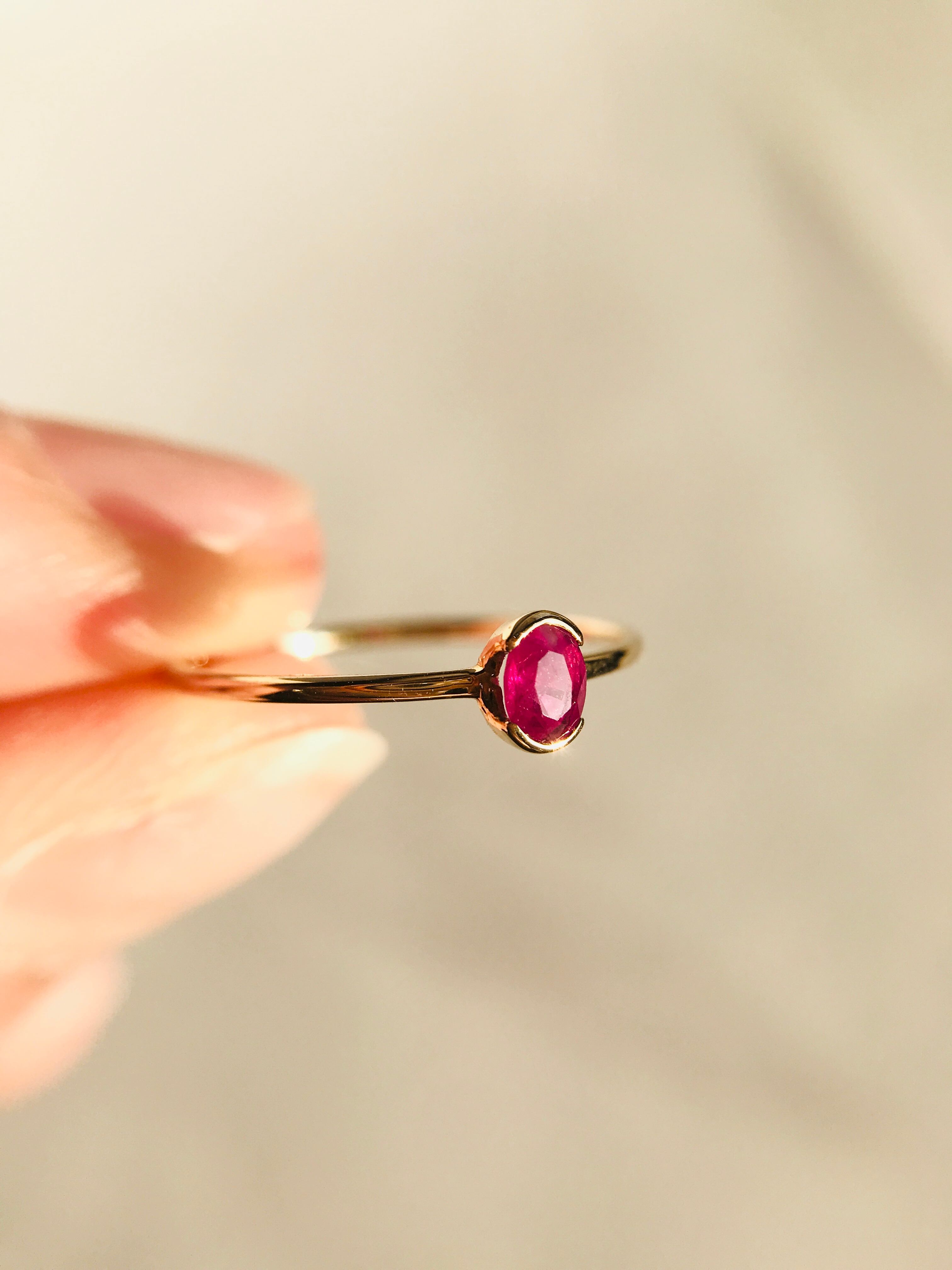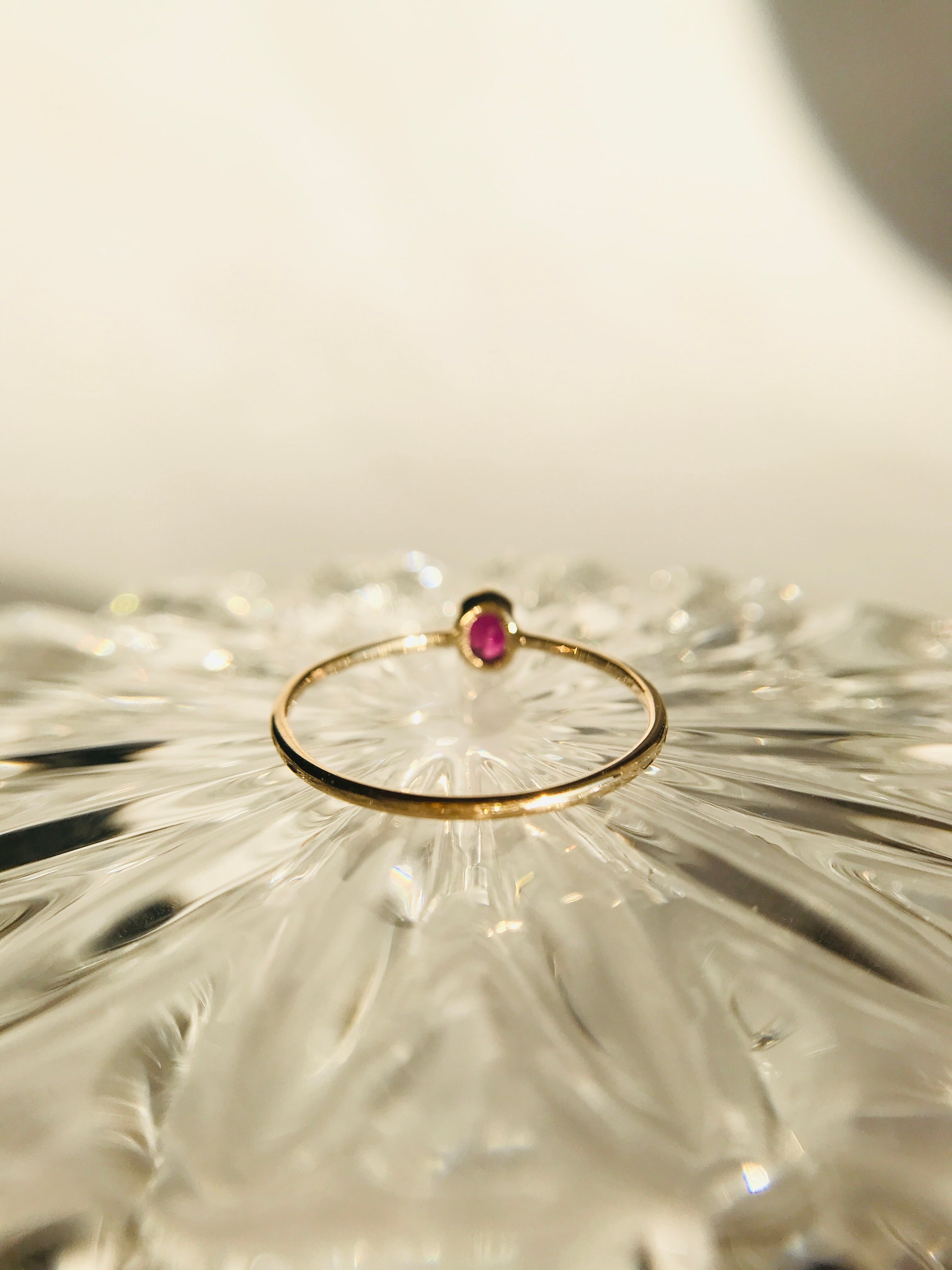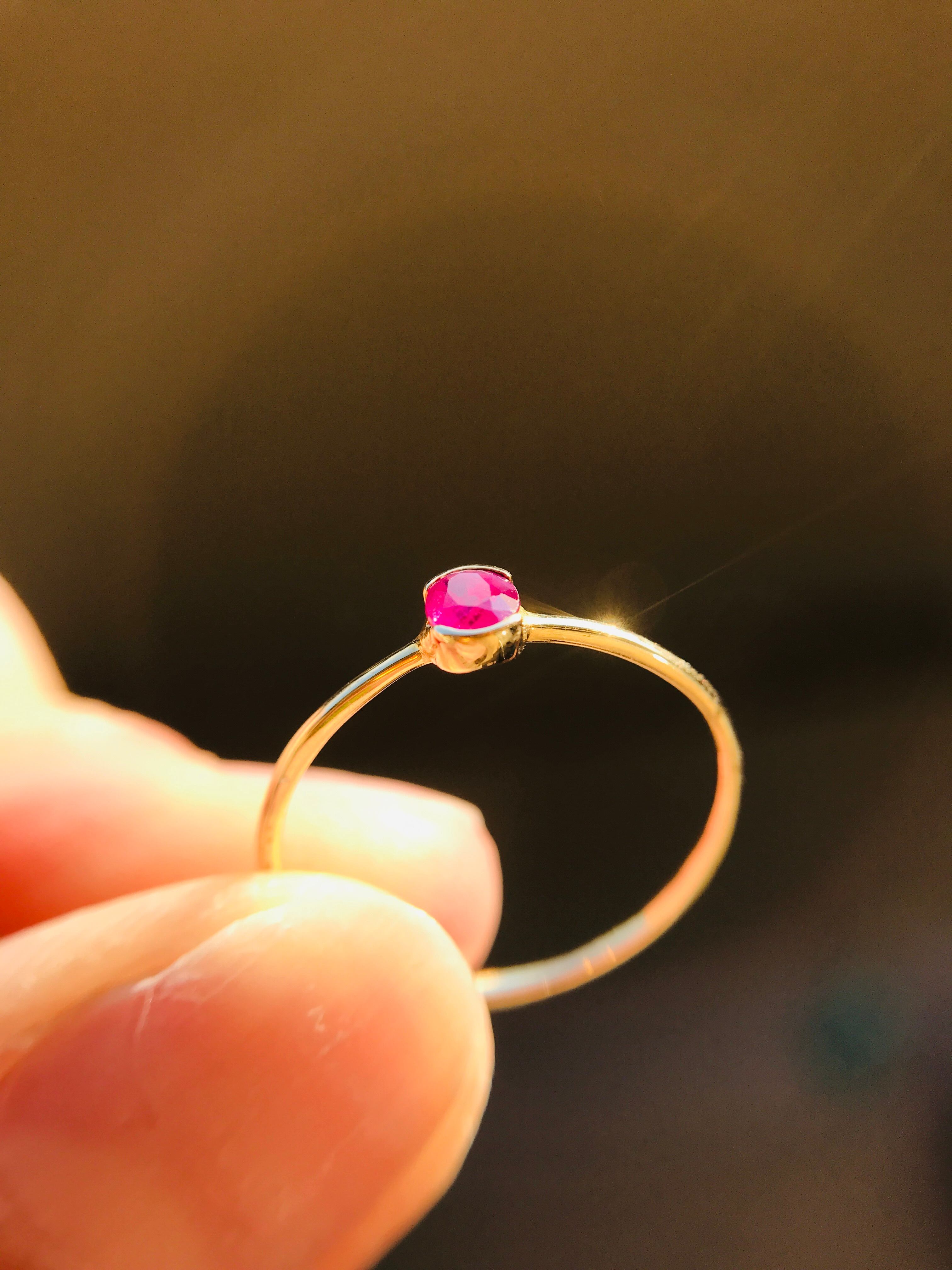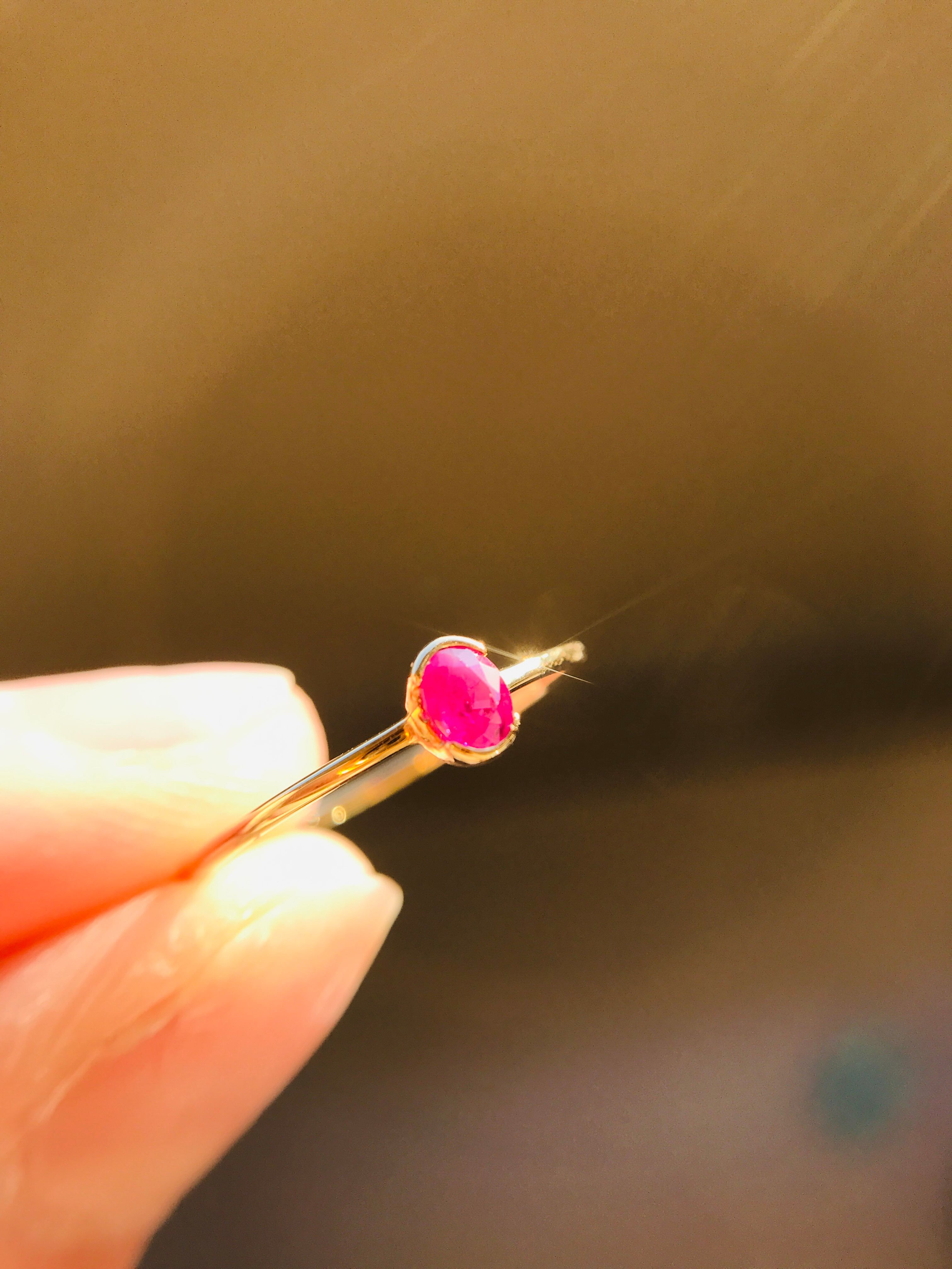 素材は14kで仕上げられています。(14k刻印あり)シンプルなデザインだからこそ、ルビーの存在が引き立ちます。