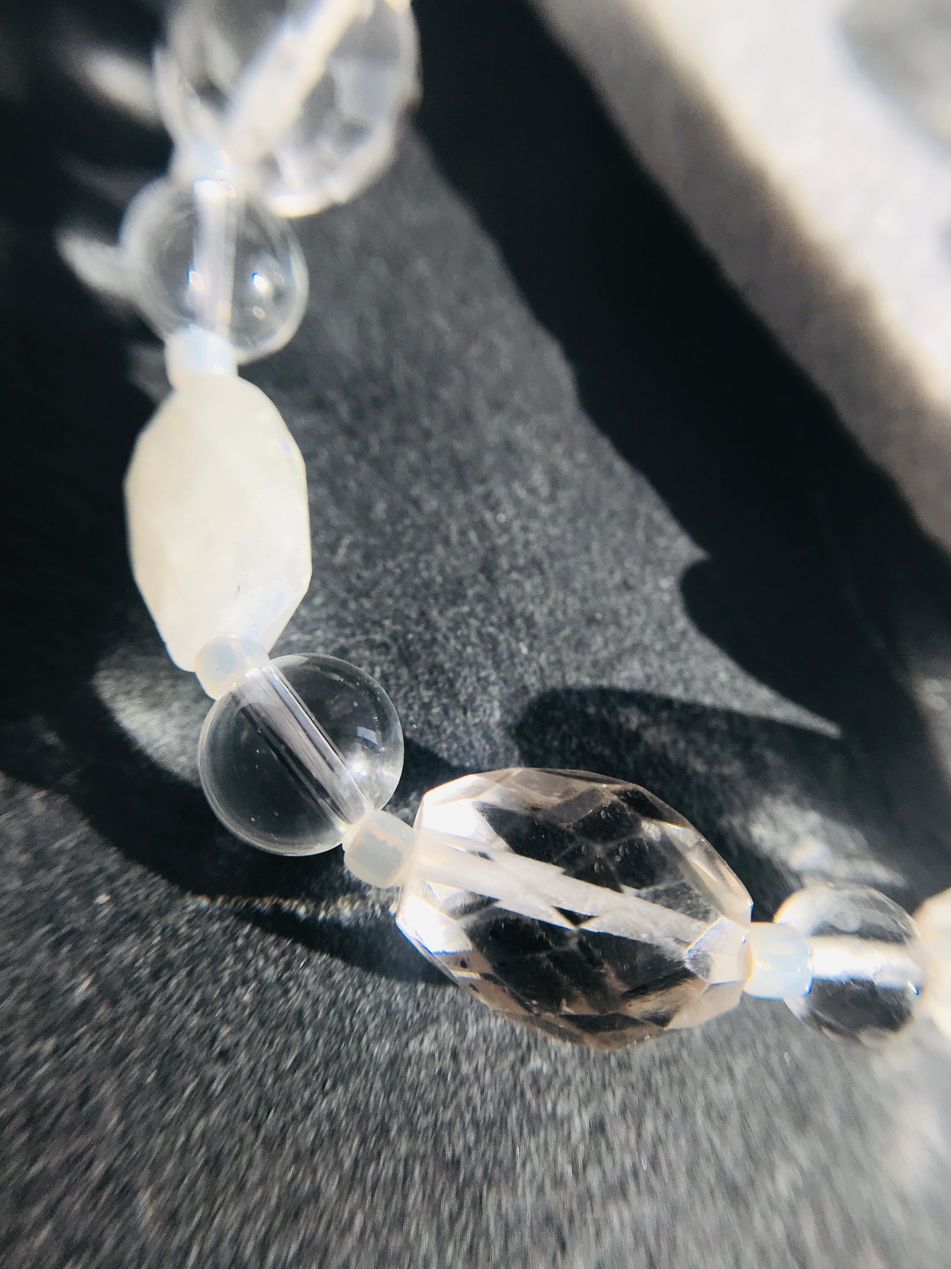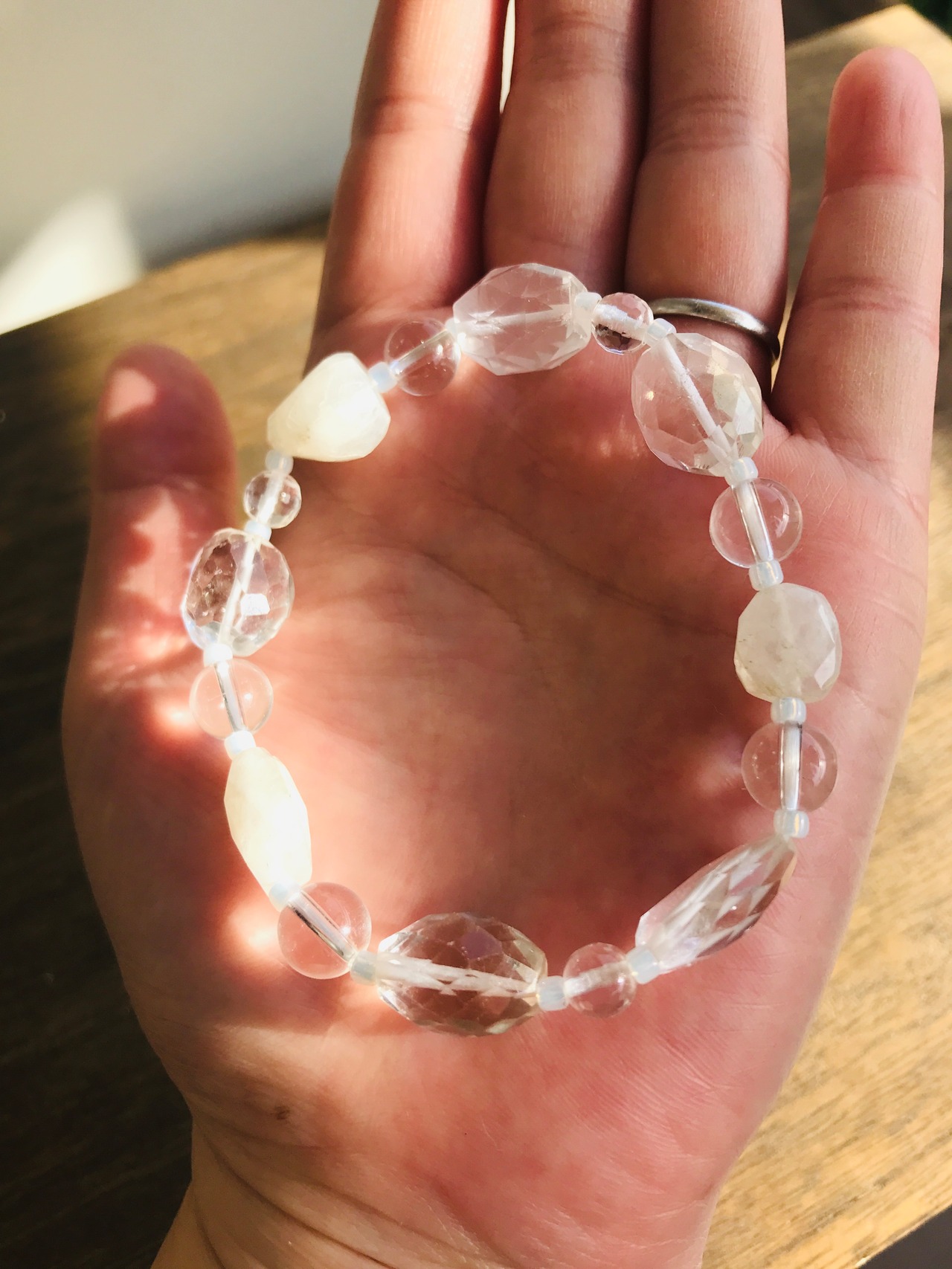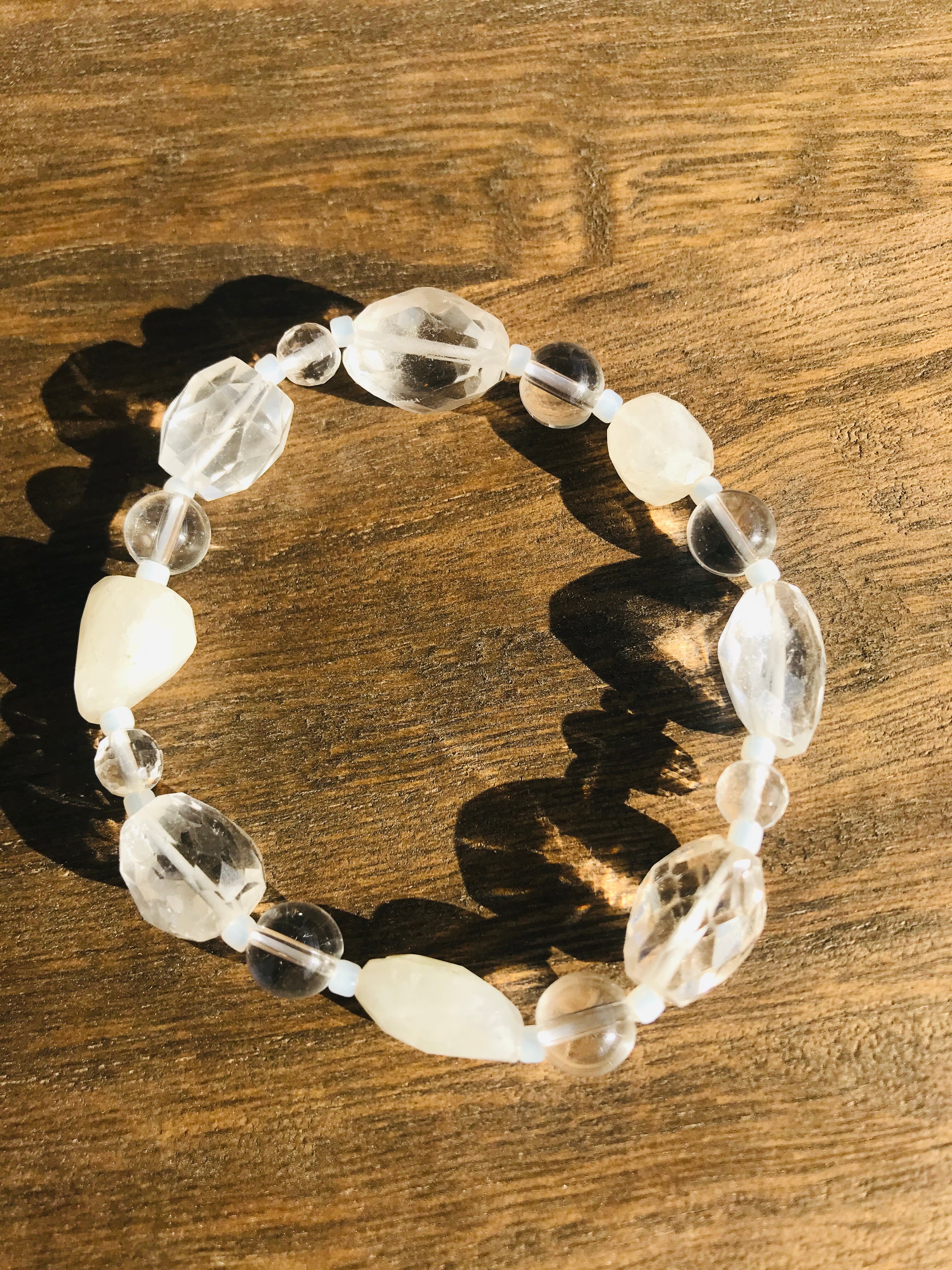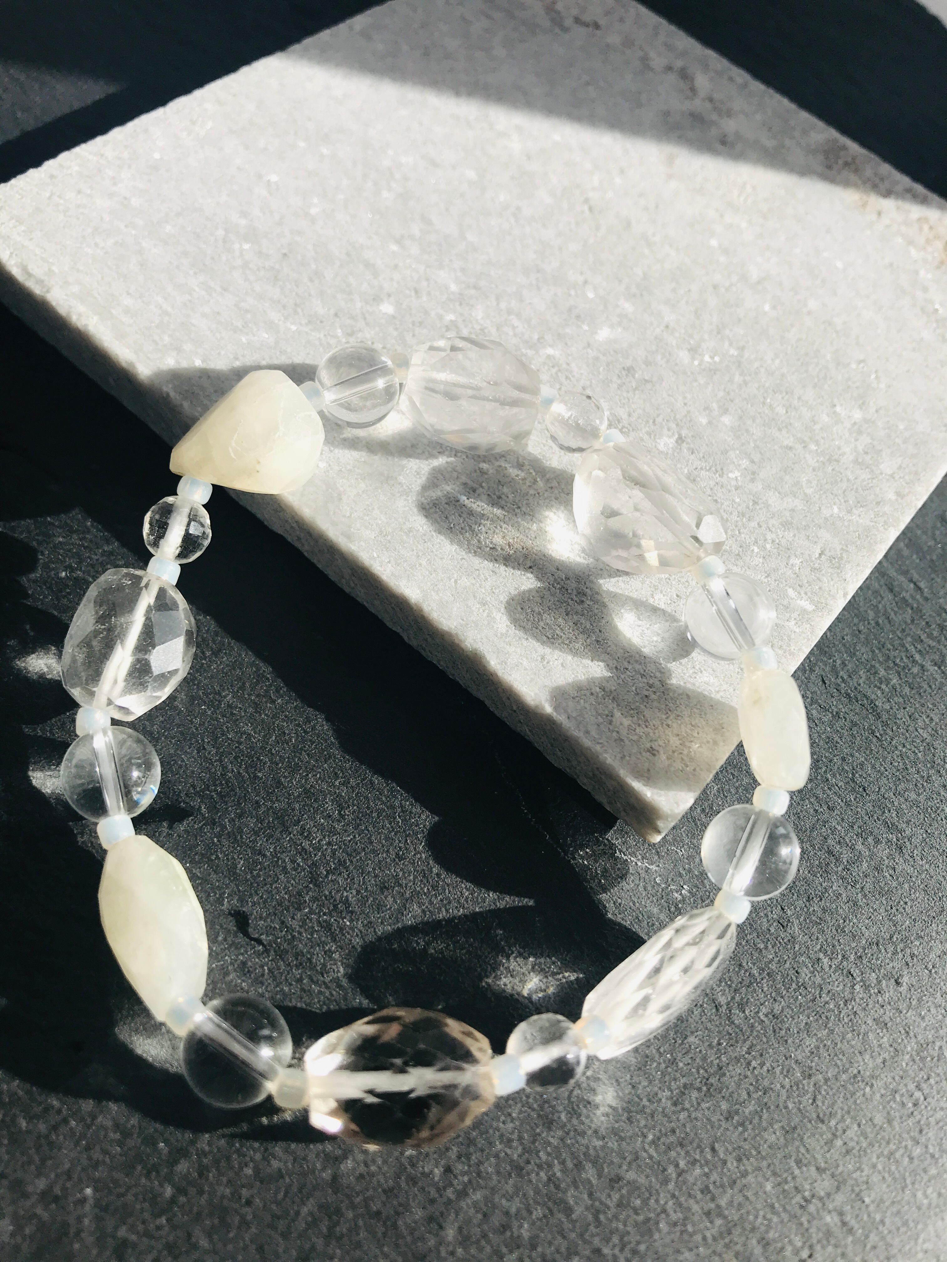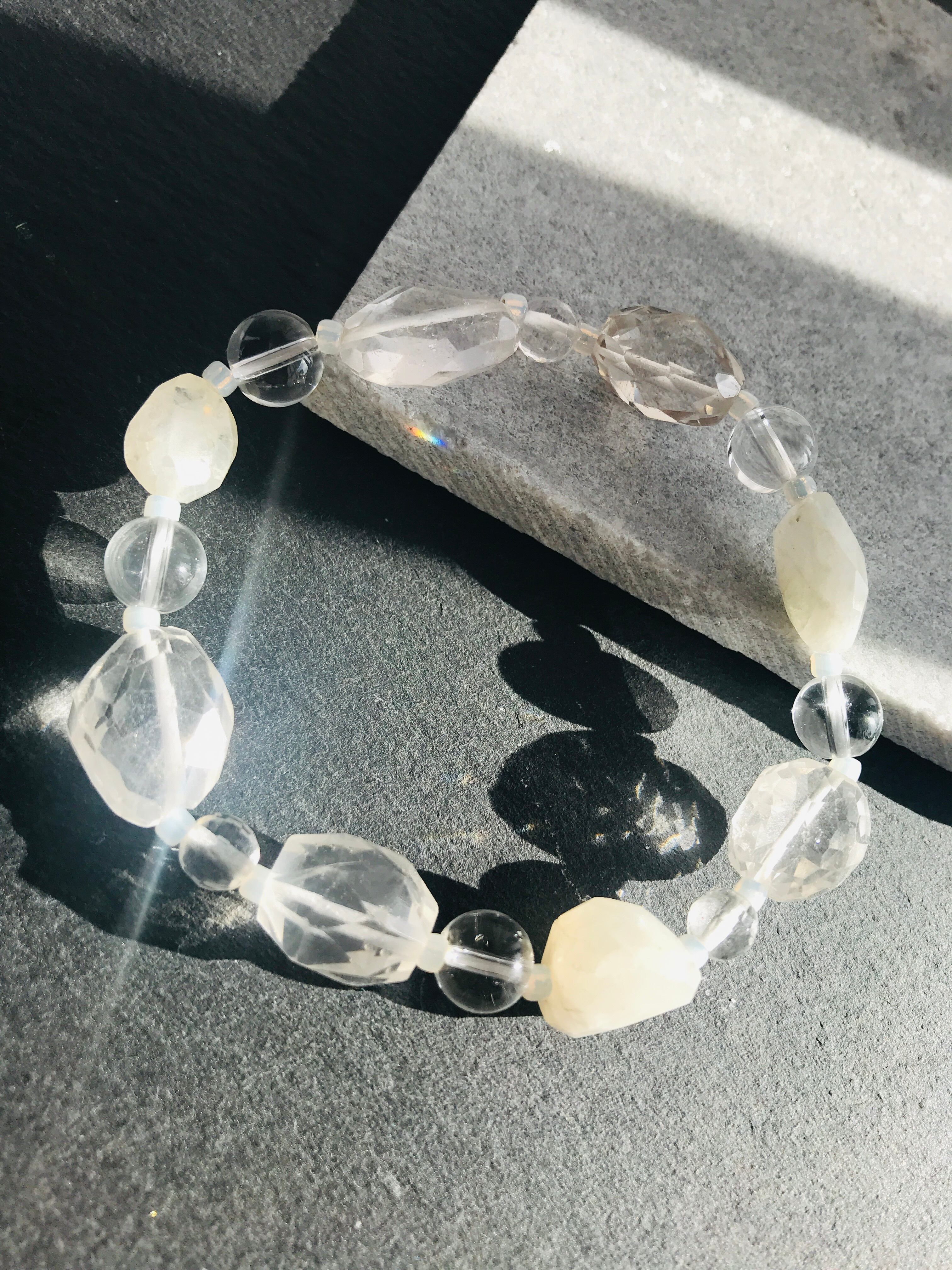 クリスタルとムーンストーンを組み合わせた洗練されたブレスレット。