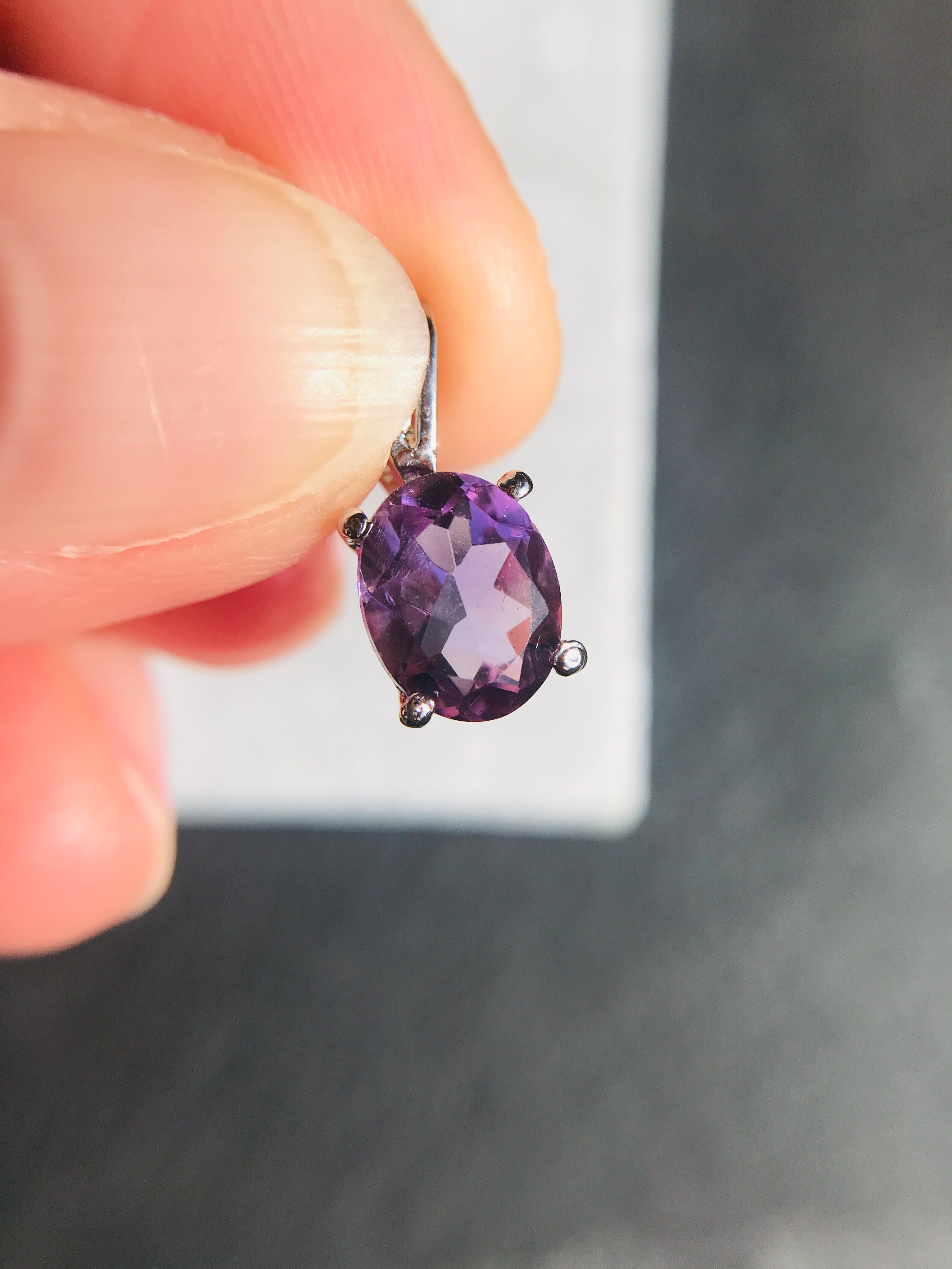 上品でやわらかい色味の紫色のアメジストが、石のカット面に反射して素敵な表情をみせてくれます。
