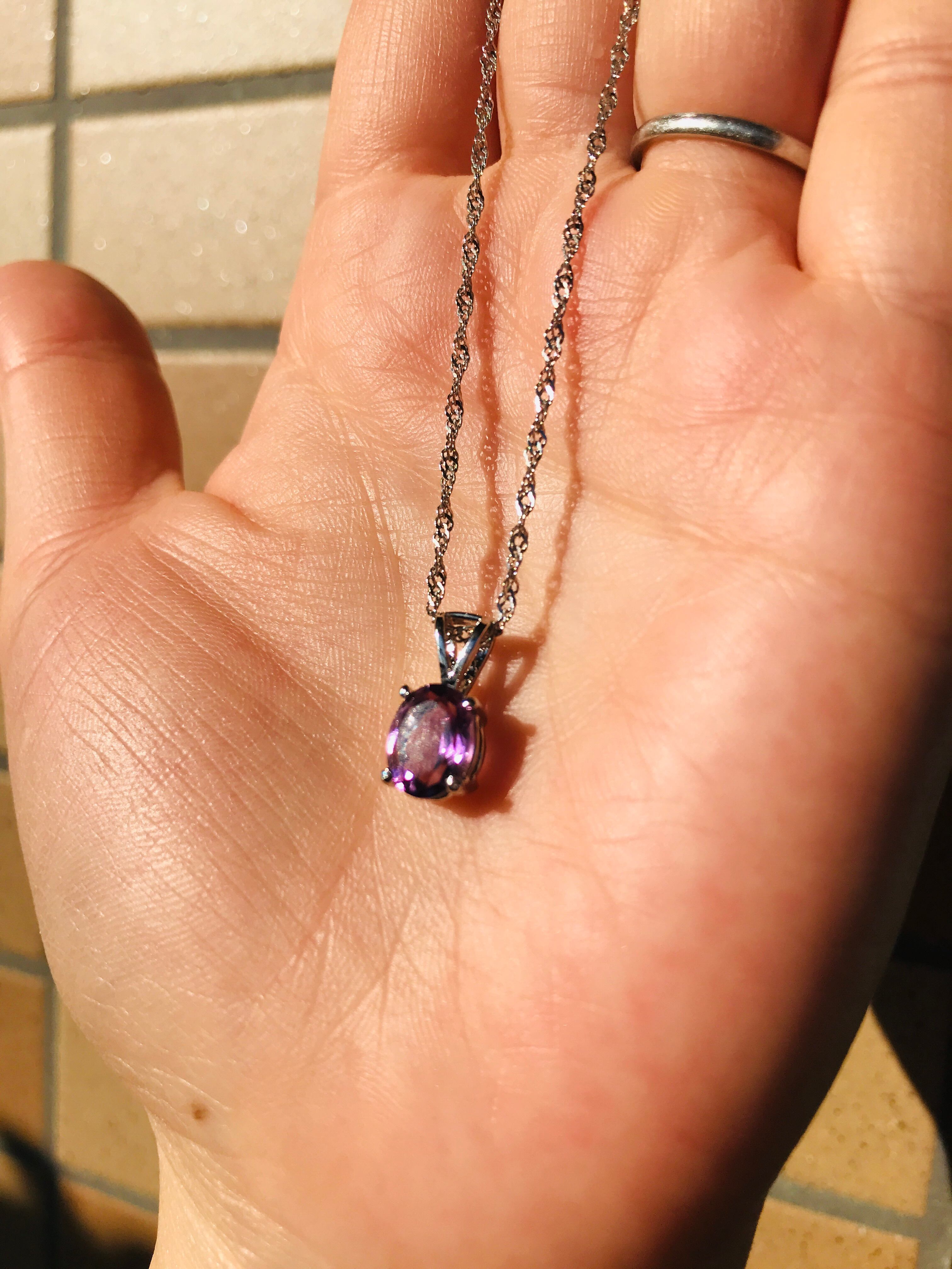 透明度が高いアメジストなので直接素肌に身に着けると、よりなじんで素敵な色合いになります。