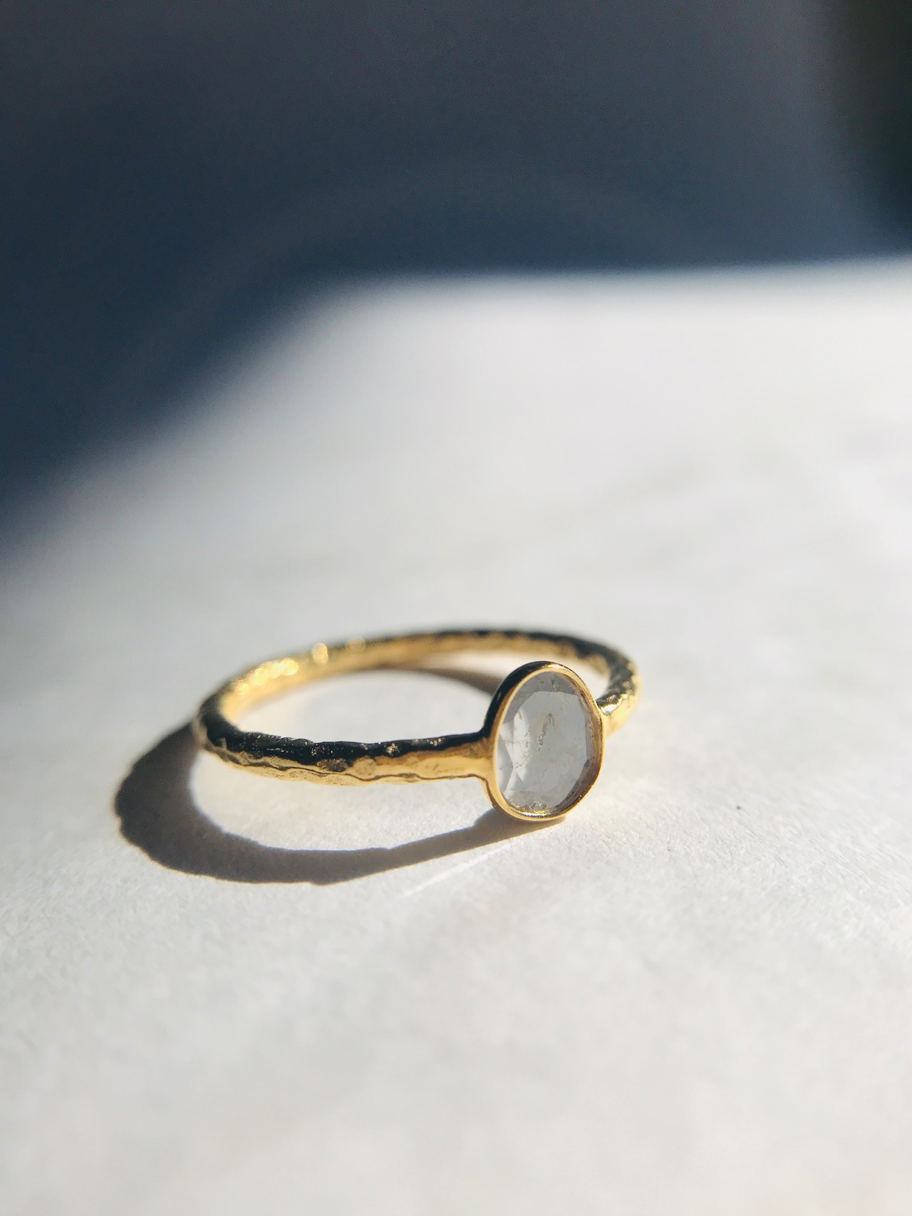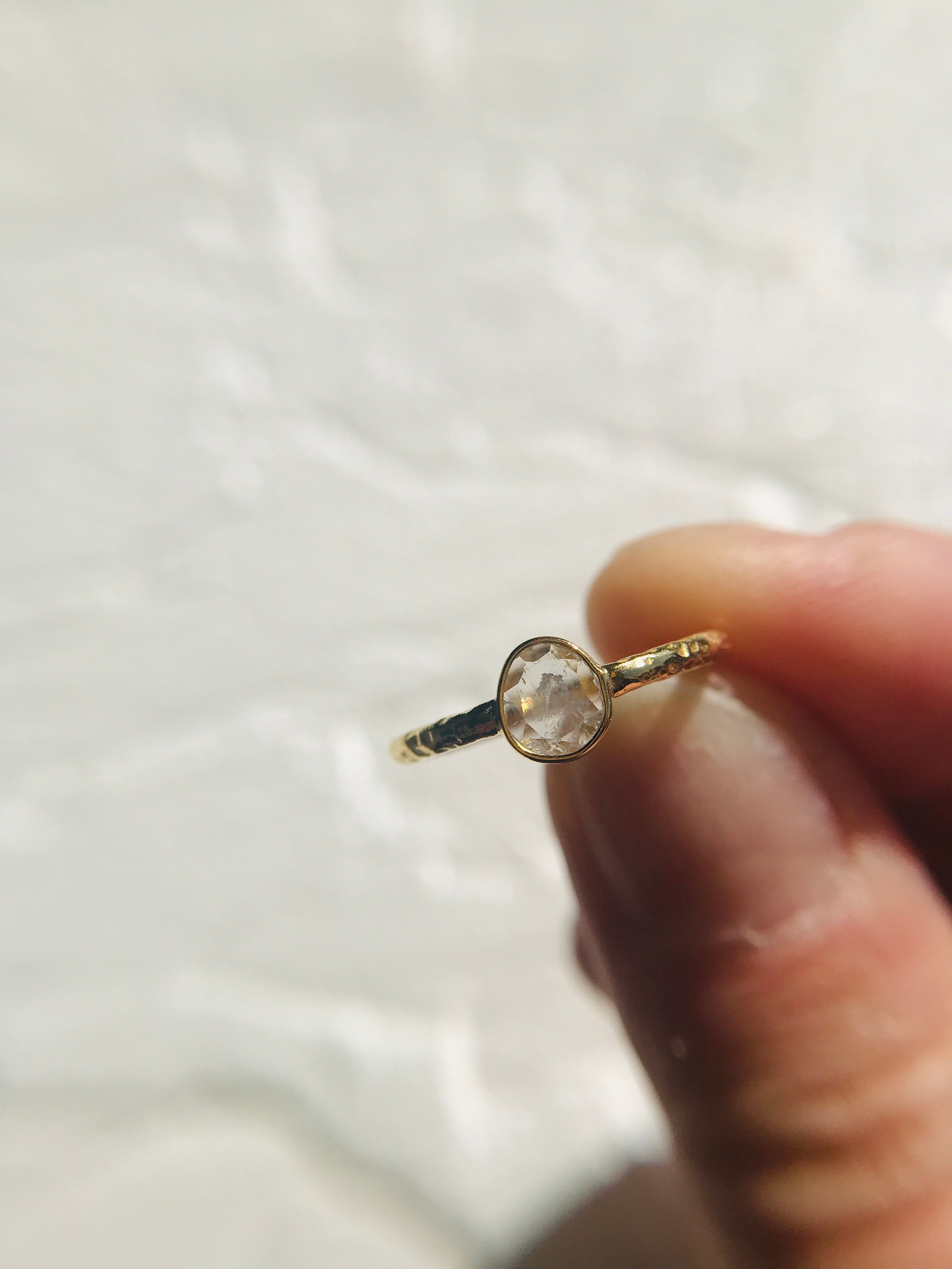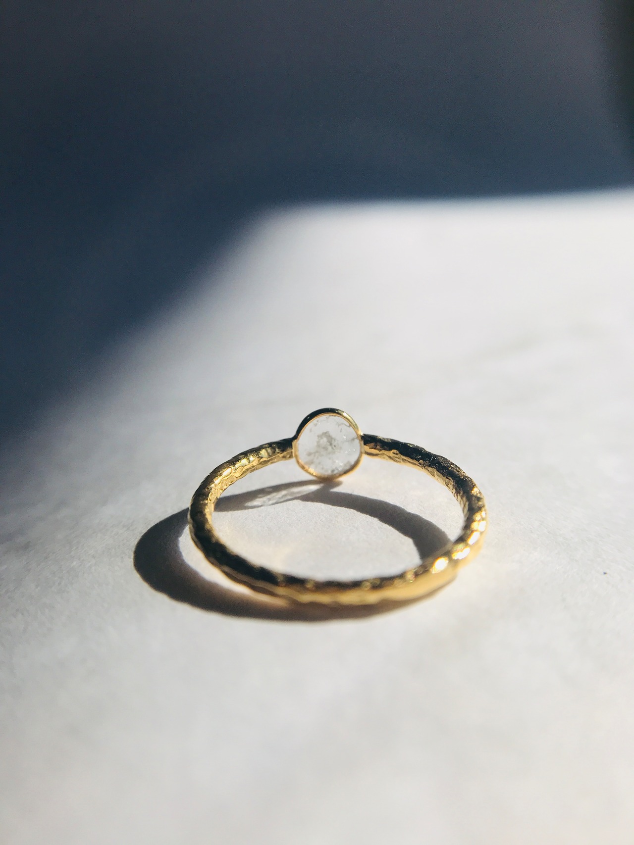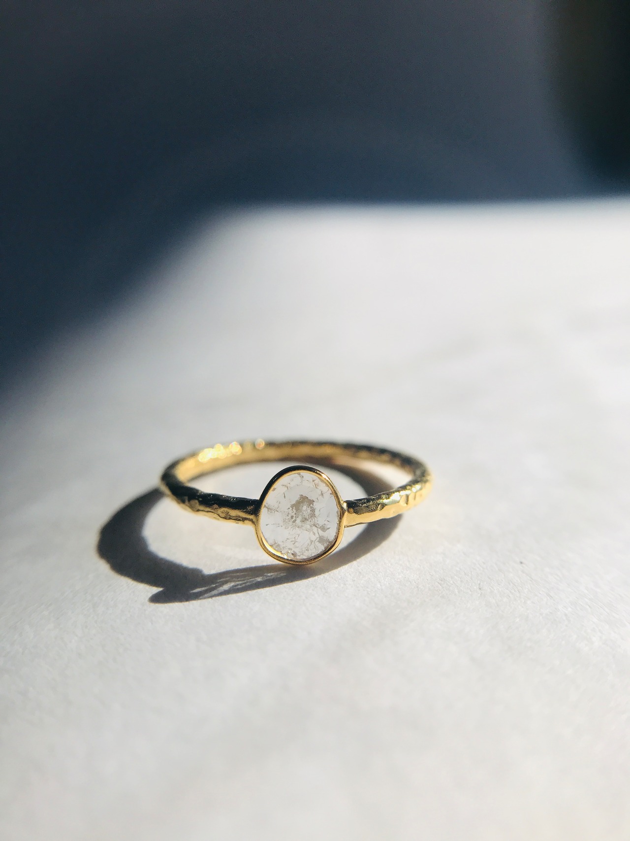 不揃いのスライスダイヤで、中に刻まれている内容物も個々なので、唯一無二のリングとして身に着けていただけます。