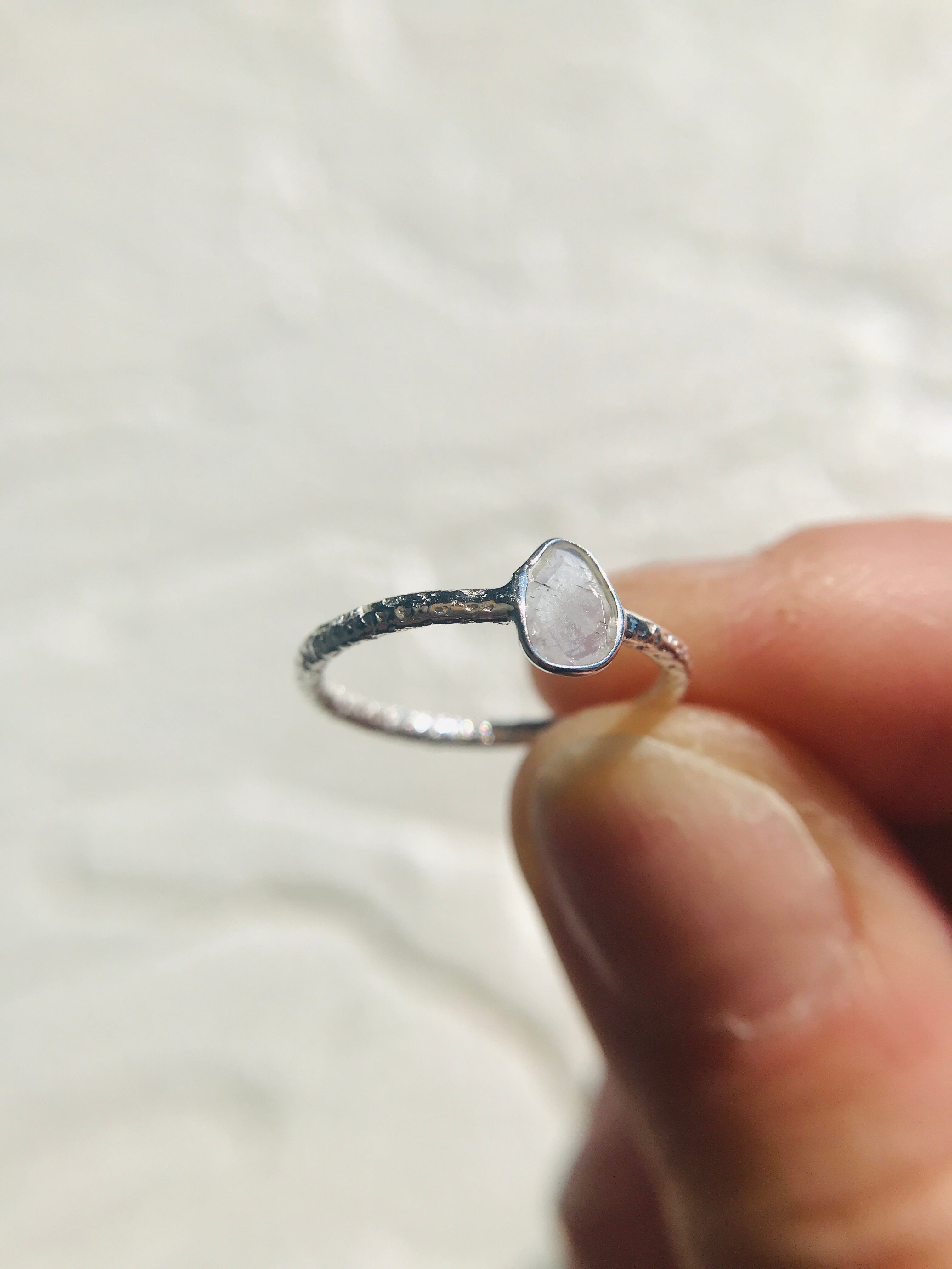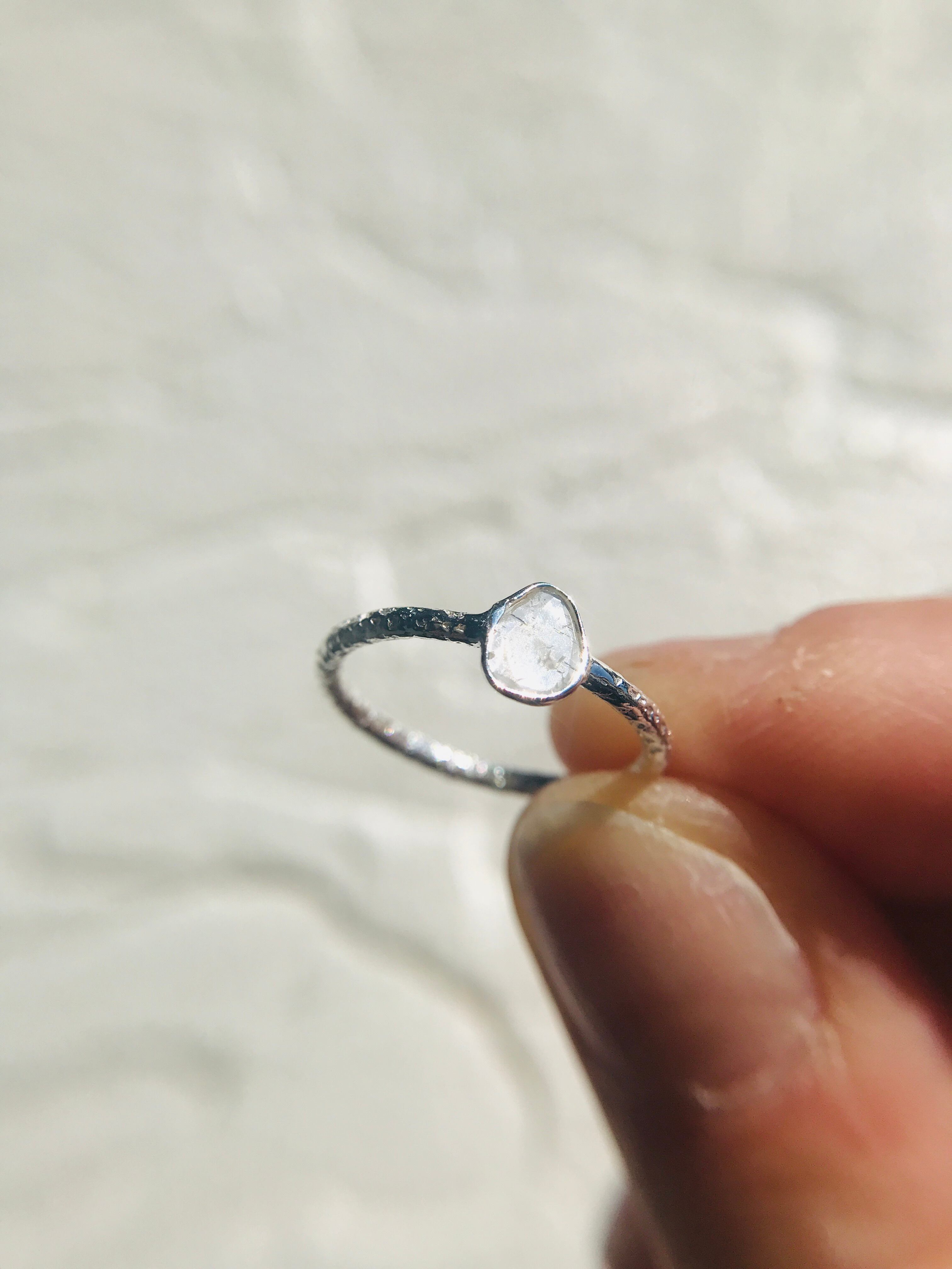 スライスダイヤは、突起が少なく指に馴染みつけごこち抜群なので、普段使いにおすすめです。シルバー素材(Silver925)で指輪を仕上げています。