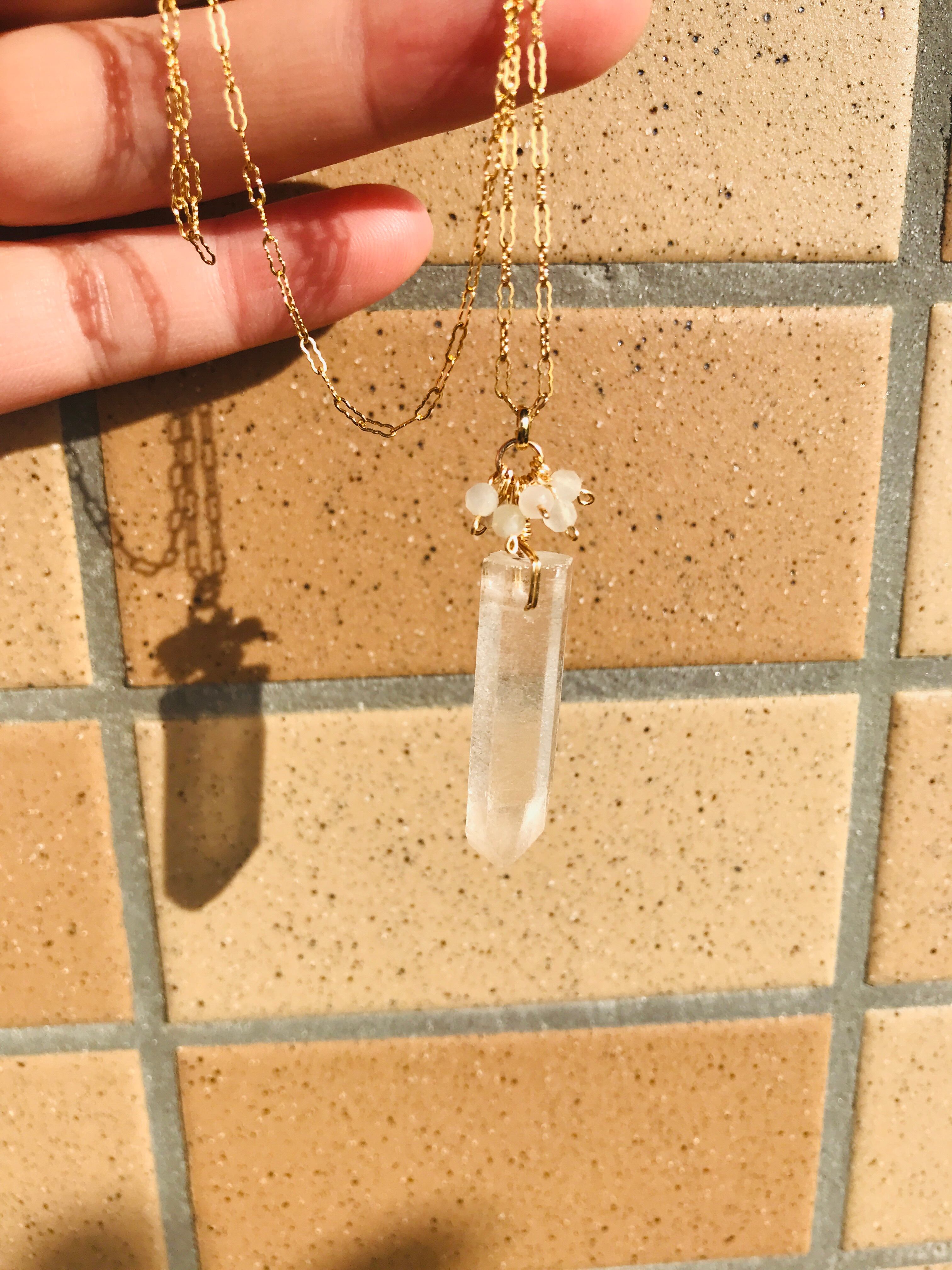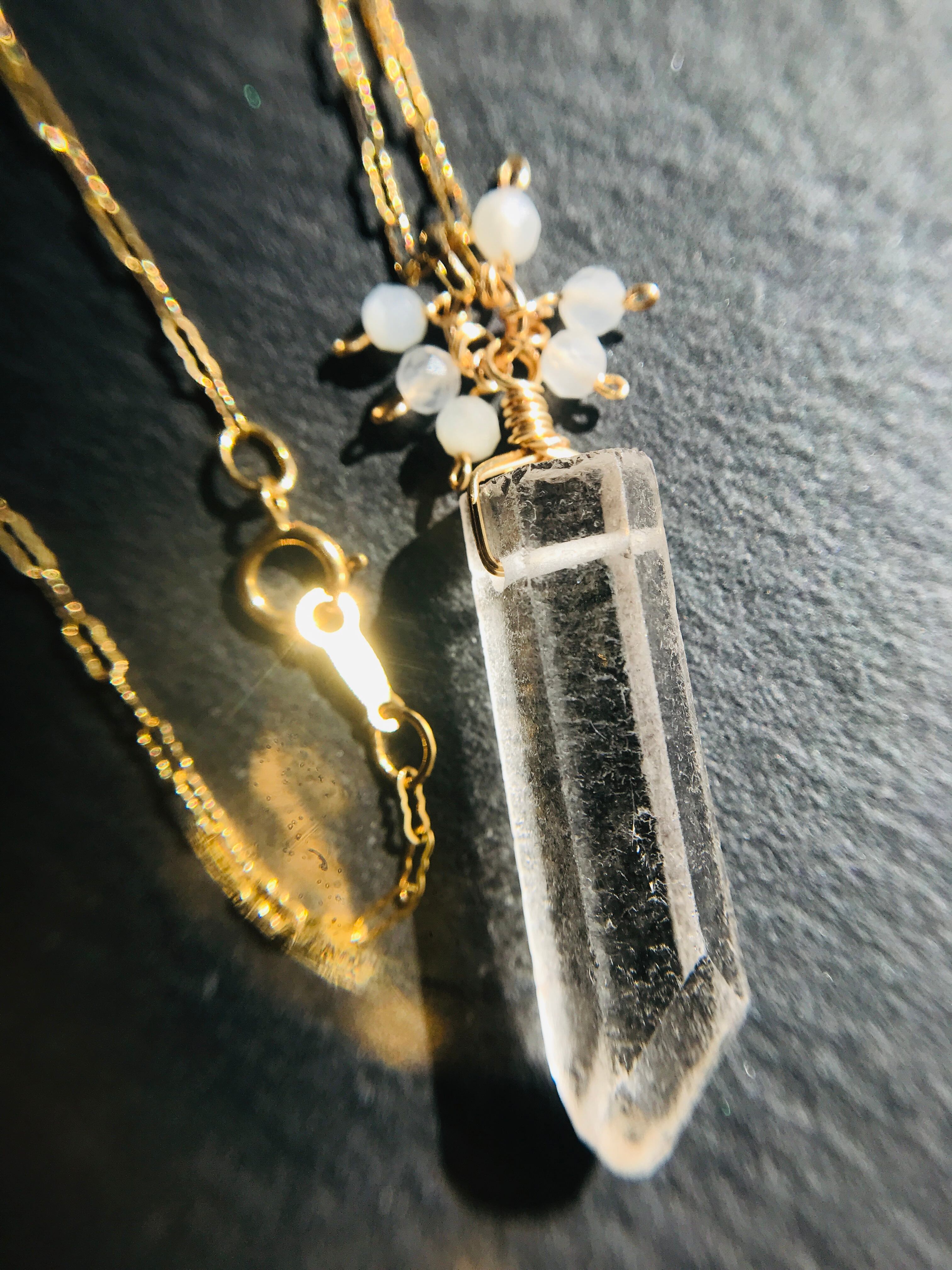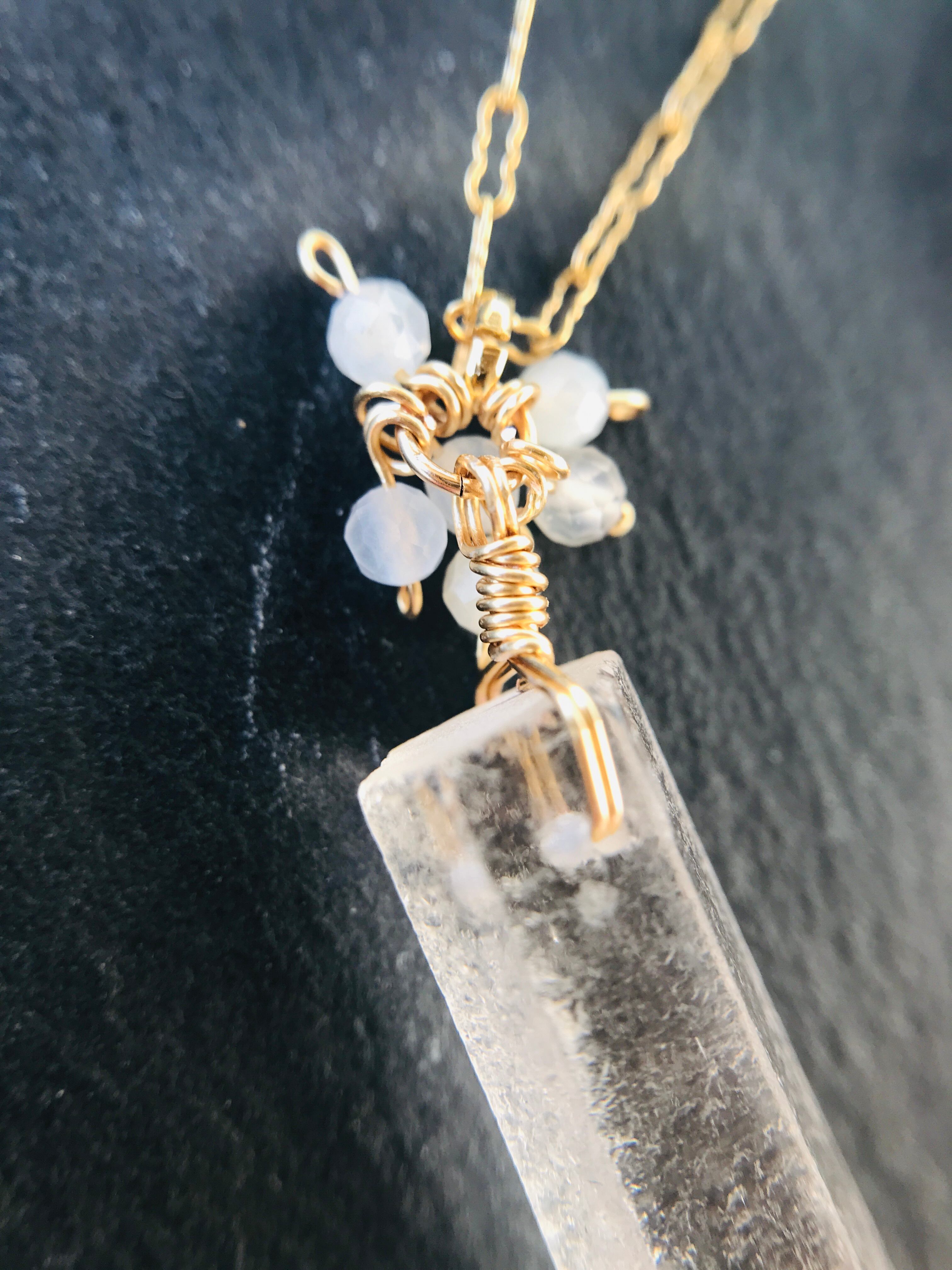 クリスタルポイントとホワイトムーンストーンネックレス 14kgf