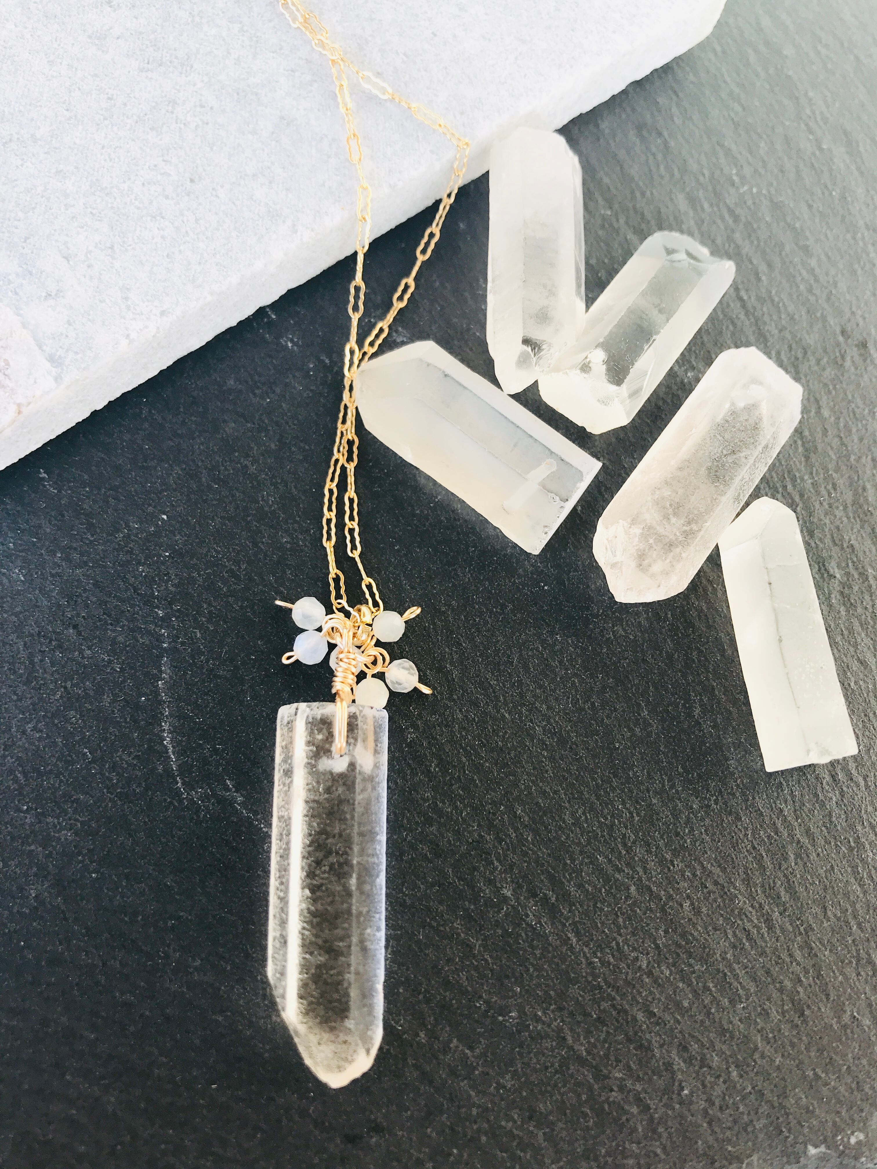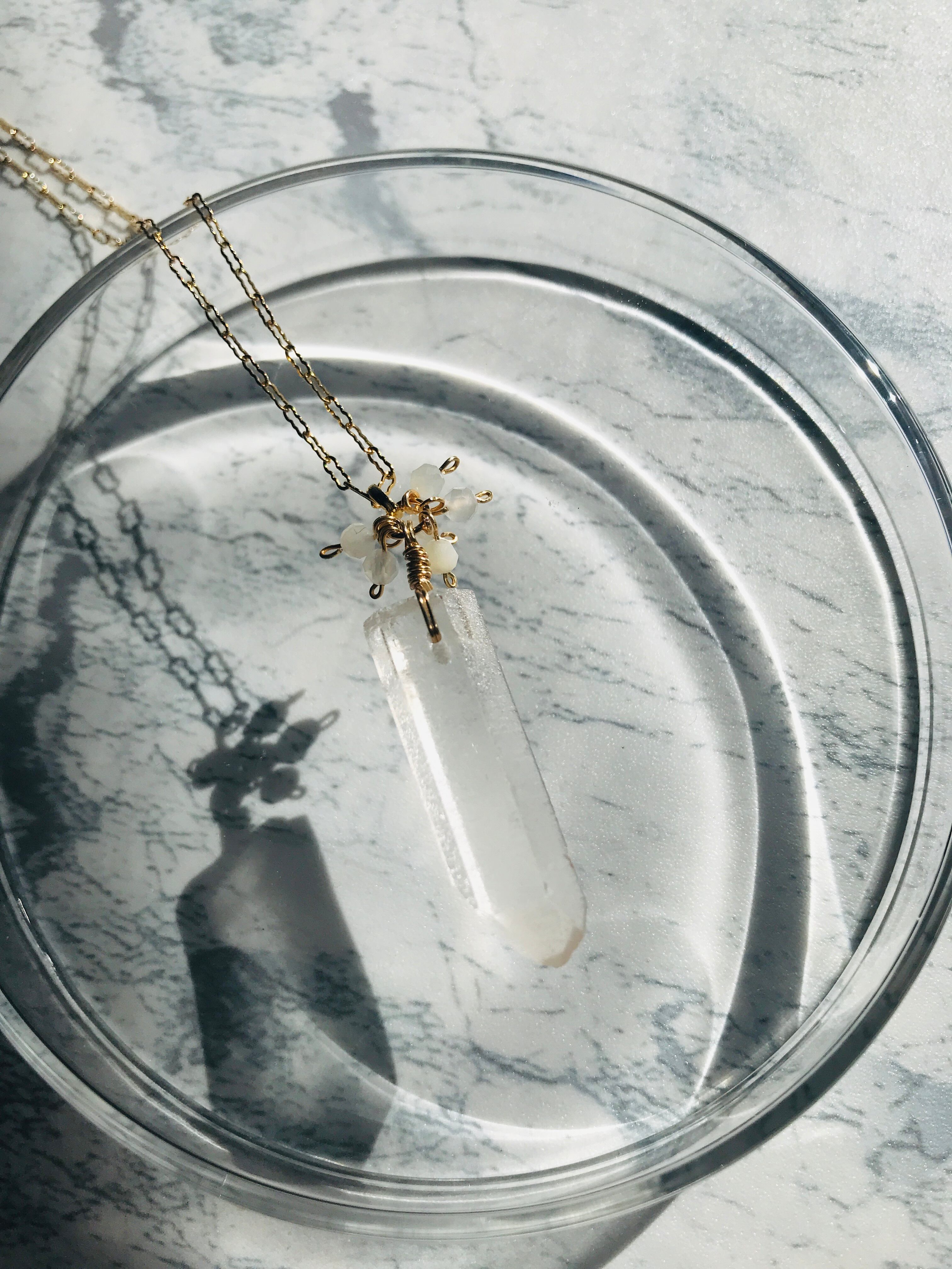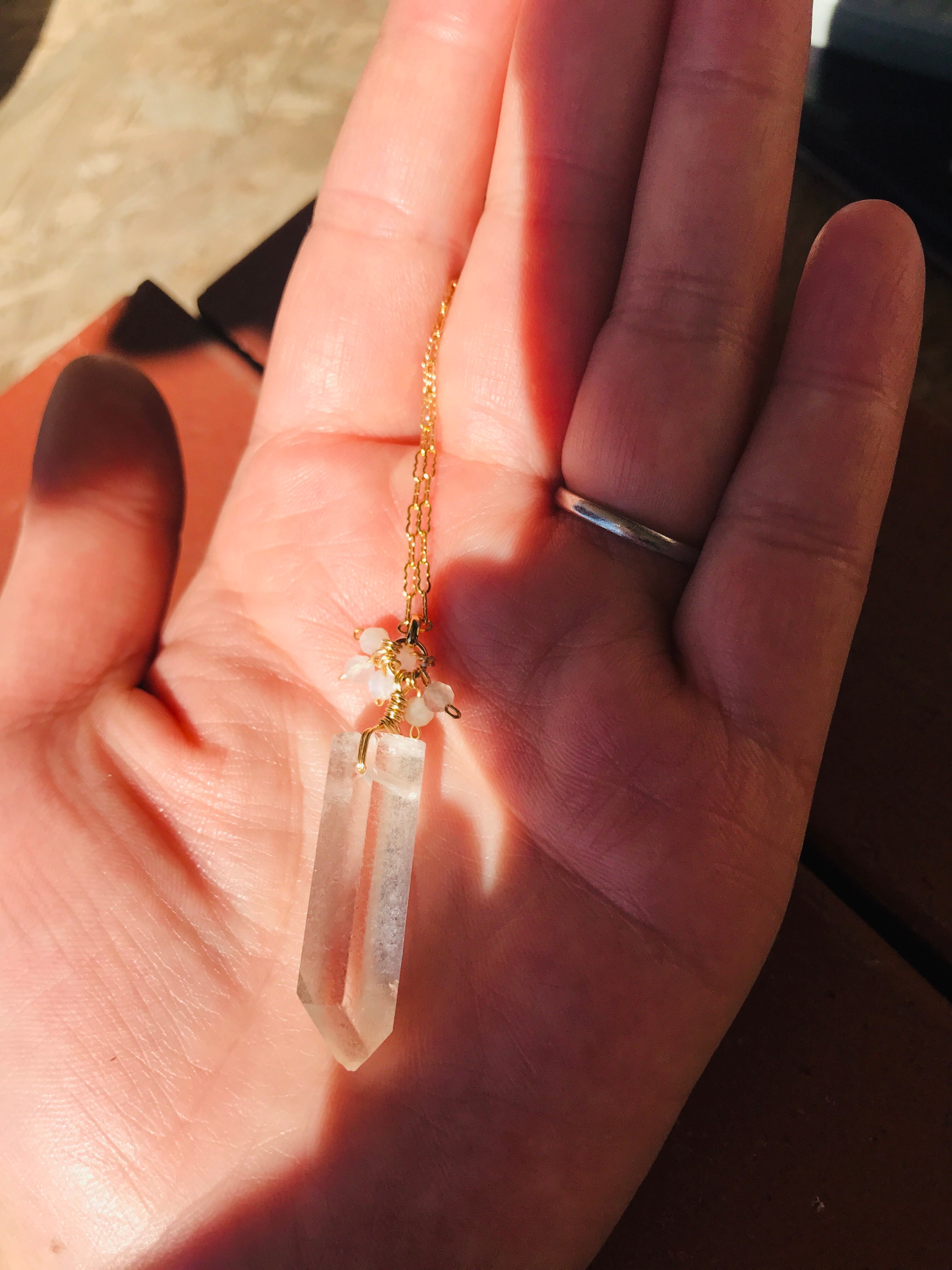 クリスタルポイントとホワイトムーンストーンネックレス 14kgf