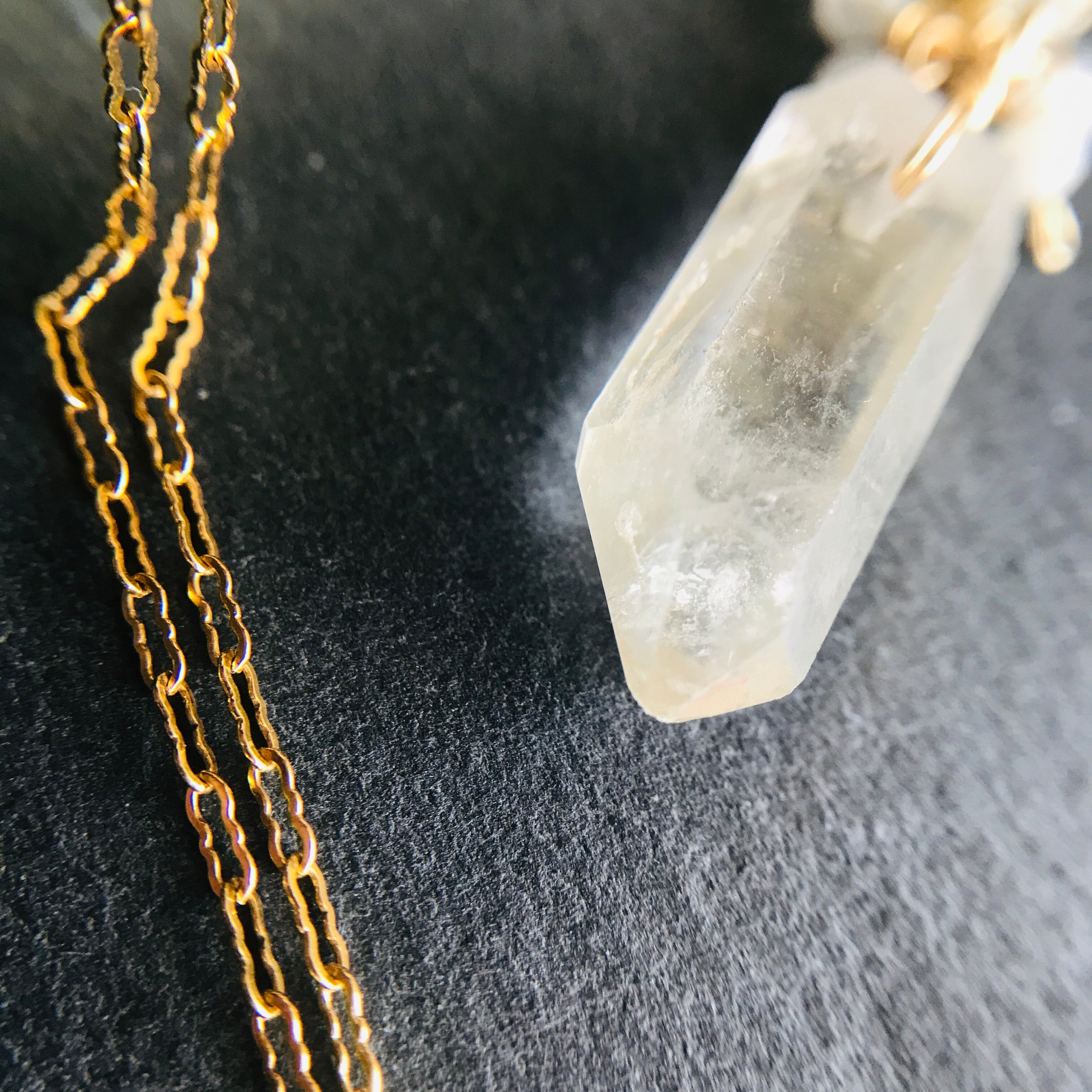 インドのジャイプールで買い付けした、天然クリスタルポイント(柱型)をつかったkiranahオリジナルネックレスです✨