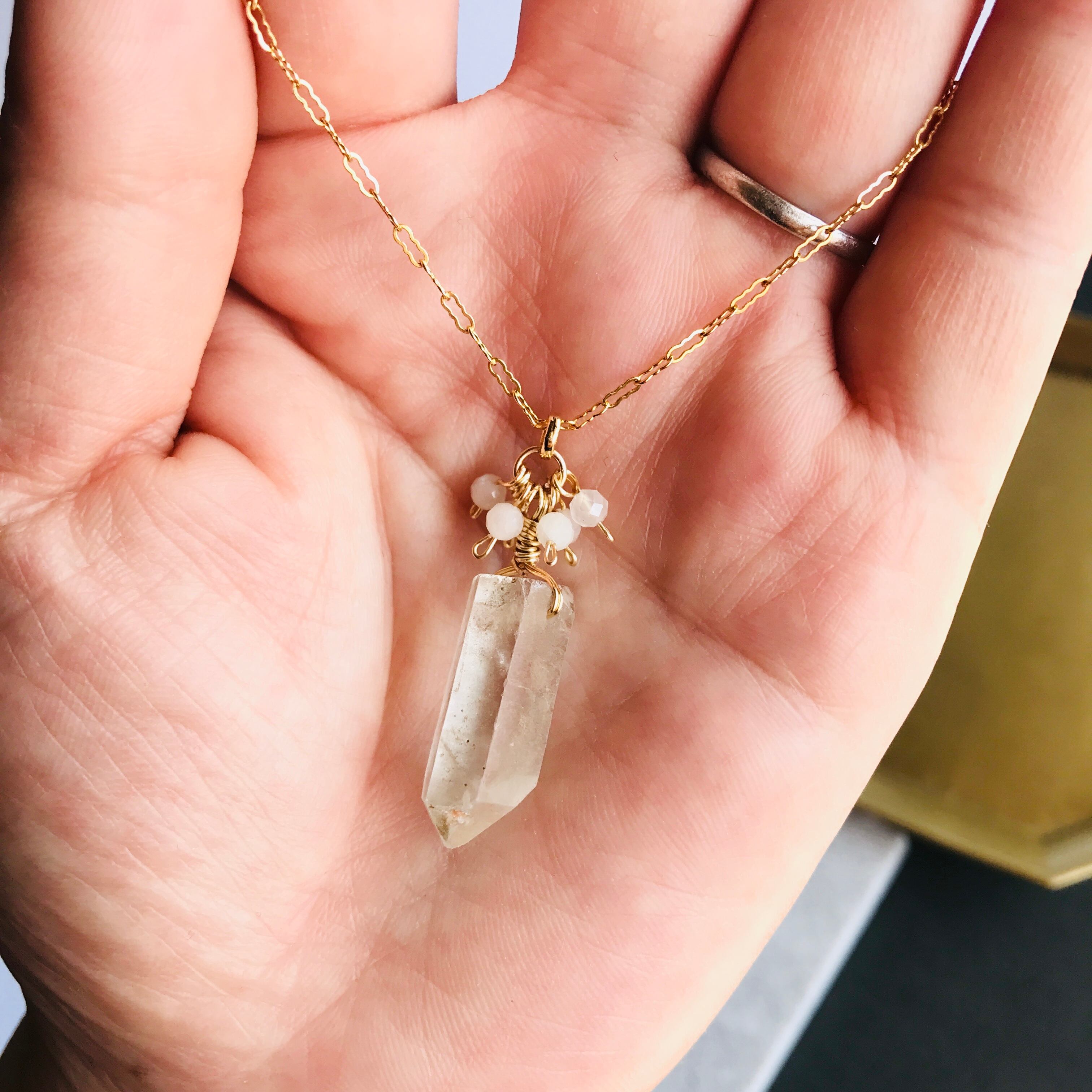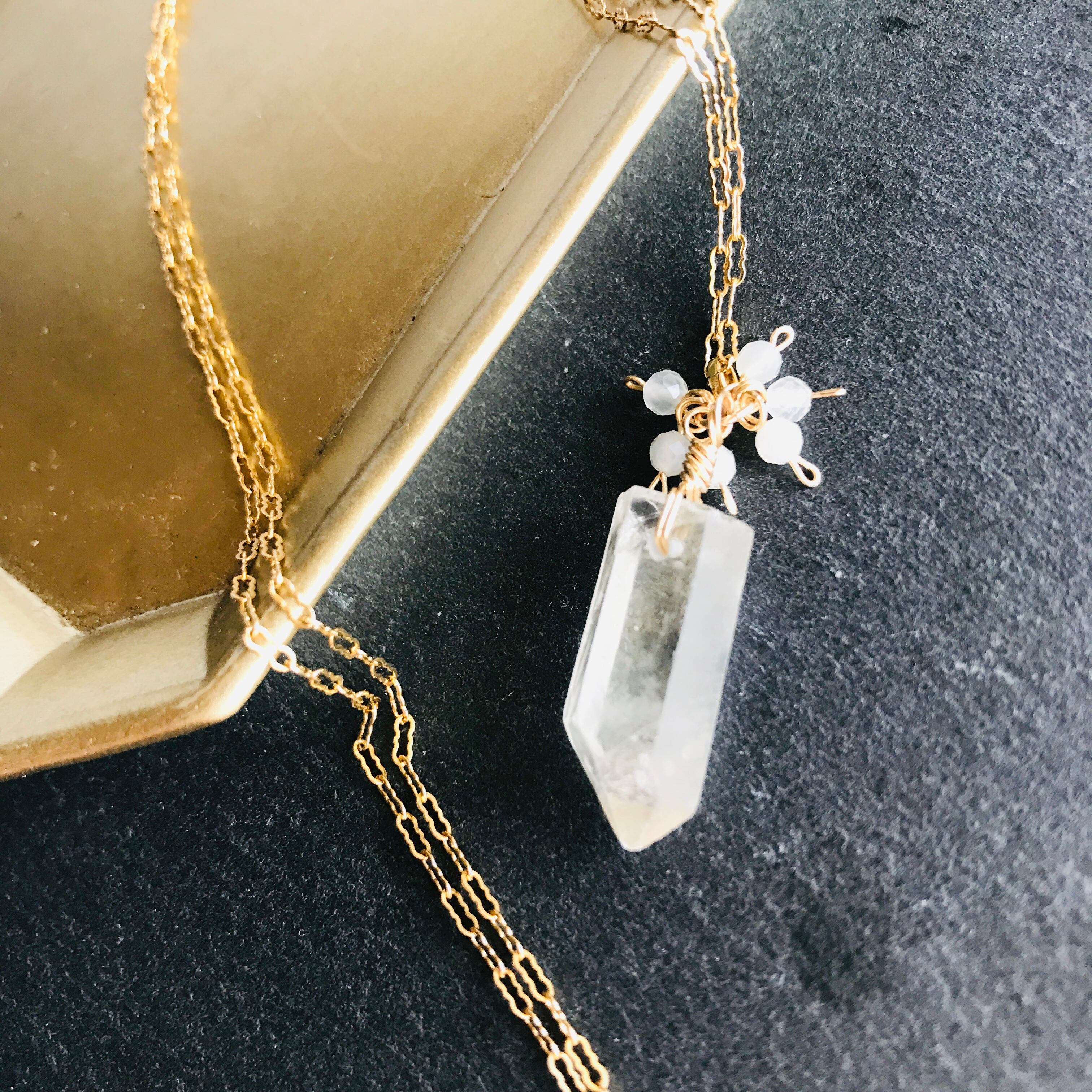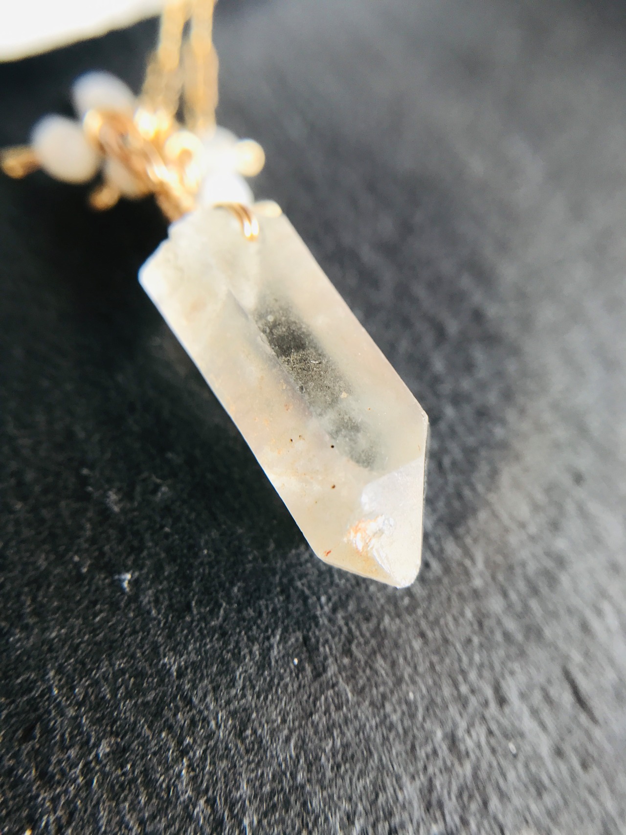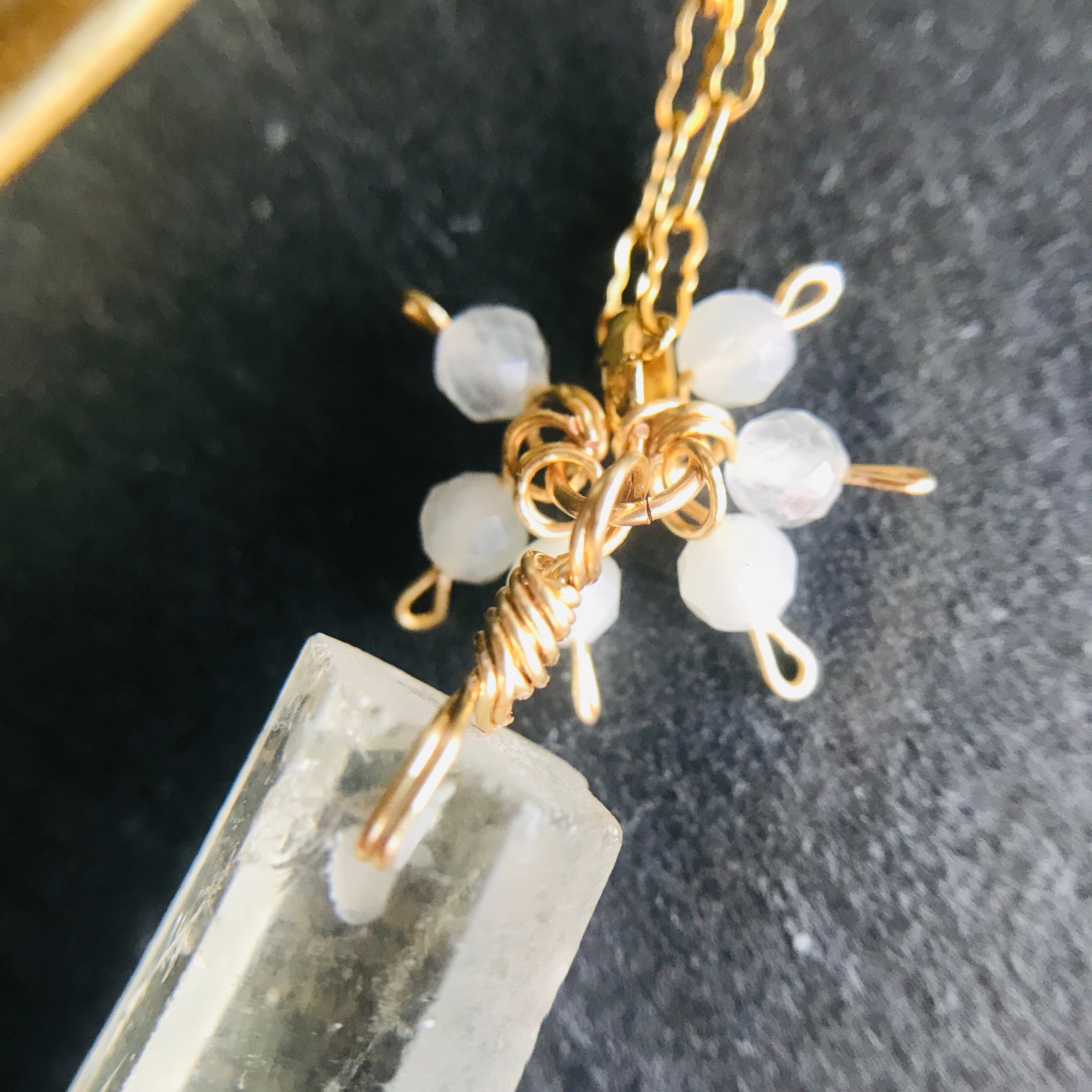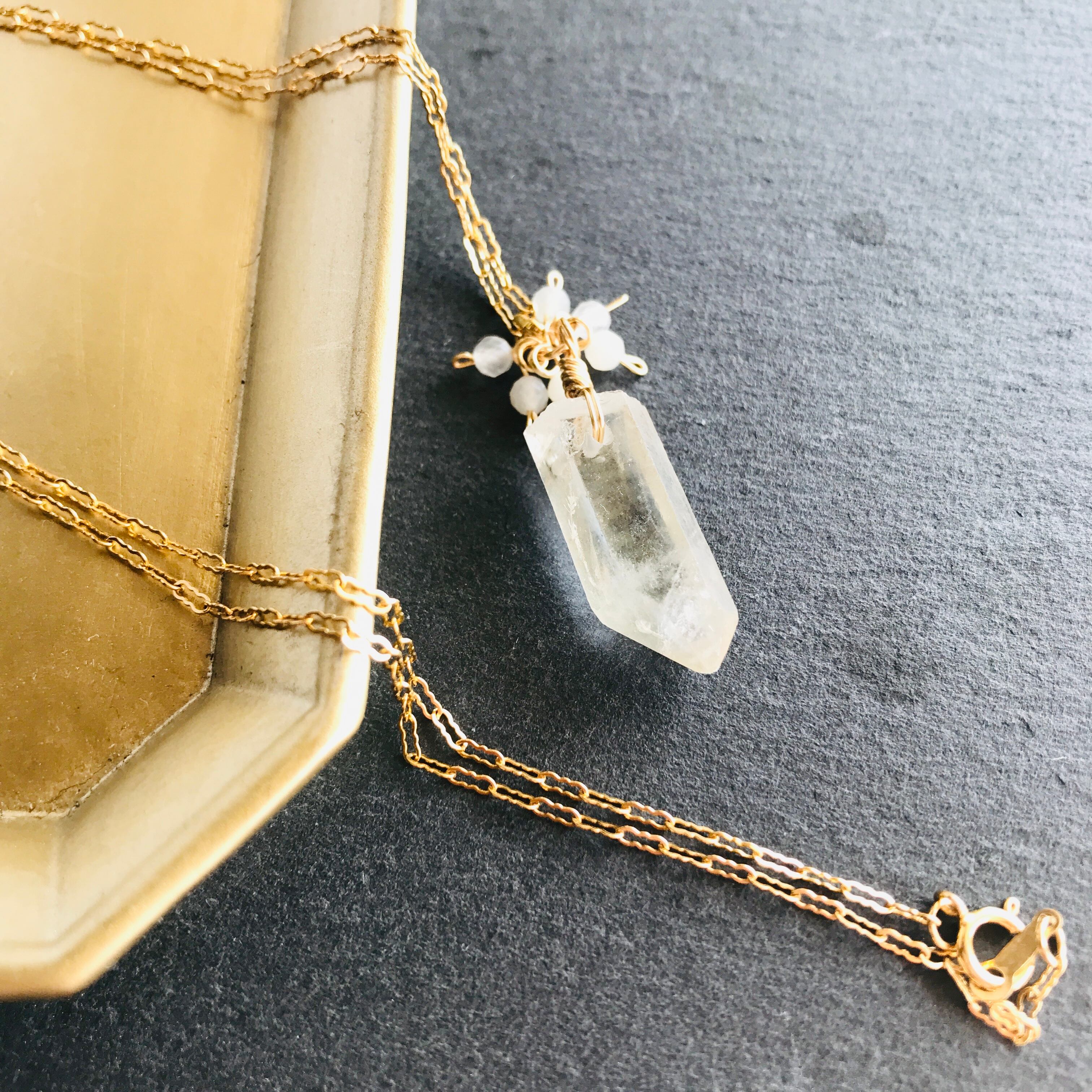 クリスタルポイントとホワイトムーンストーンネックレス 14kgf