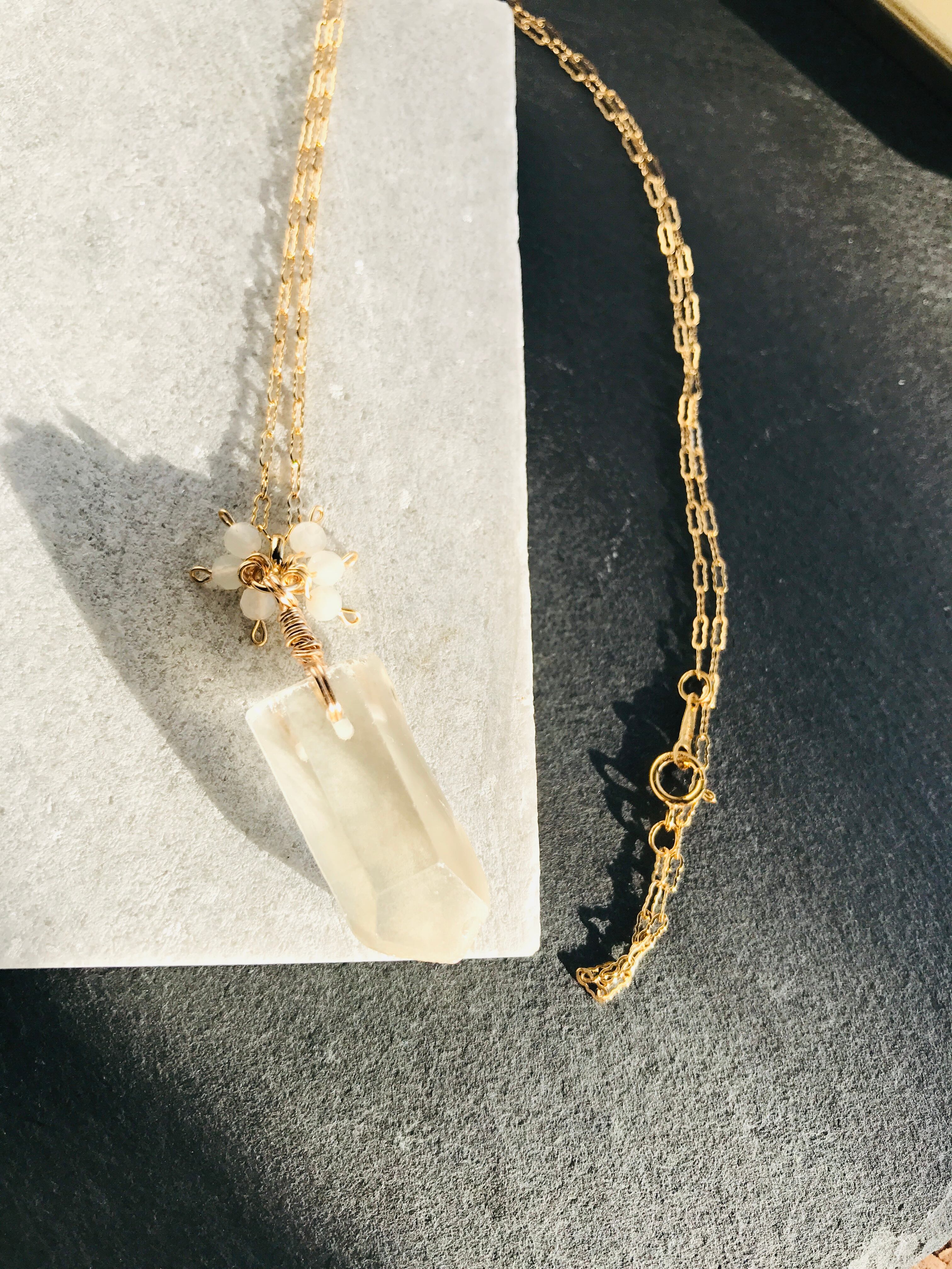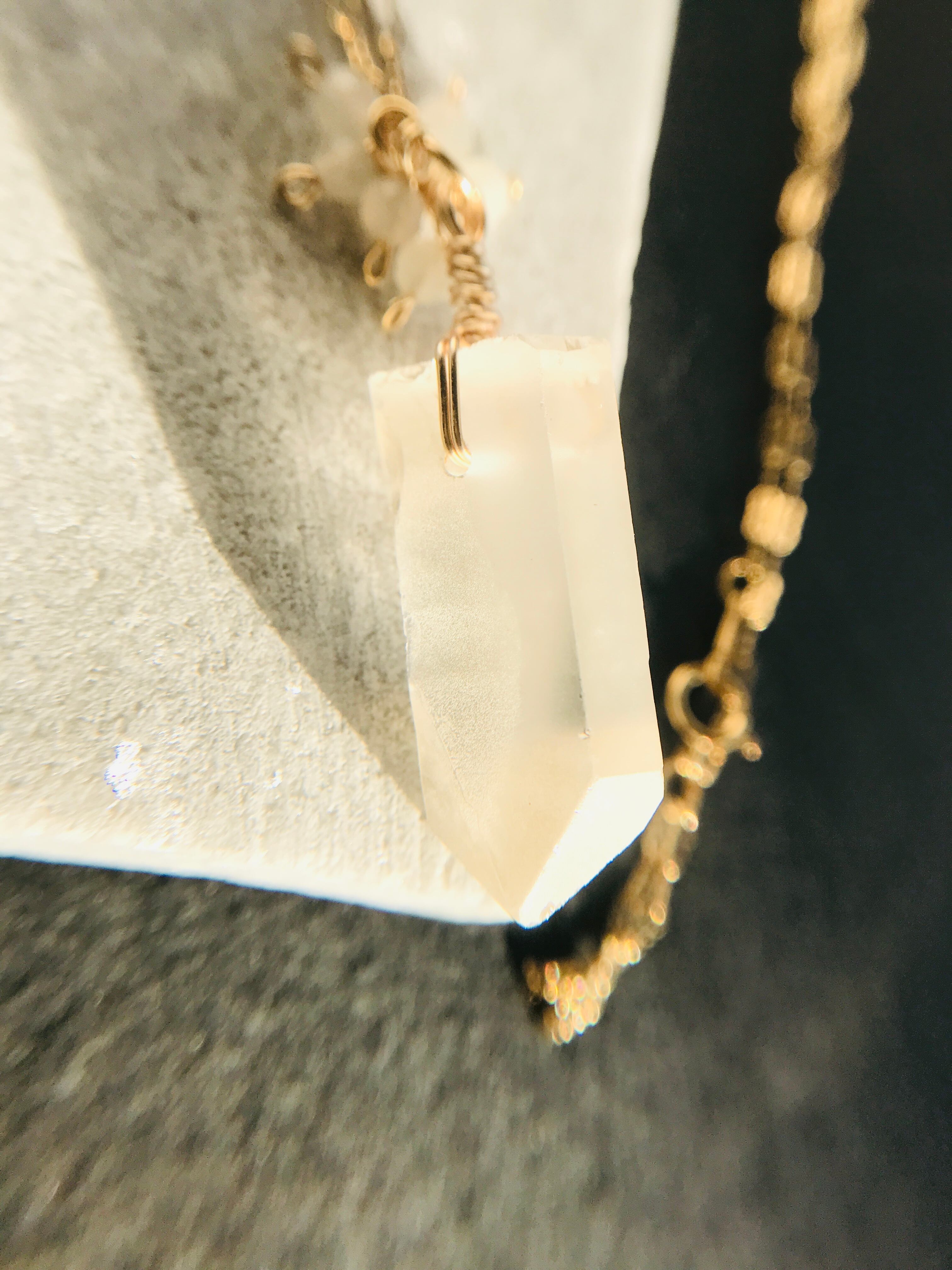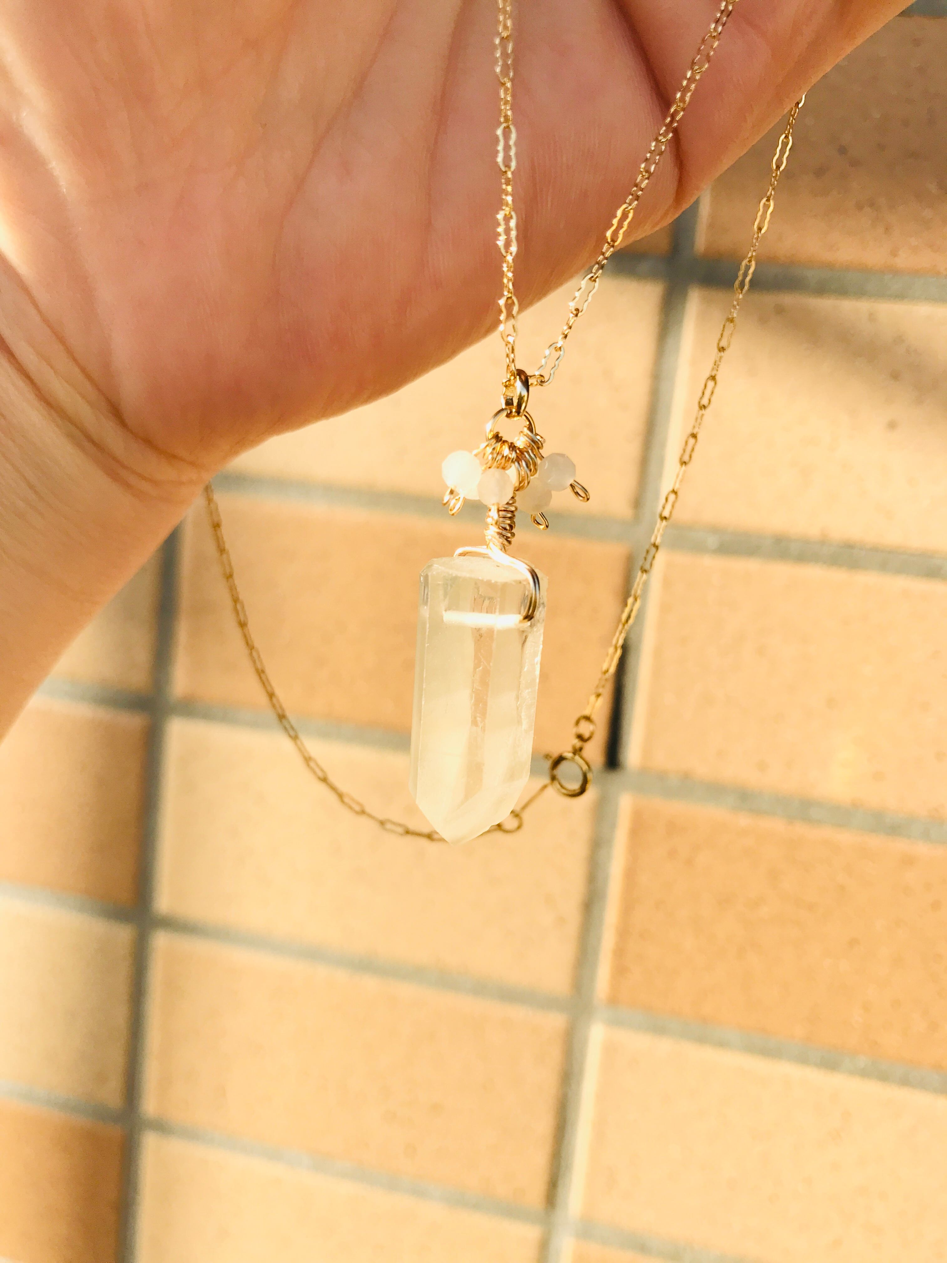 クリスタルポイントとムーンストーンネックレス 14kgf