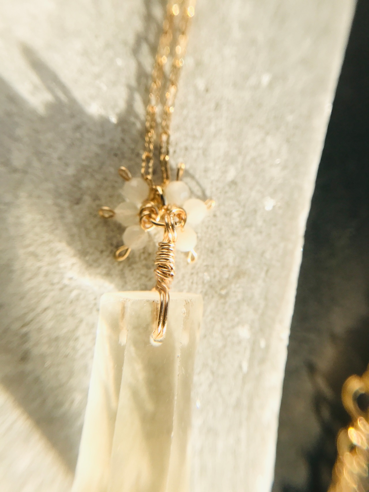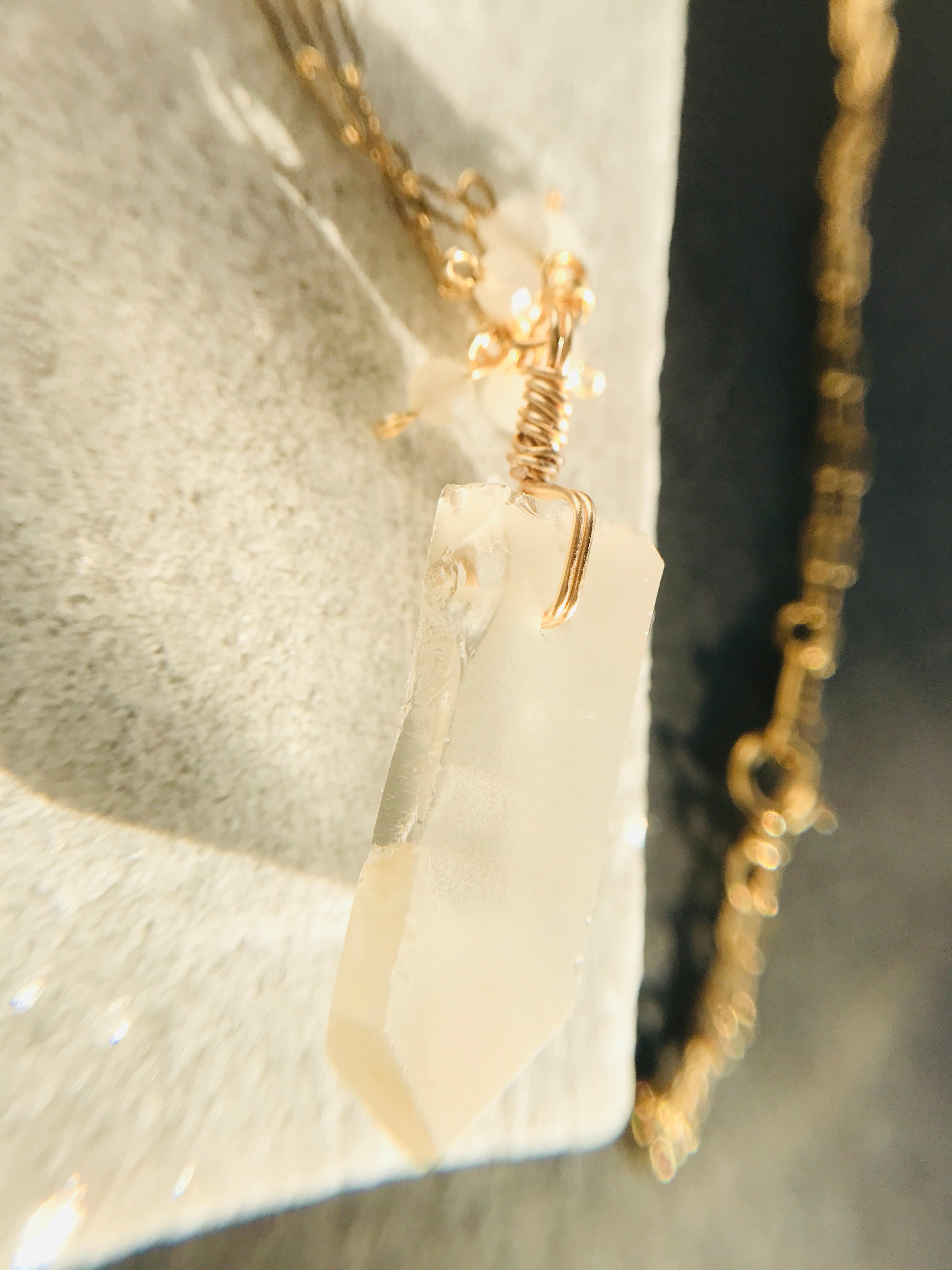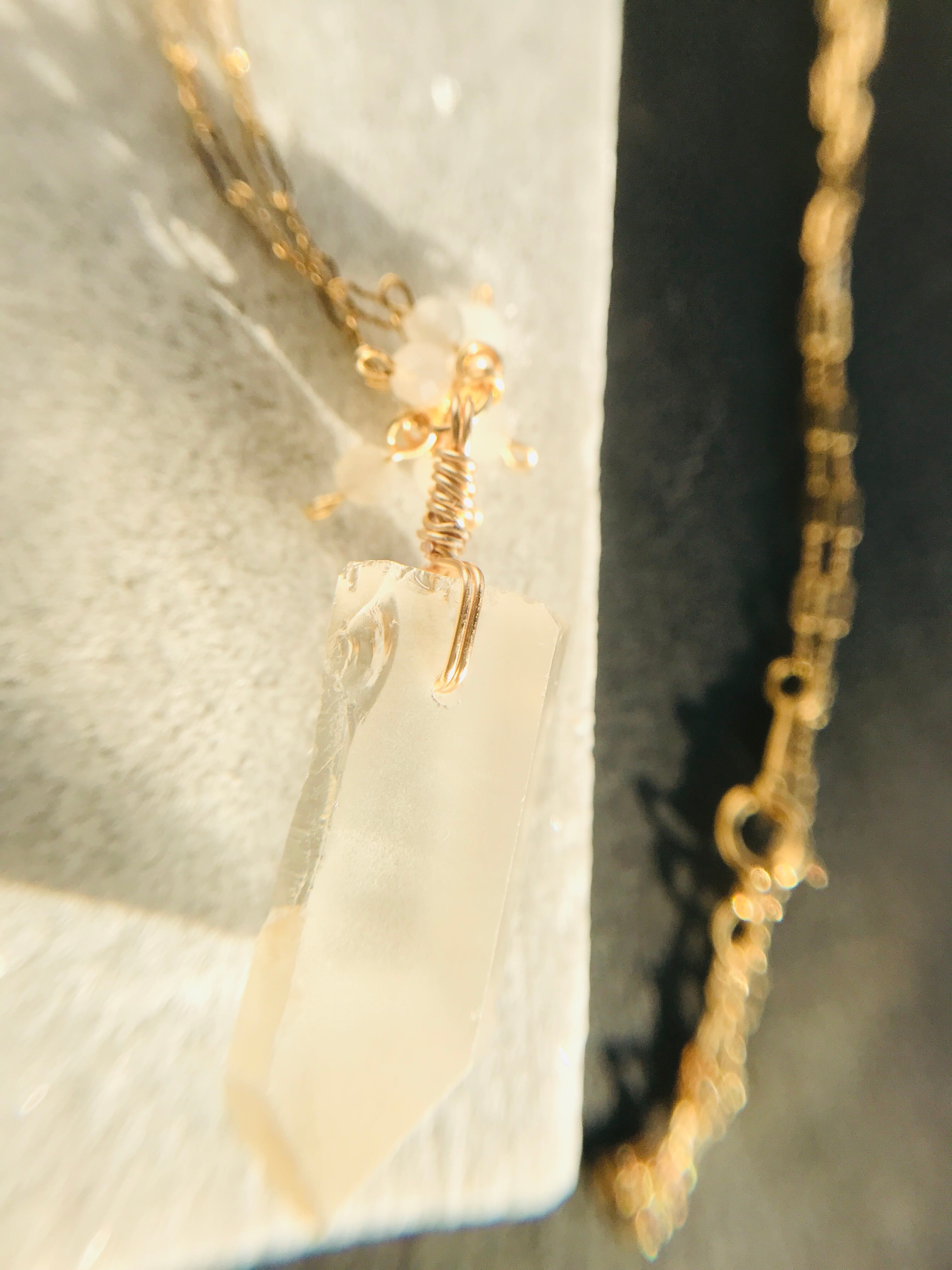 クリスタルポイントとムーンストーンネックレス 14kgf