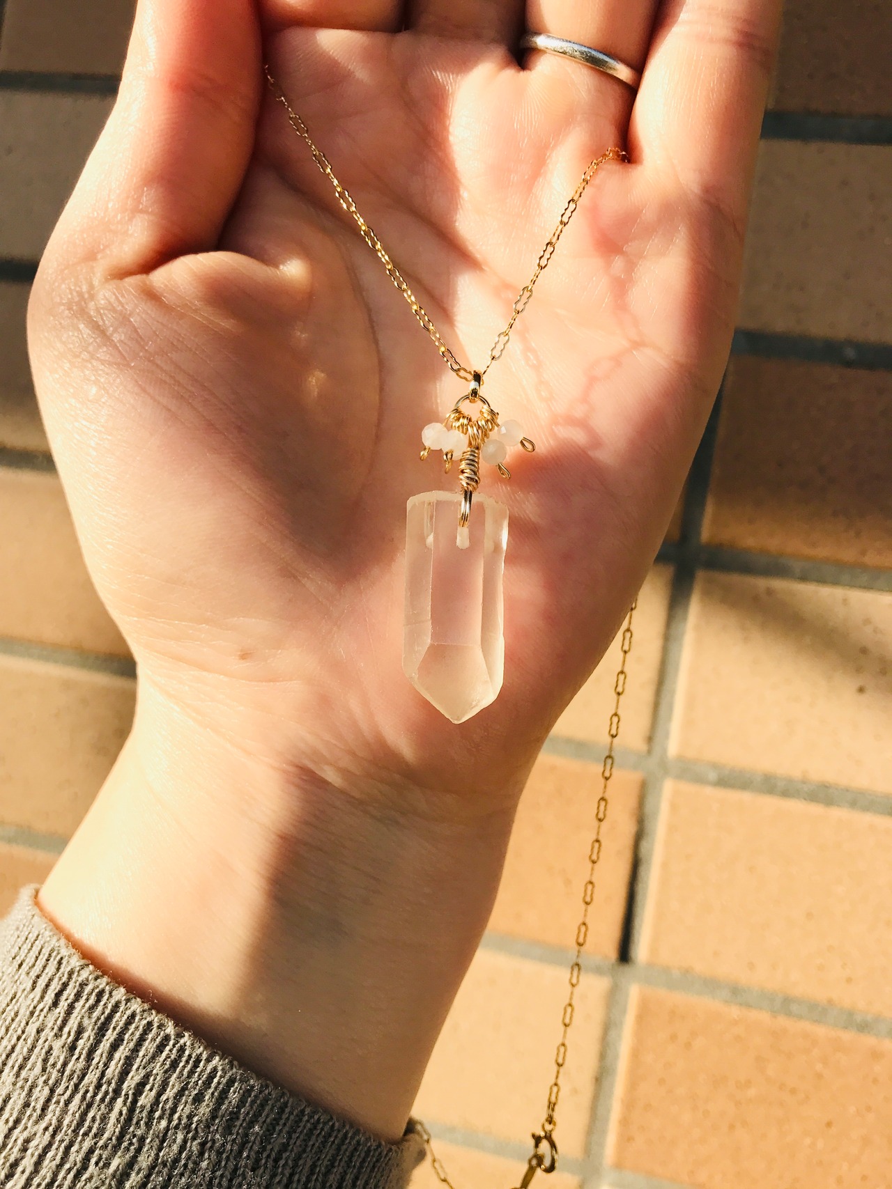 インドのジャイプールで買い付けした、天然クリスタルポイント(柱型)をつかったkiranahオリジナルネックレスです✨