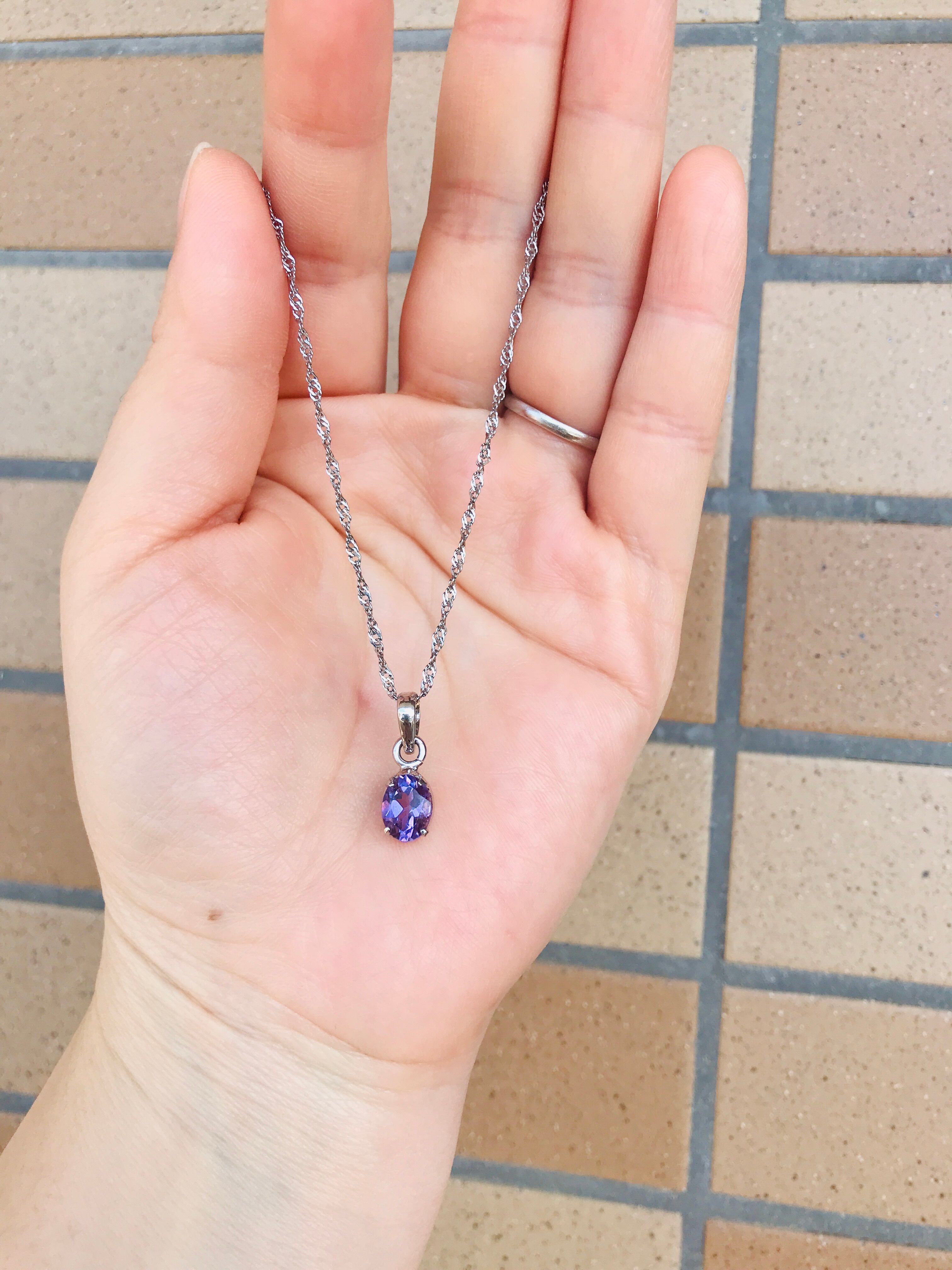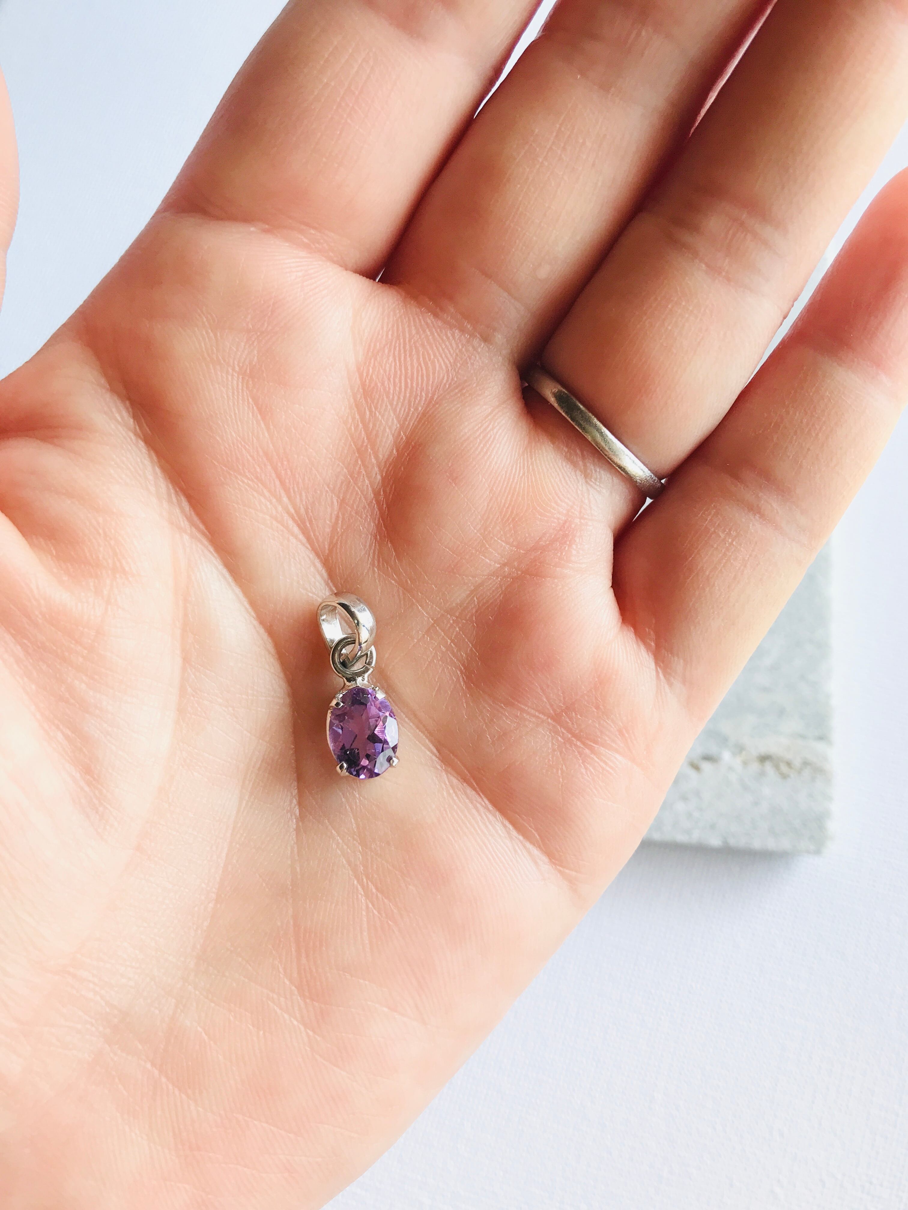 透明度が高いアメジストなので直接素肌に身に着けると、よりなじんで素敵な色合いになります。