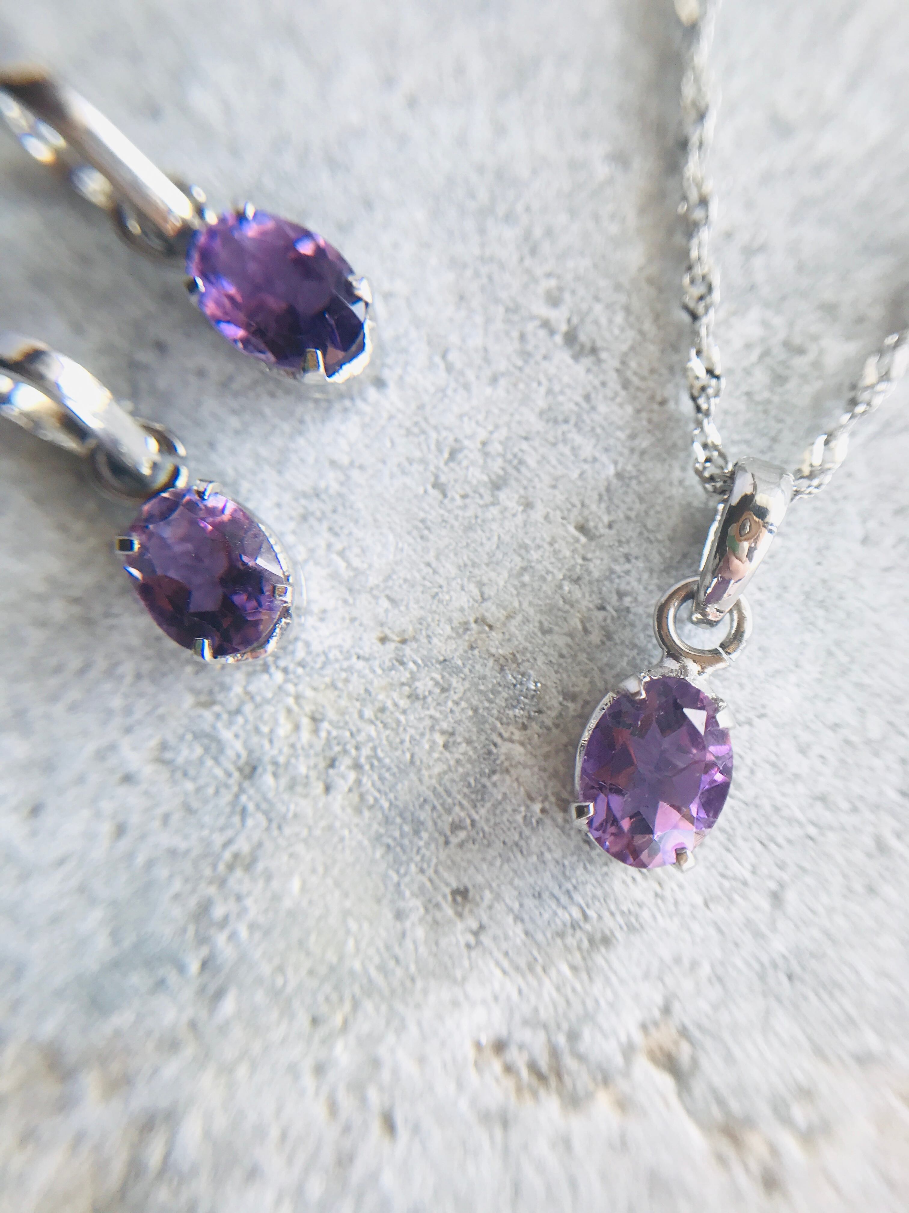 上品でやわらかい色味の紫色のアメジストが、石のカット面に反射して素敵な表情をみせてくれます。