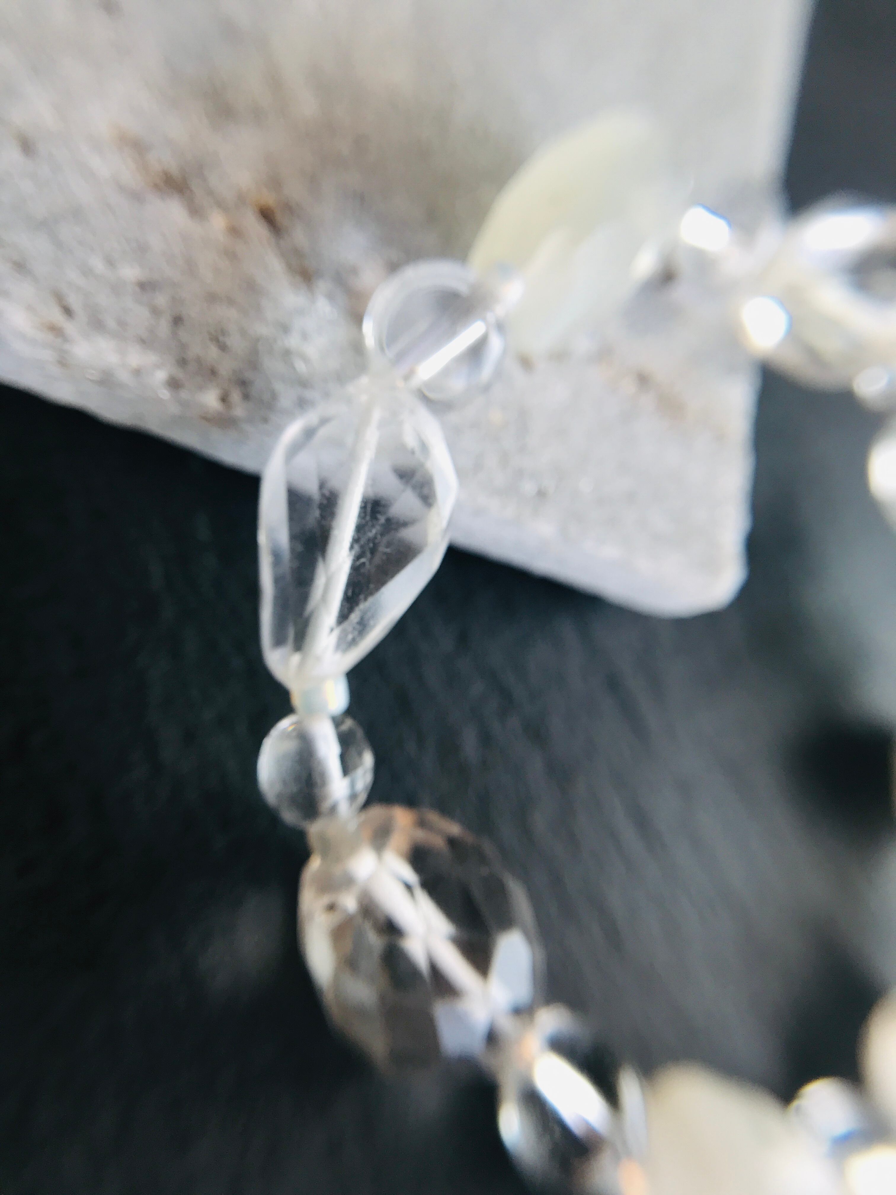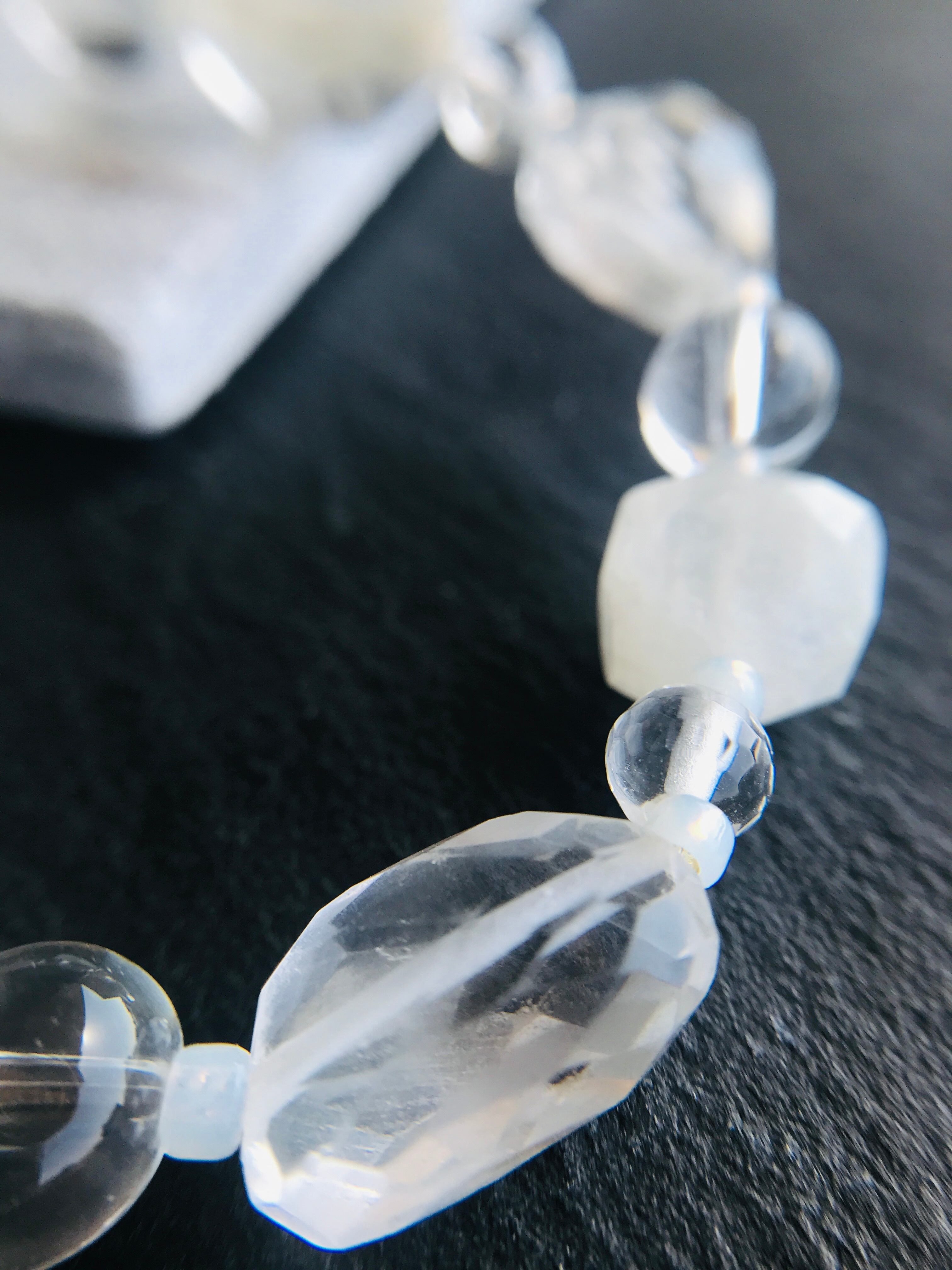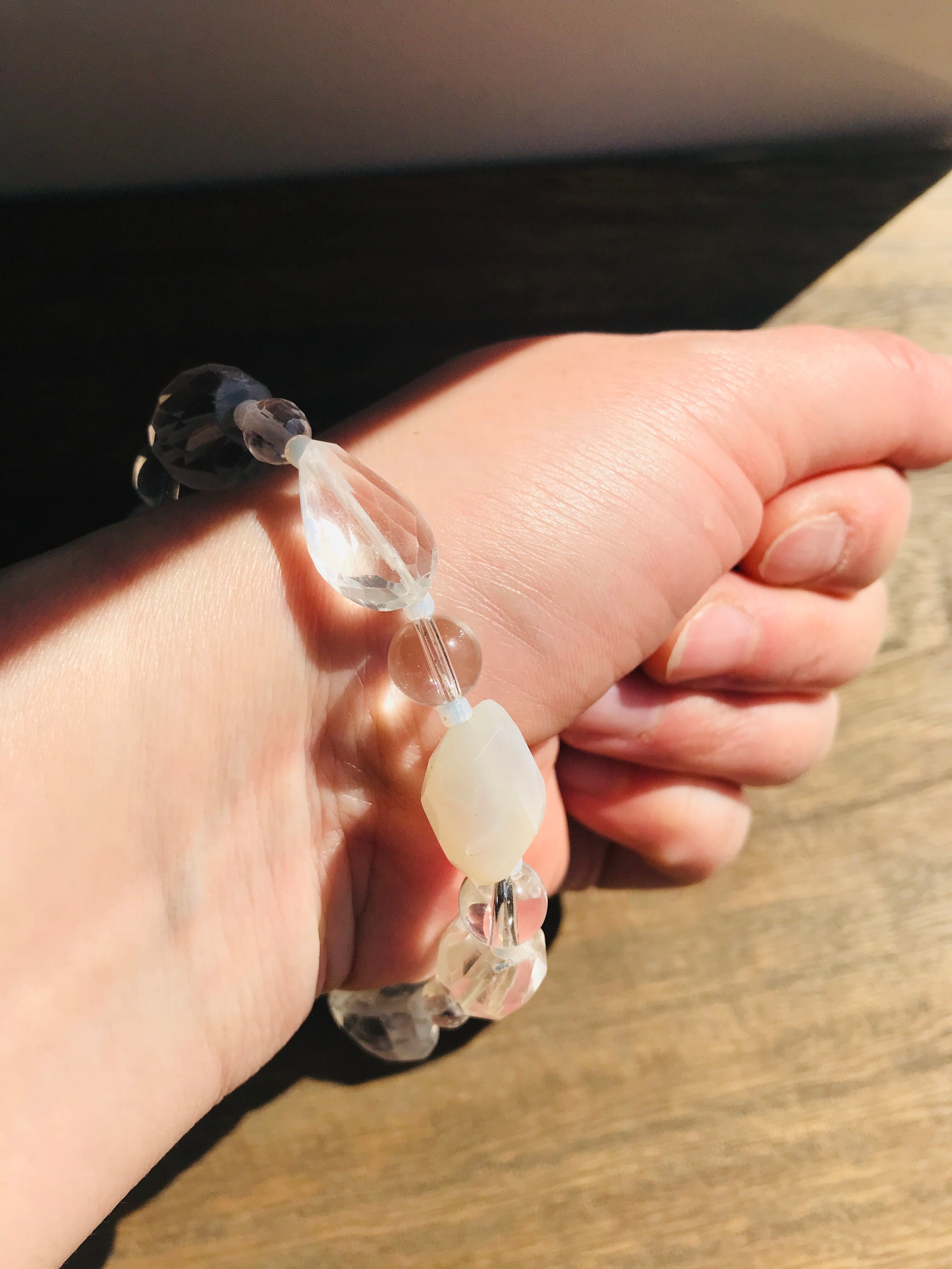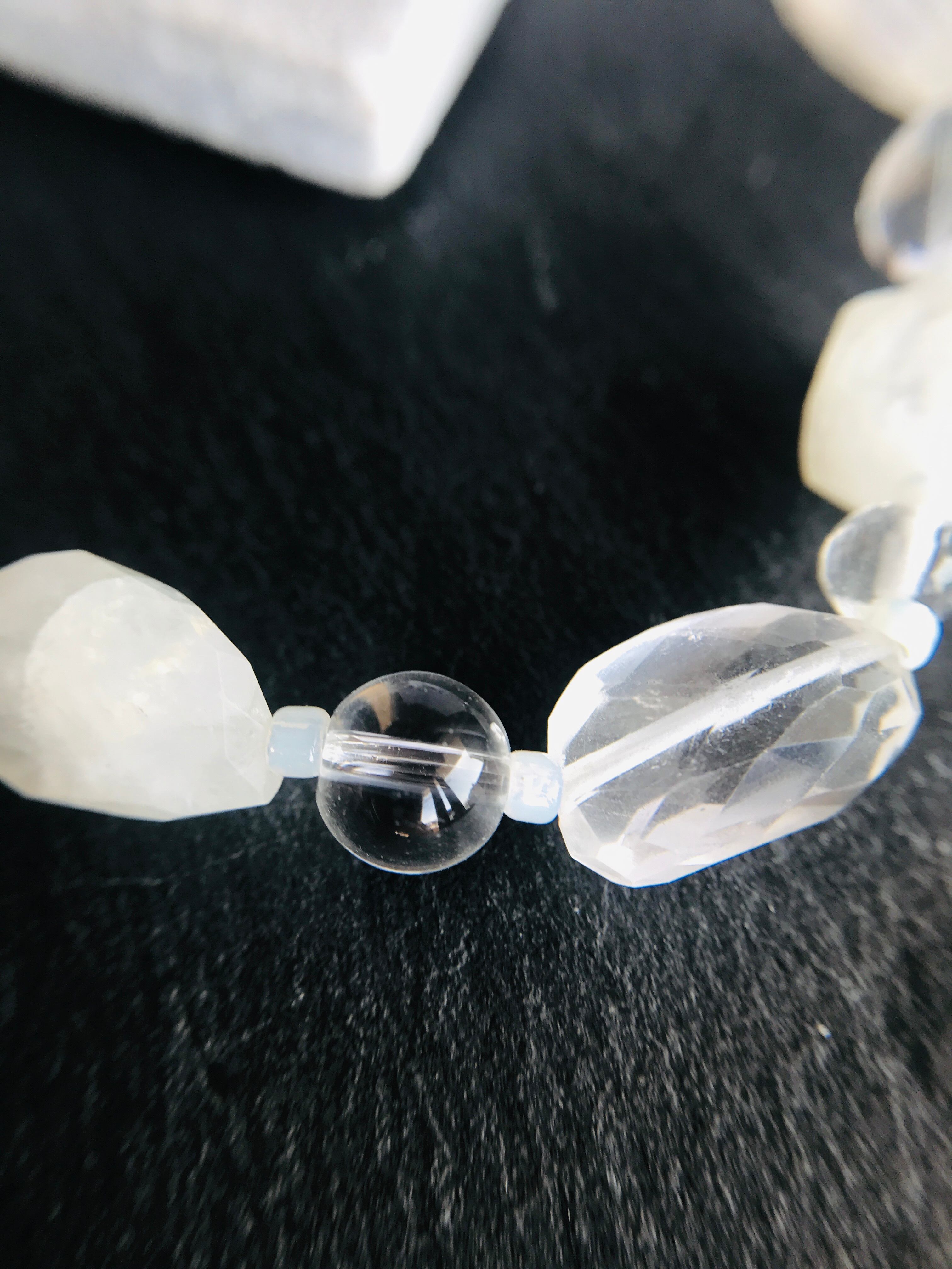 クリスタルとムーンストーンを組み合わせた洗練されたブレスレット。