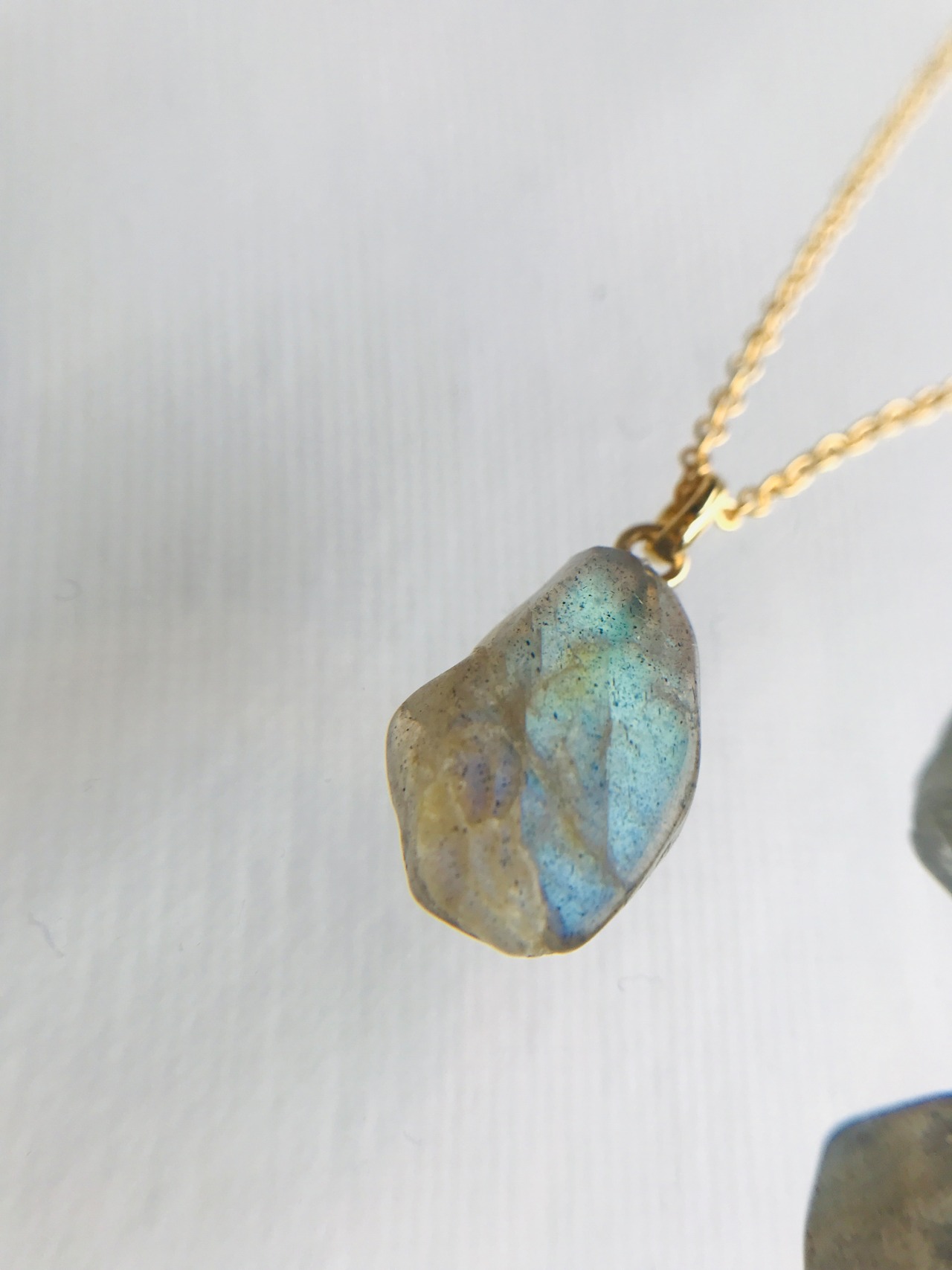 ラブラドライトは、一見するとブラックやグレー系の落ち着いた色味ですが、角度を変えるとグリーンやブルー、ゴールドといったカラーが魅力的なパワーストーンです。