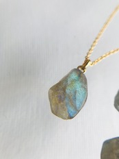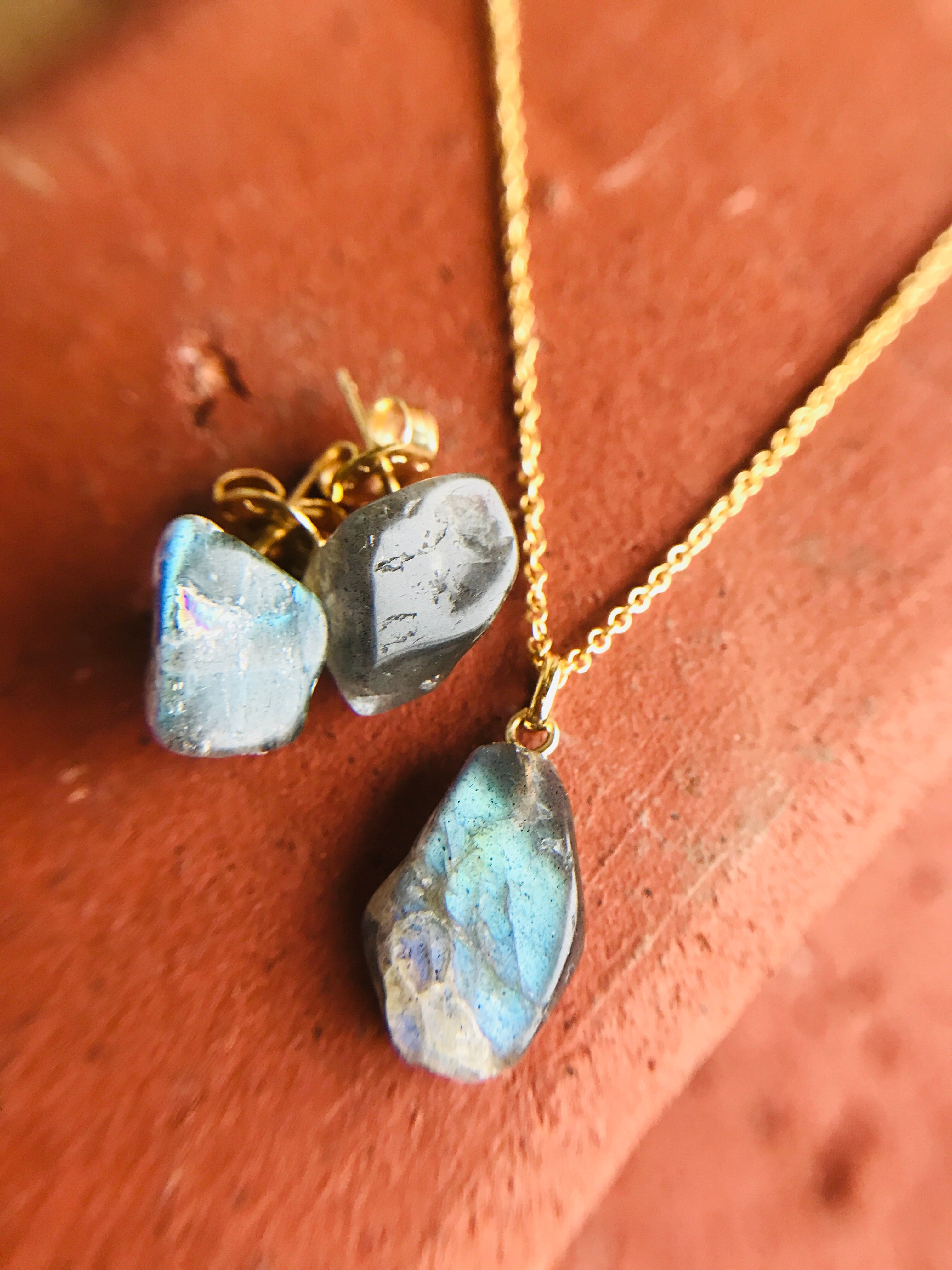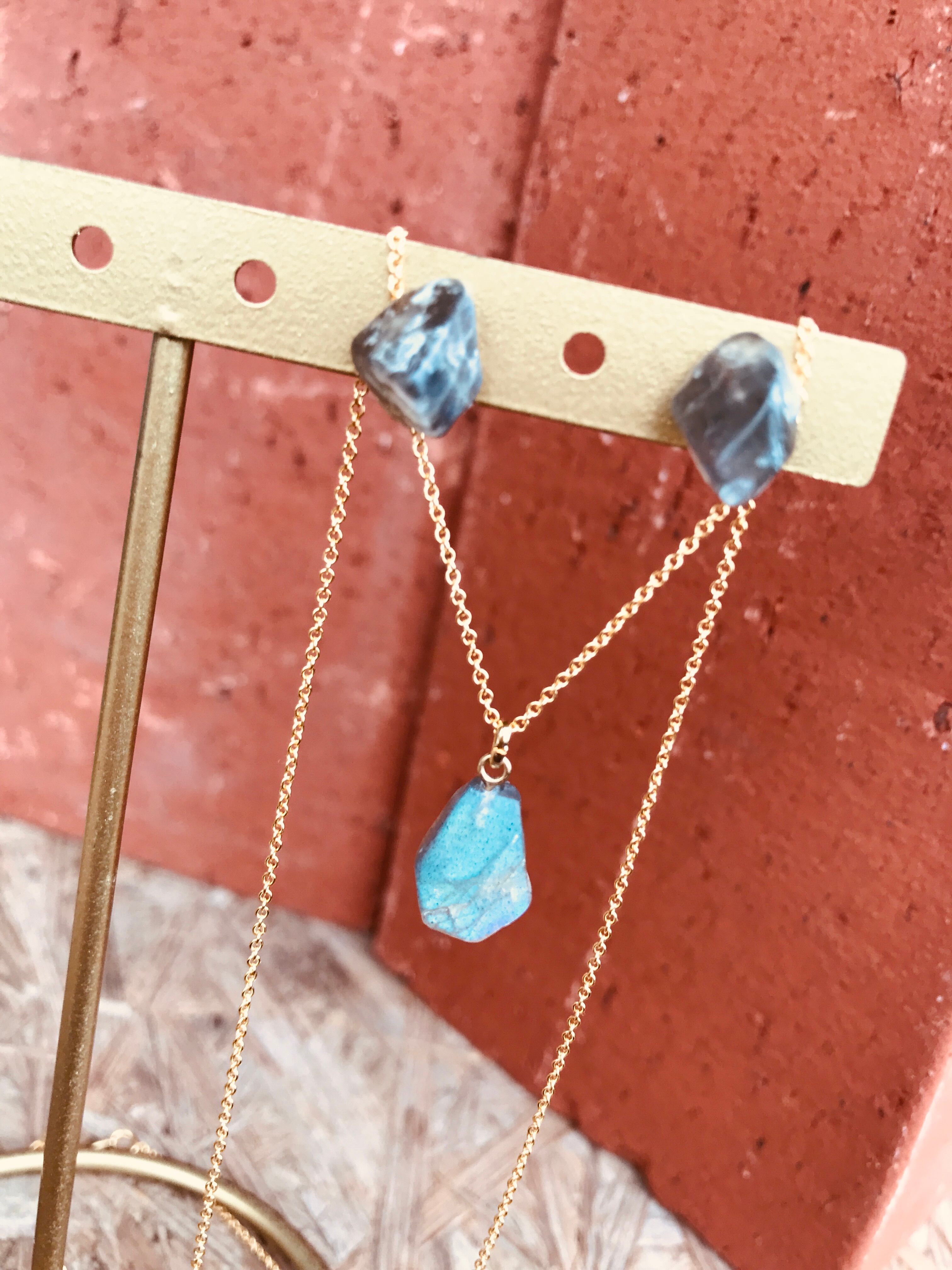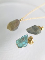 ラブラドライト原石 ネックレスとピアスセット 14kgf
