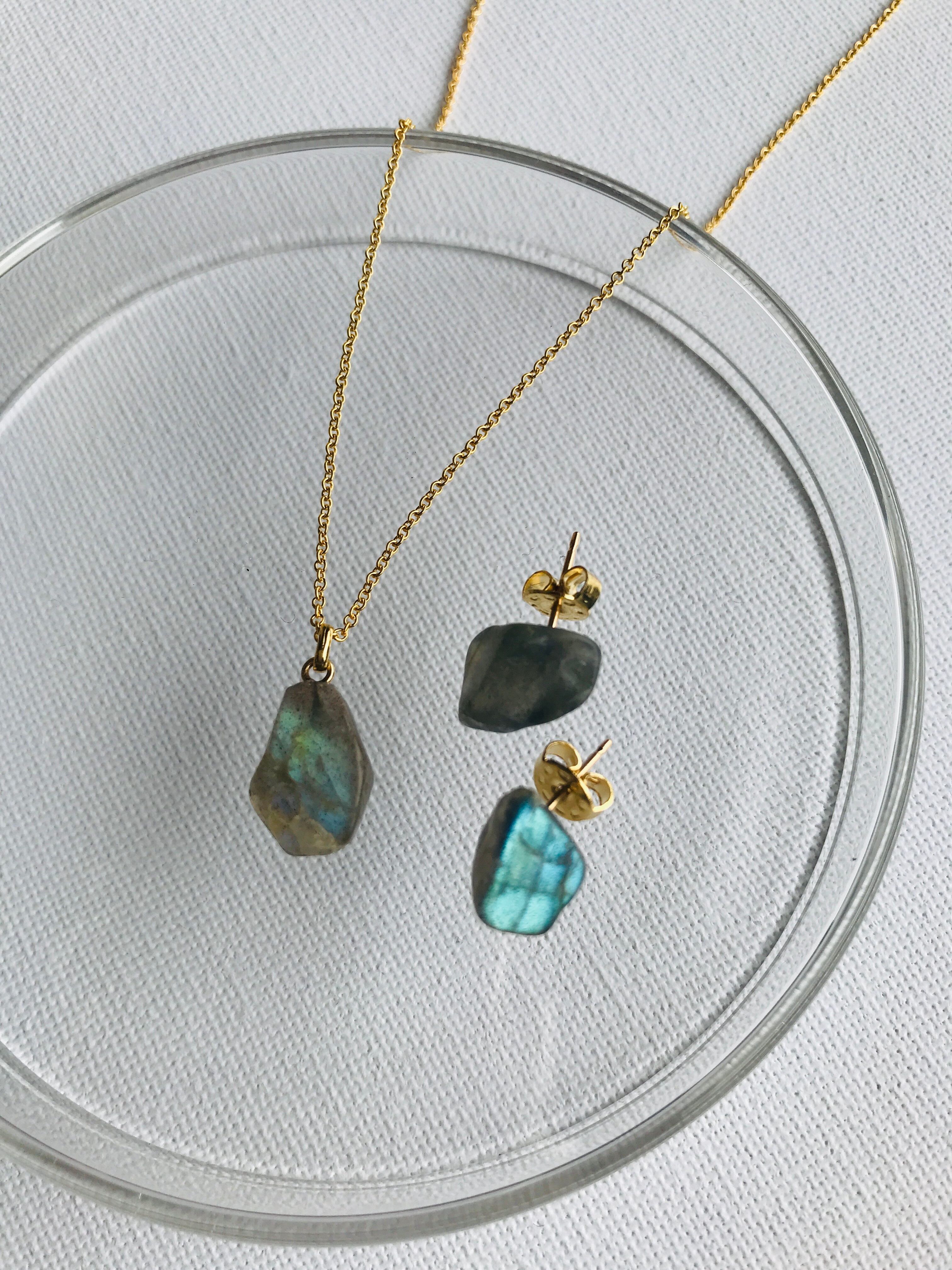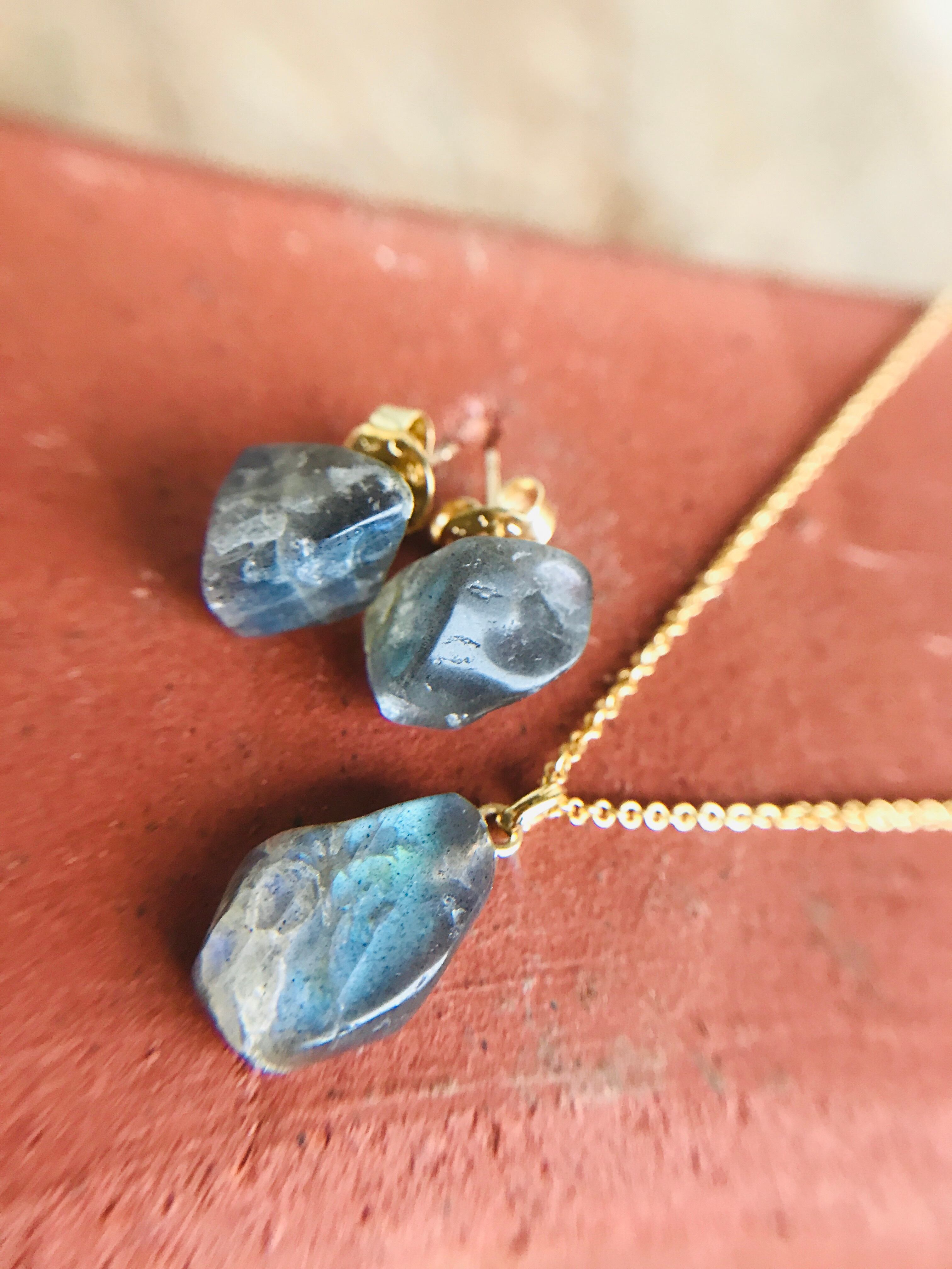 インドのジャイプールで直接買い付けした、ラブラドライトの原石を使ったkiranahオリジナル豪華セットです。