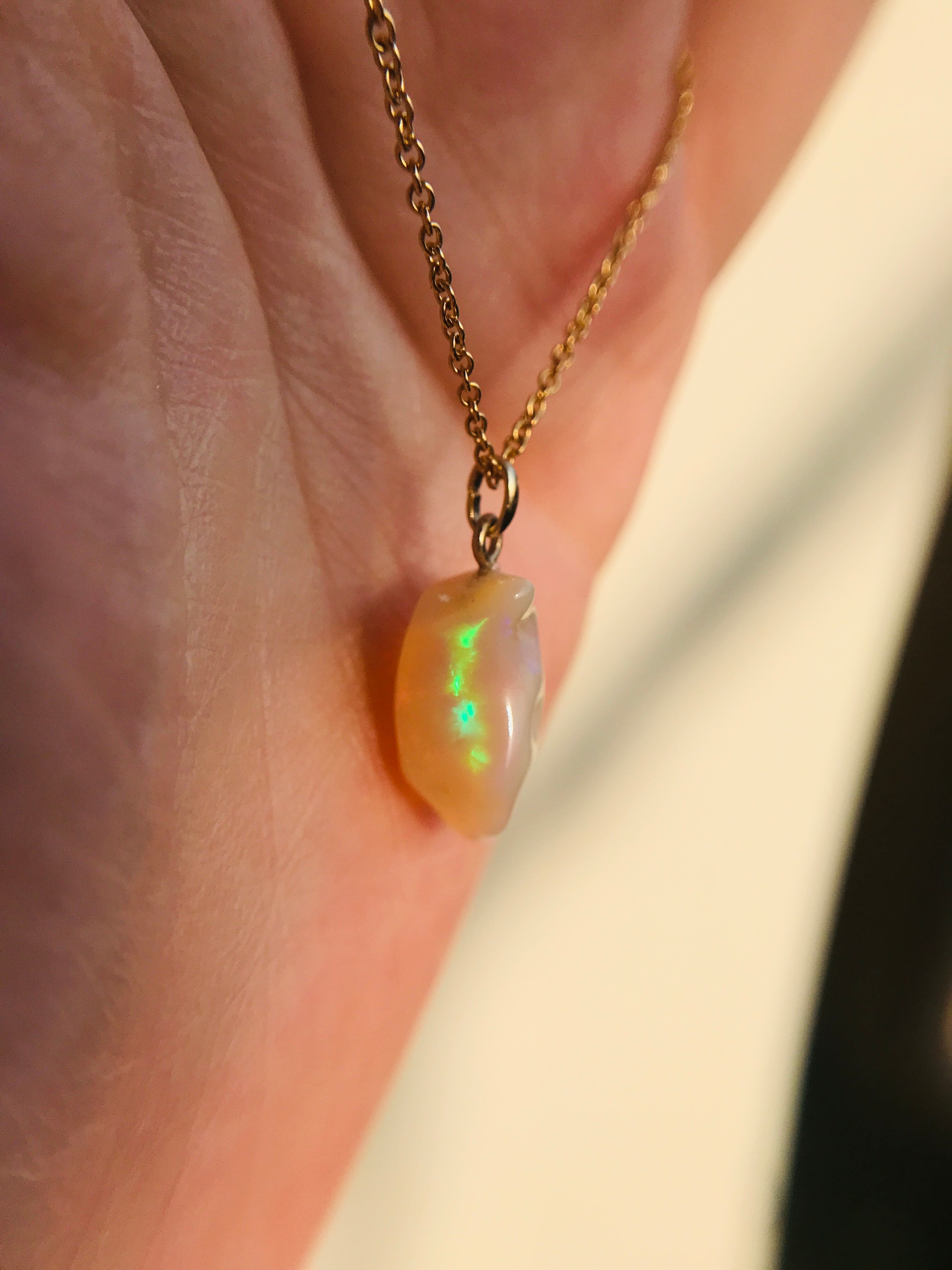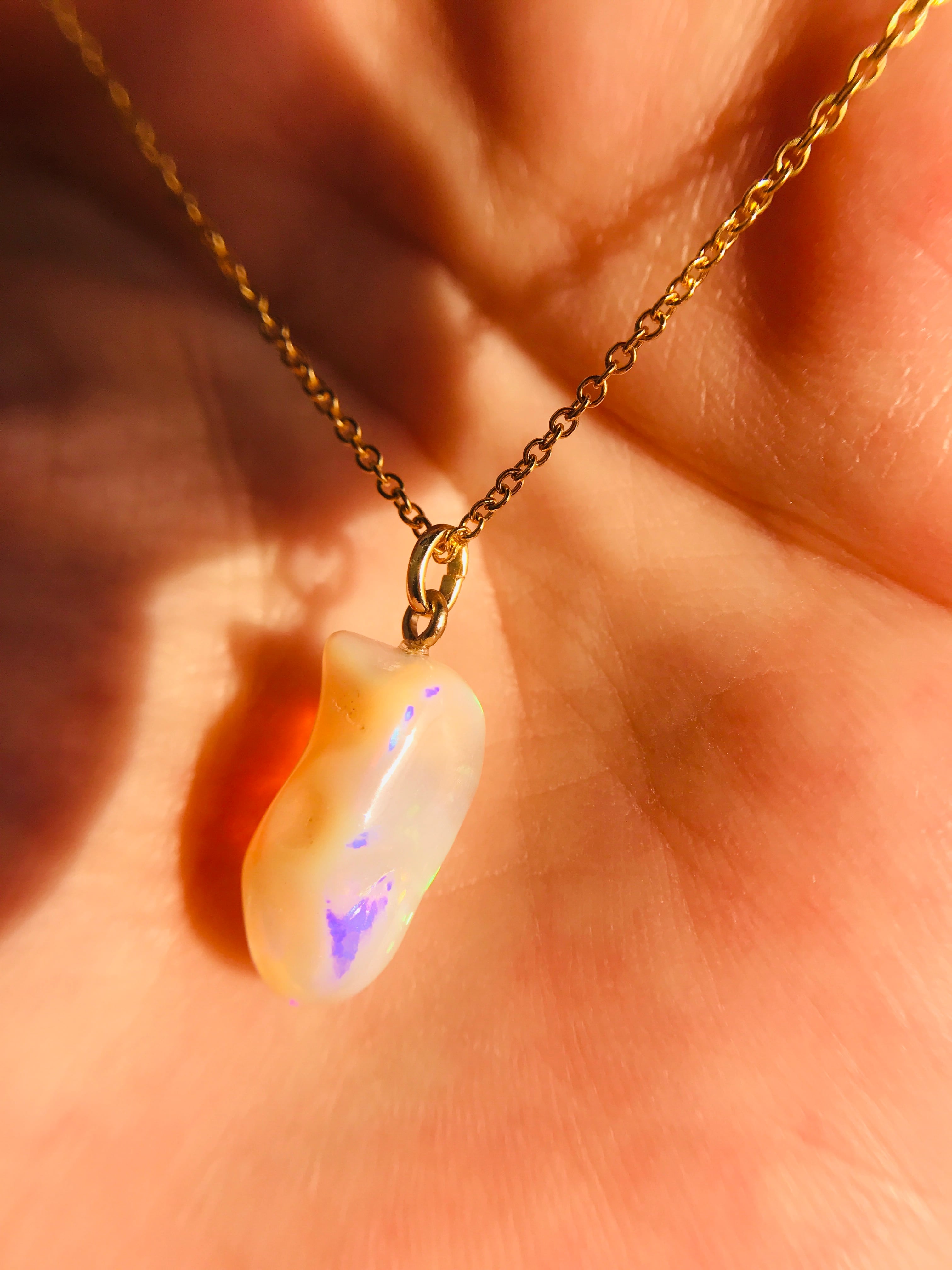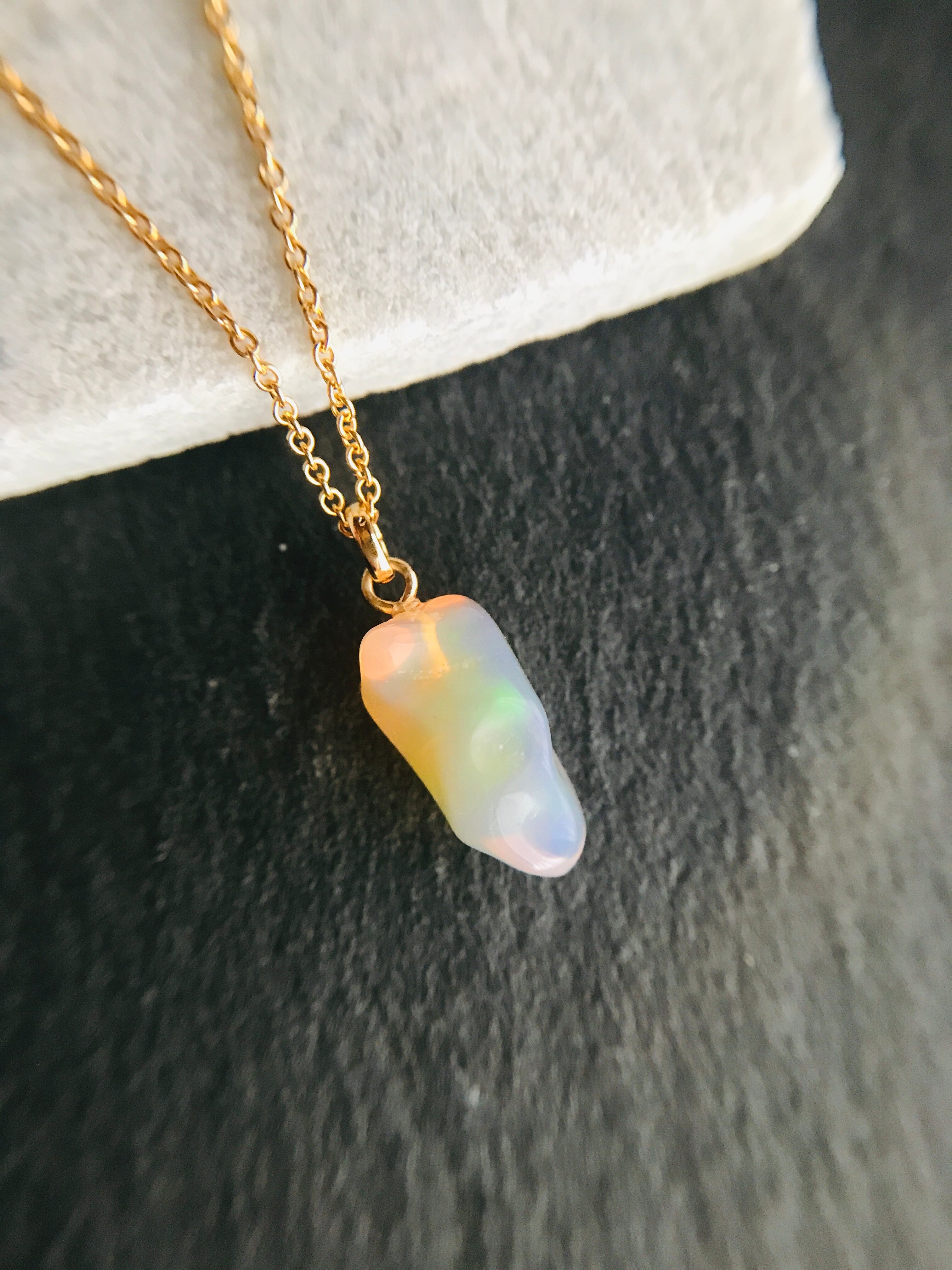 インドのジャイプールで直接買い付けした、オパールの原石を使ったkiranahオリジナルネックレスです。