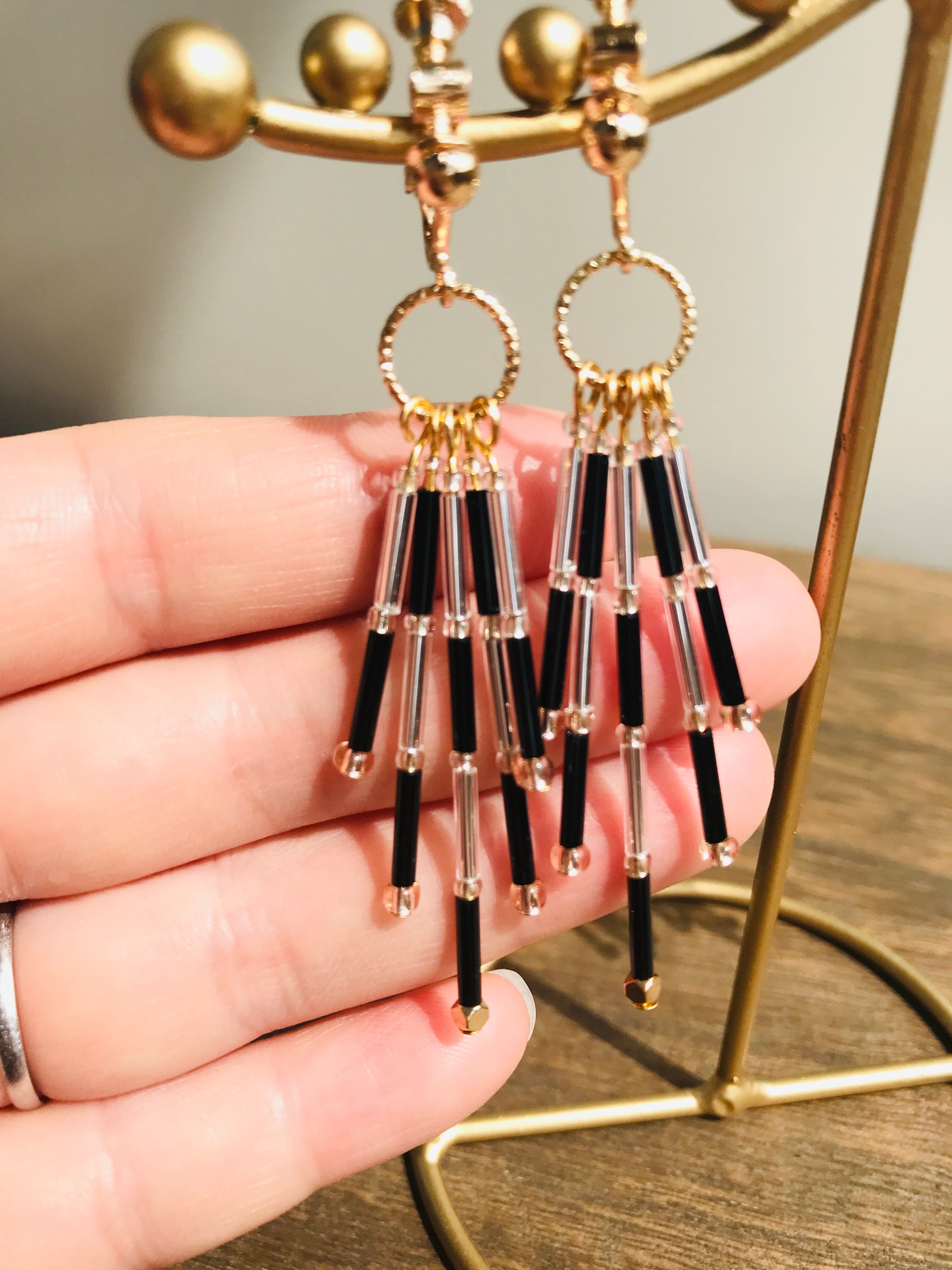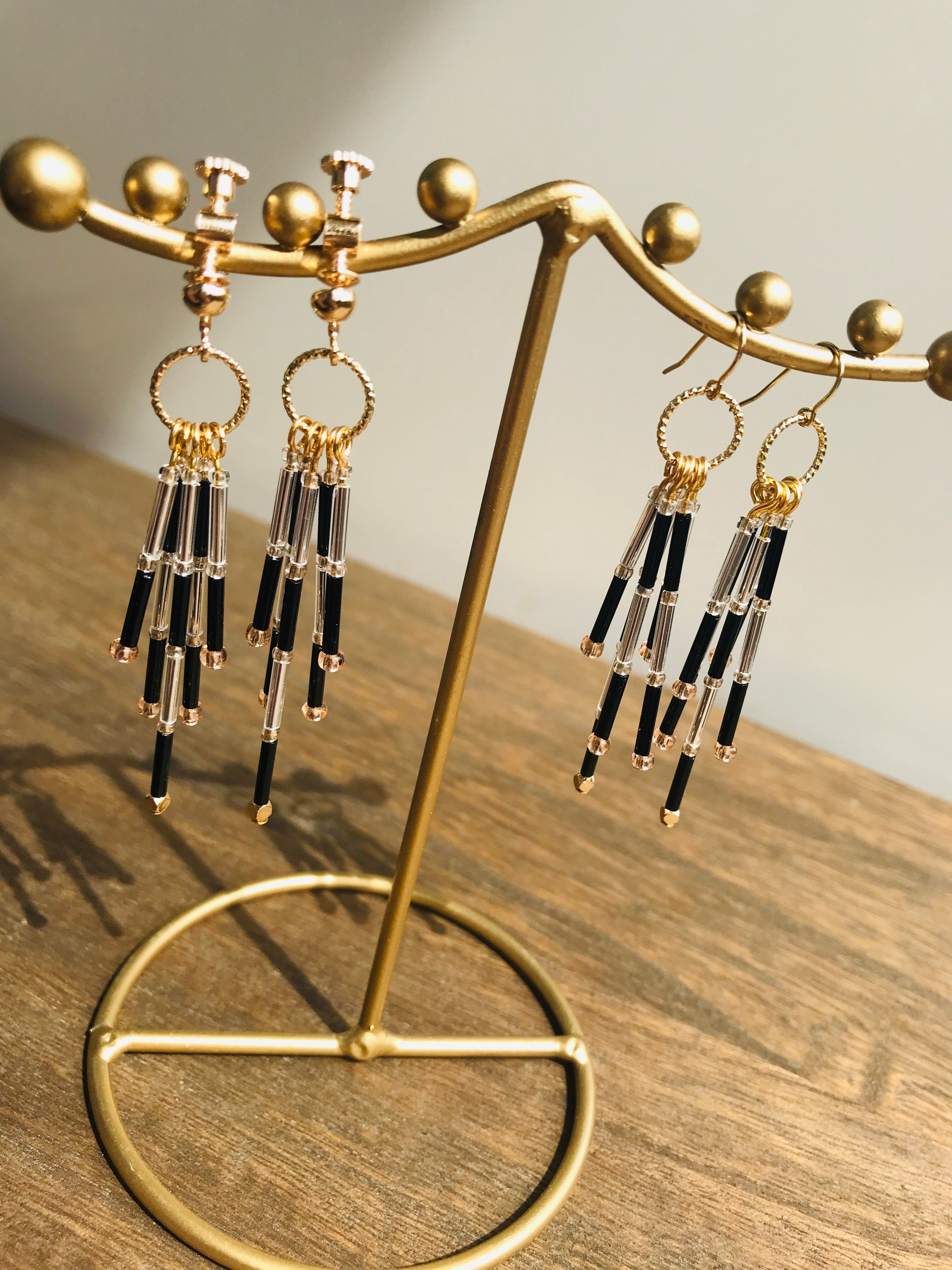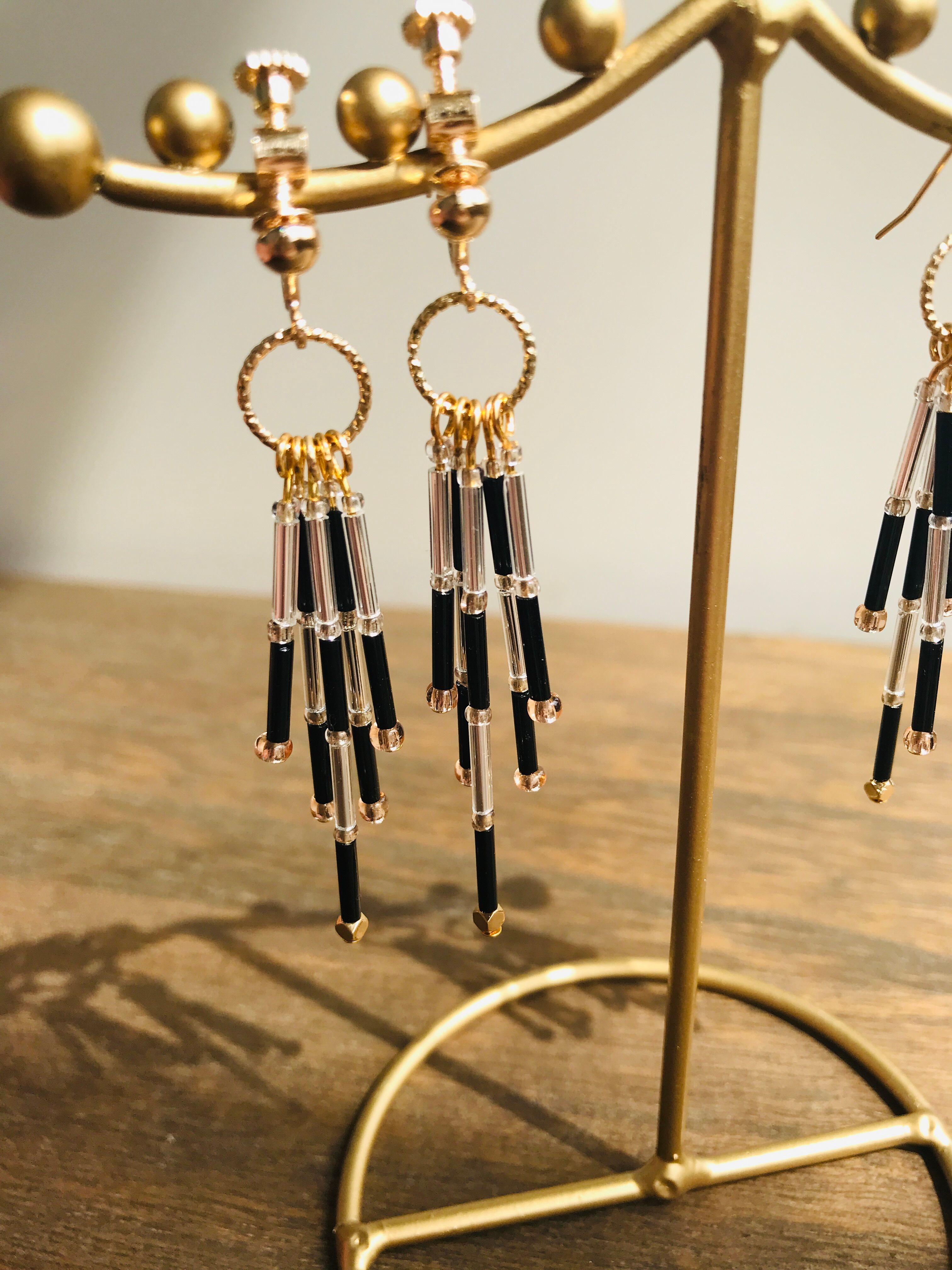 TOHO竹ビーズの素敵な光沢が耳元で際立ちます。