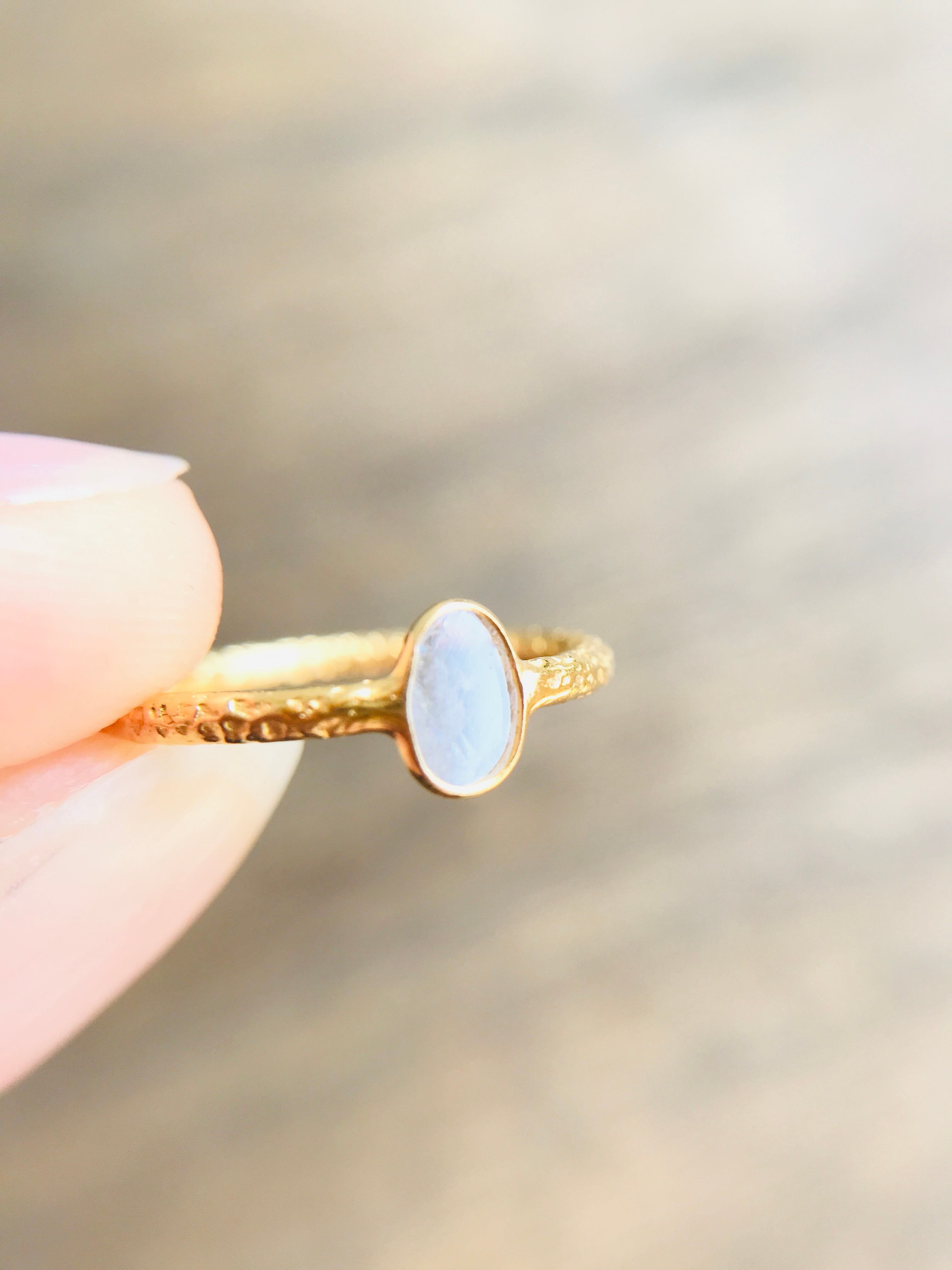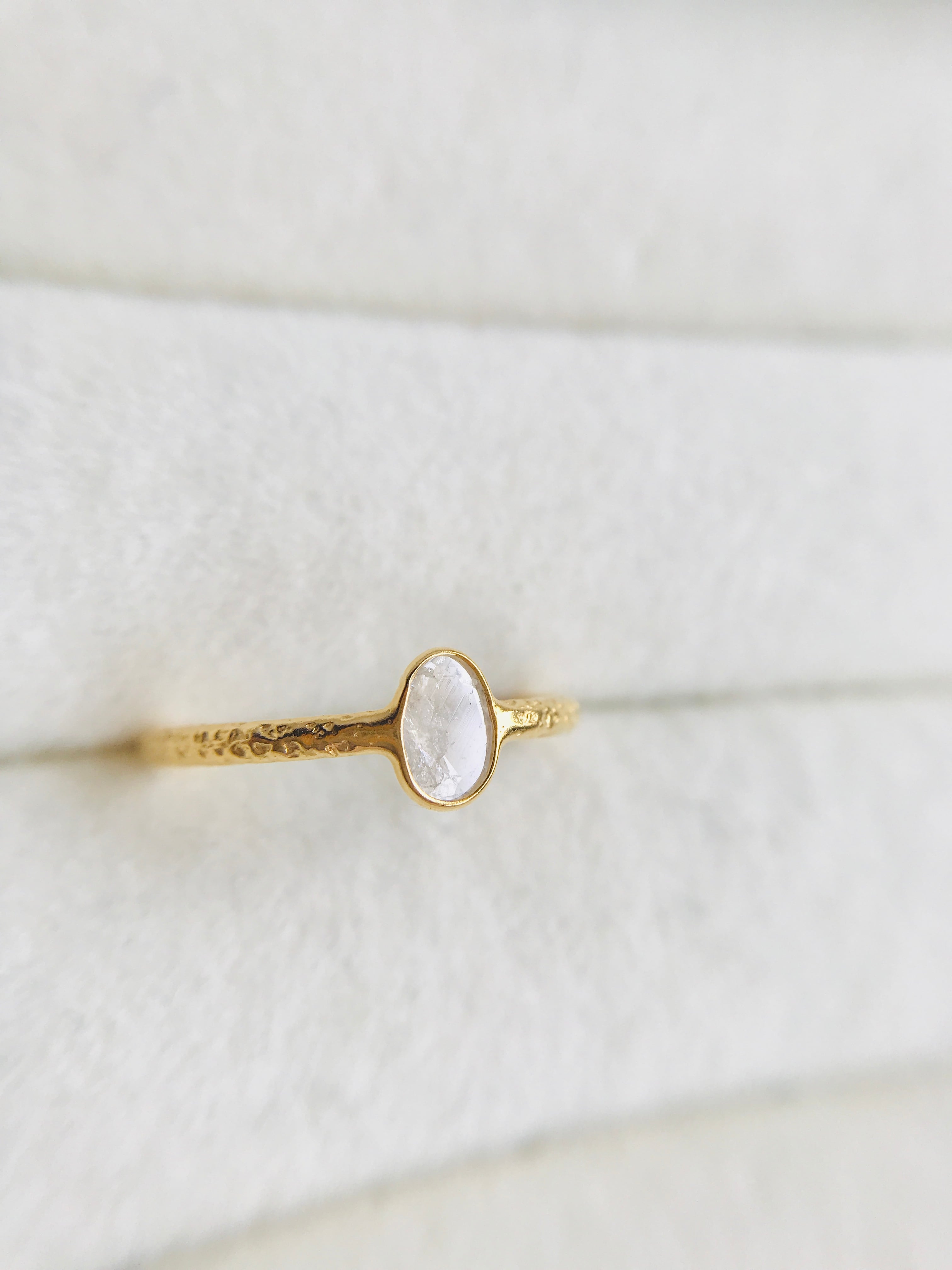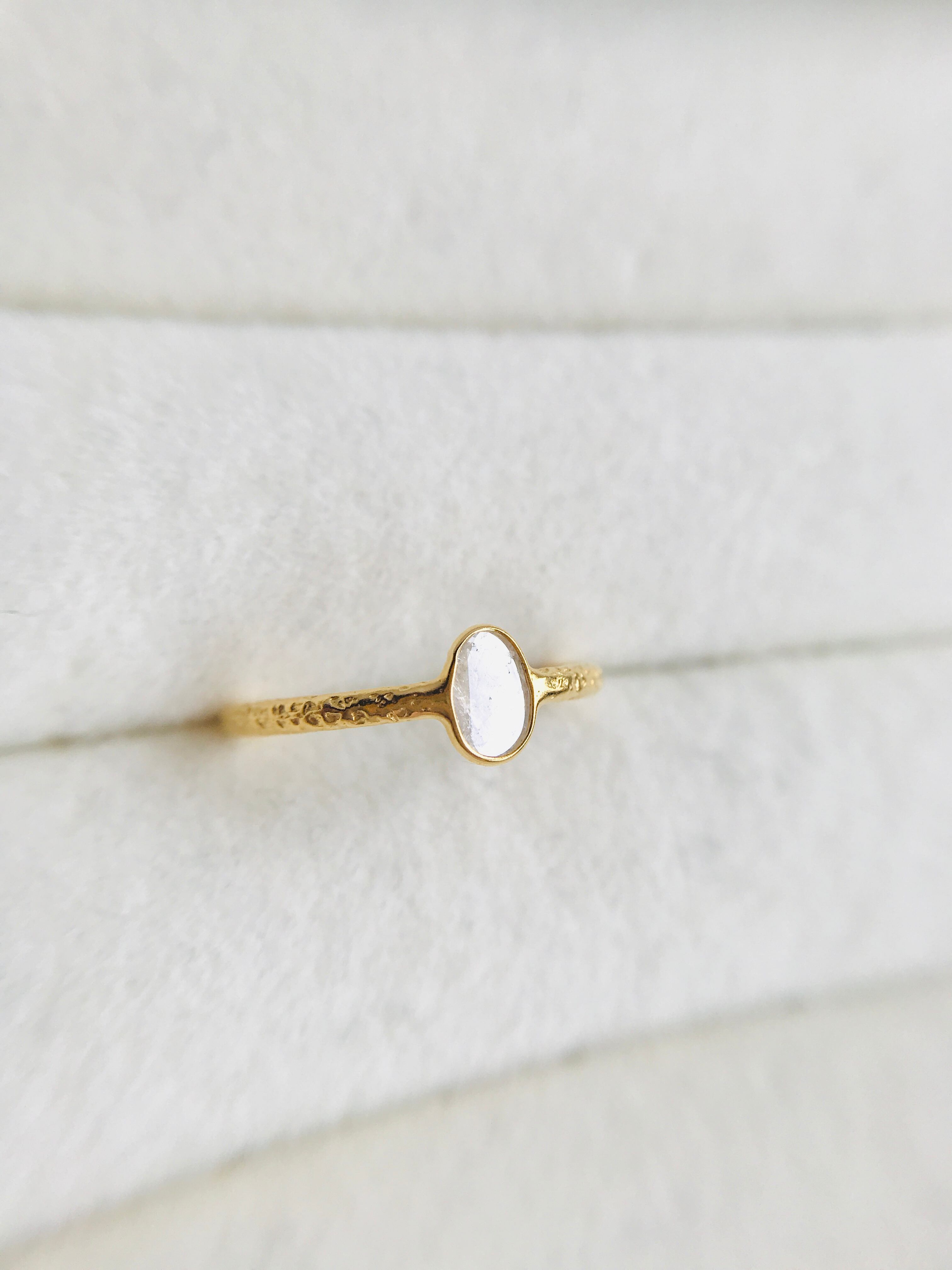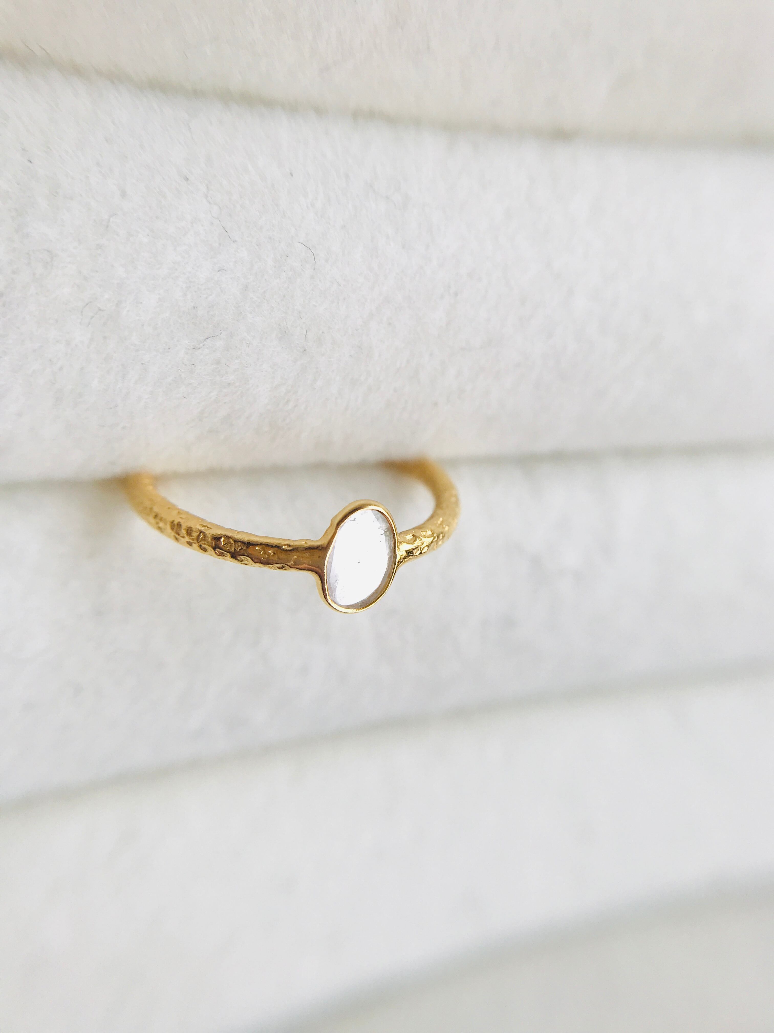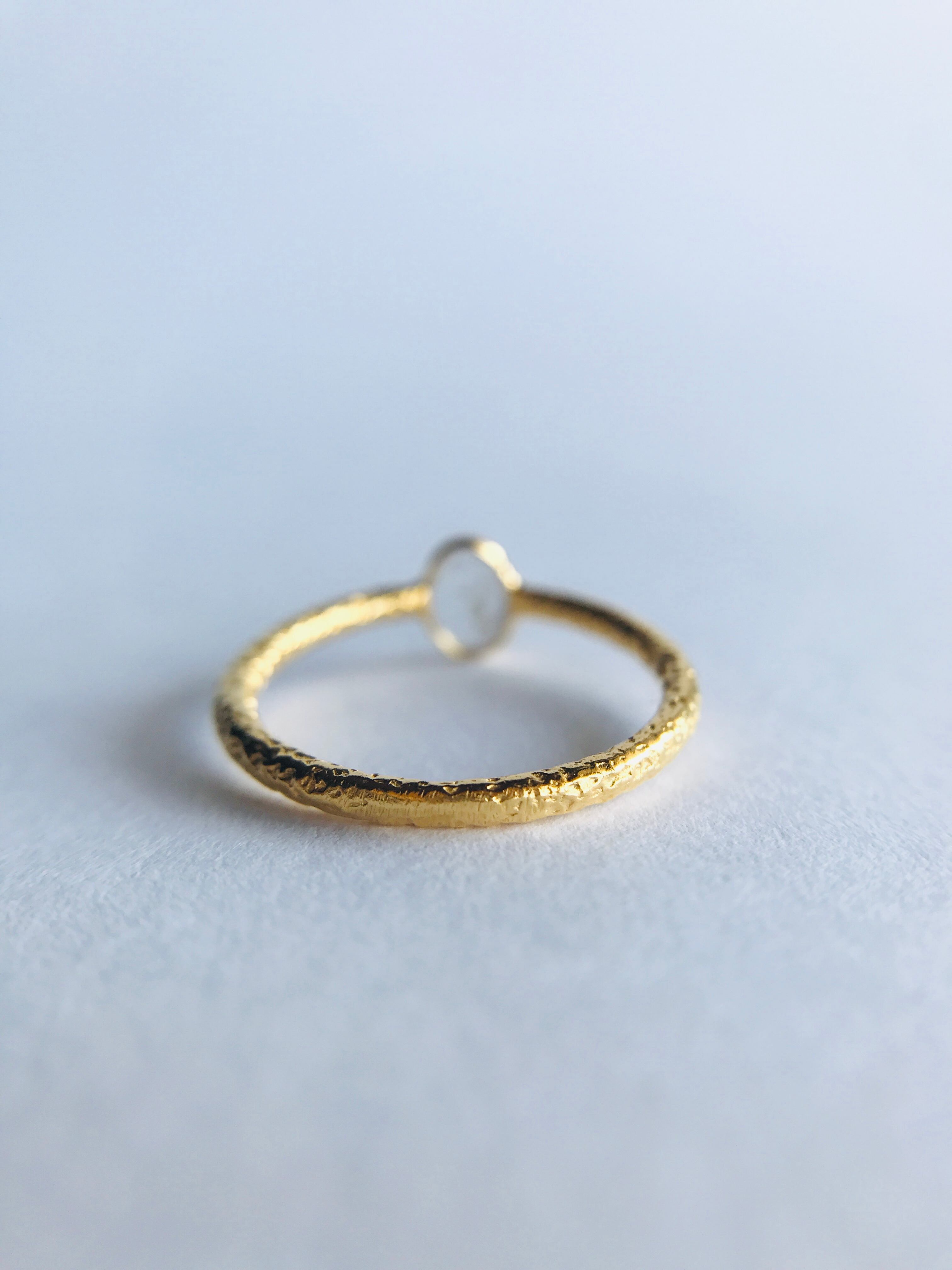 スライスダイヤは、突起が少なく指に馴染みつけごこち抜群なので、普段使いにおすすめです。18Kコーティング素材で指輪を仕上げています。