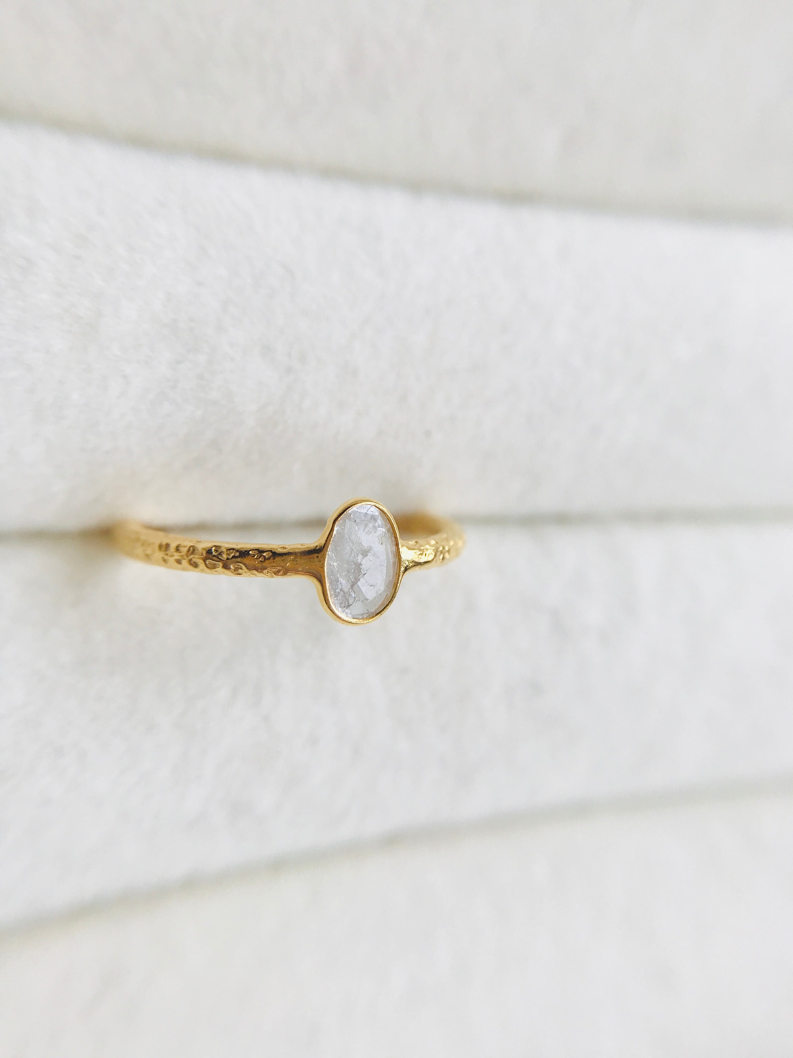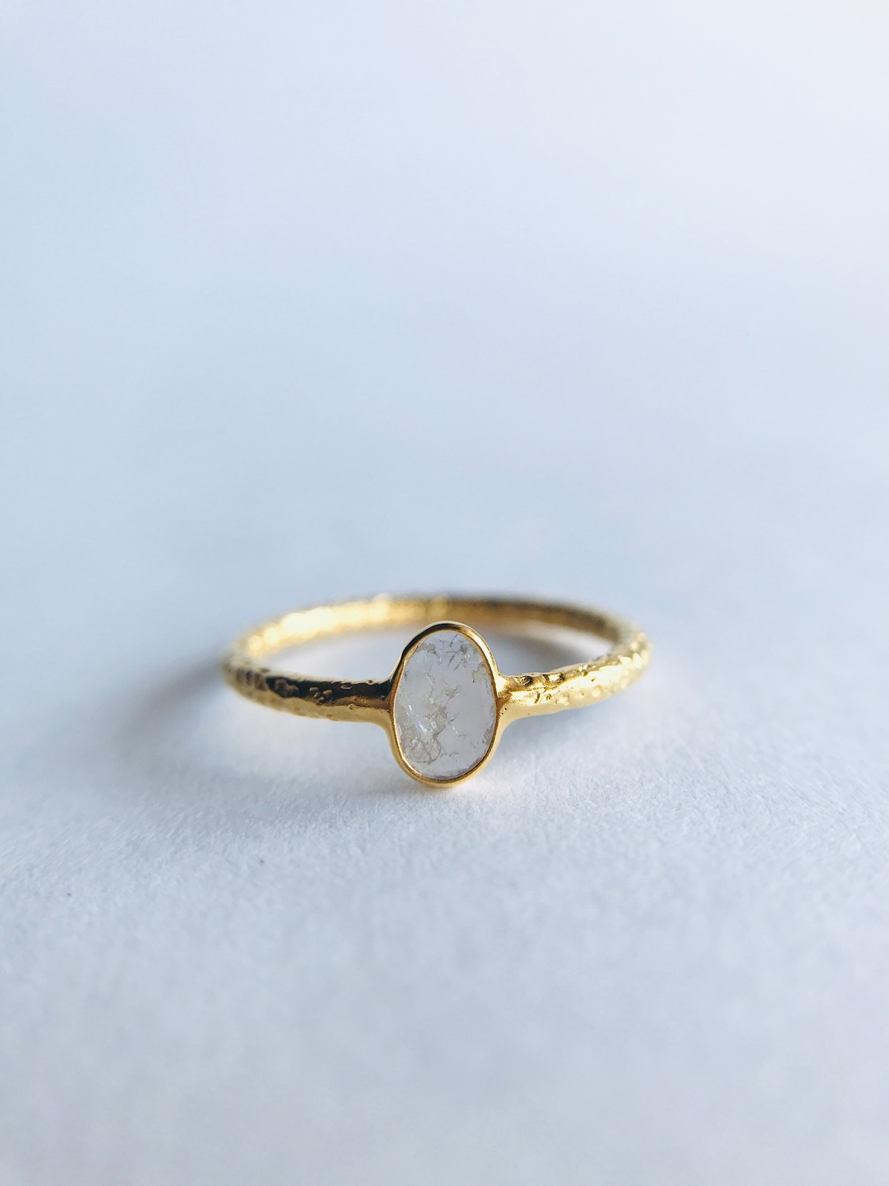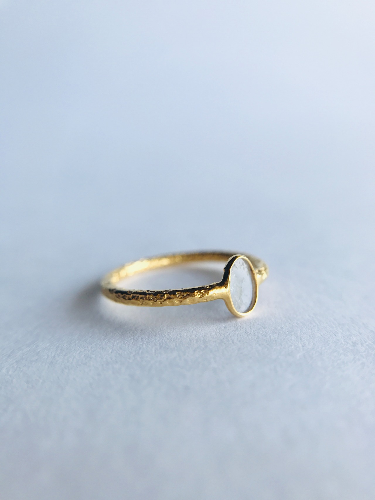 不揃いのスライスダイヤで、中に刻まれている内容物も個々なので、唯一無二のリングとして身に着けていただけます。