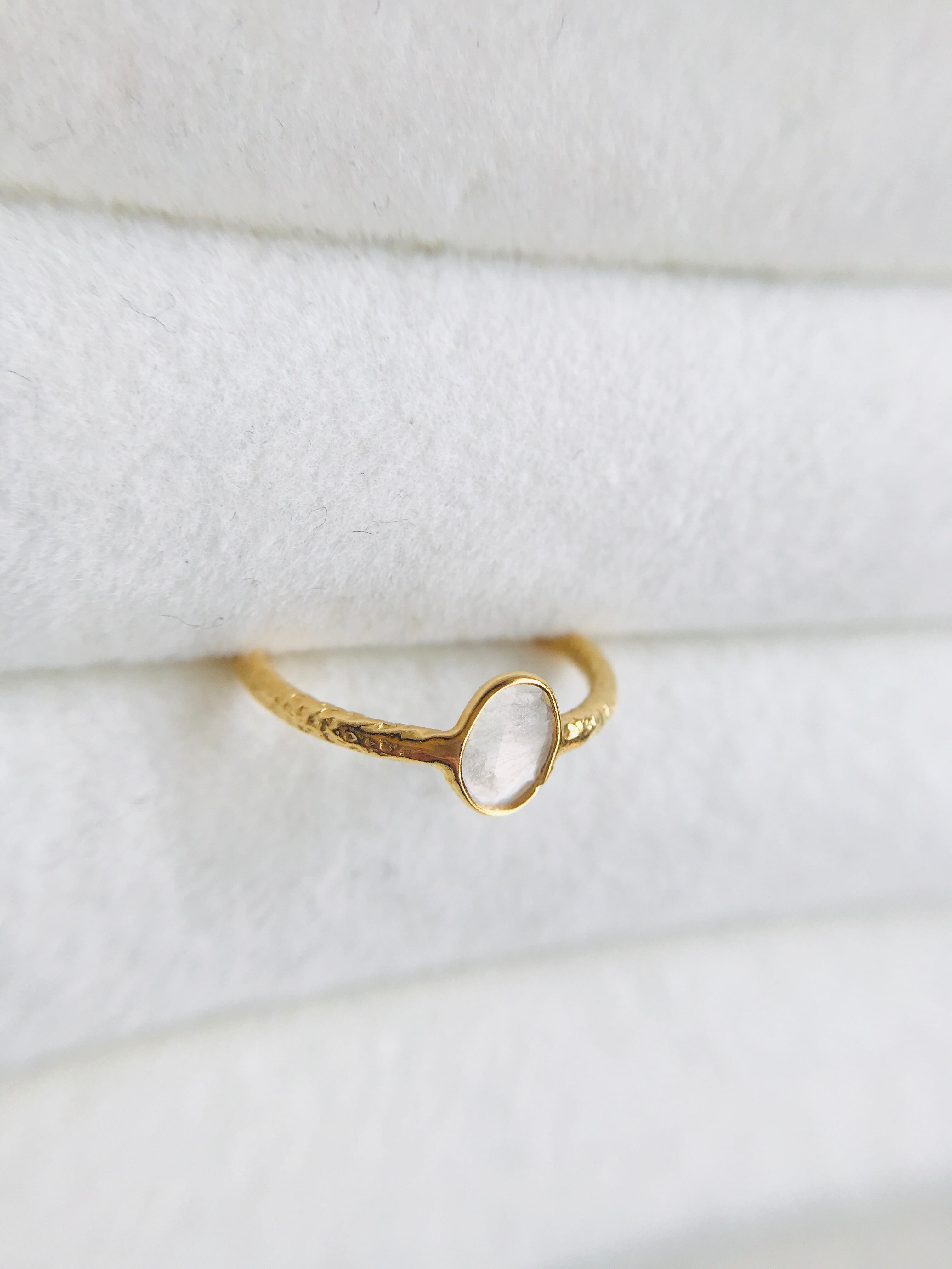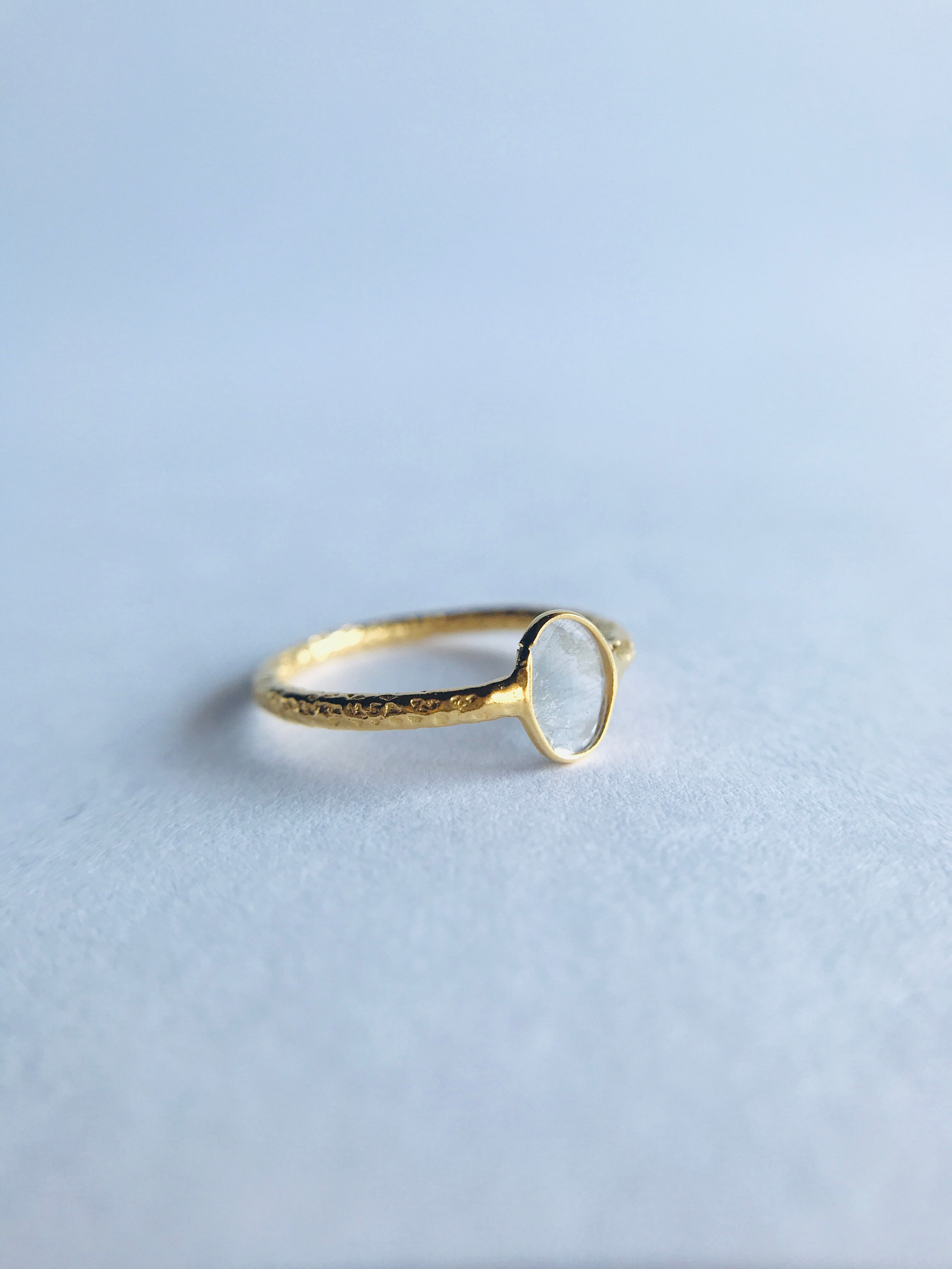 不揃いのスライスダイヤで、中に刻まれている内容物も個々なので、唯一無二のリングとして身に着けていただけます。