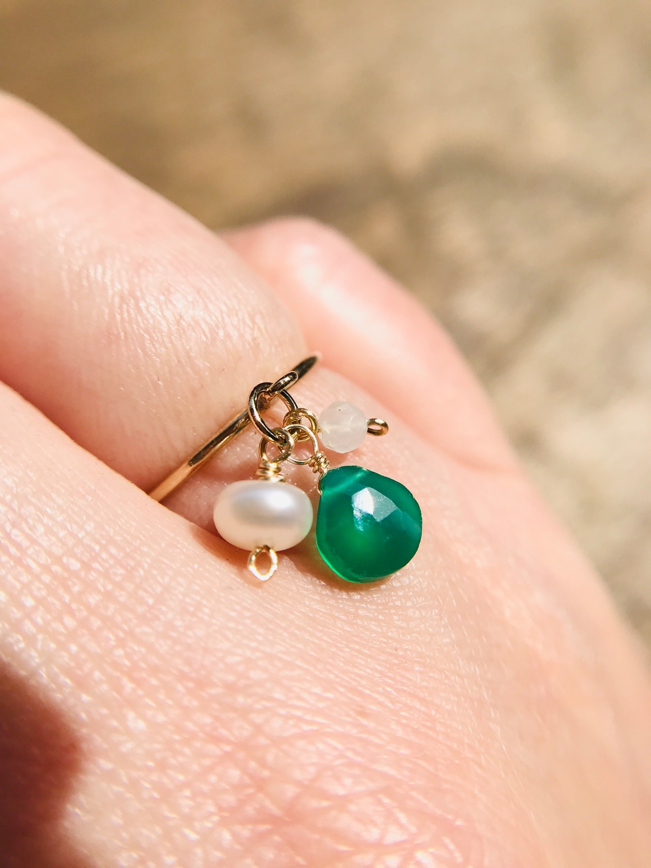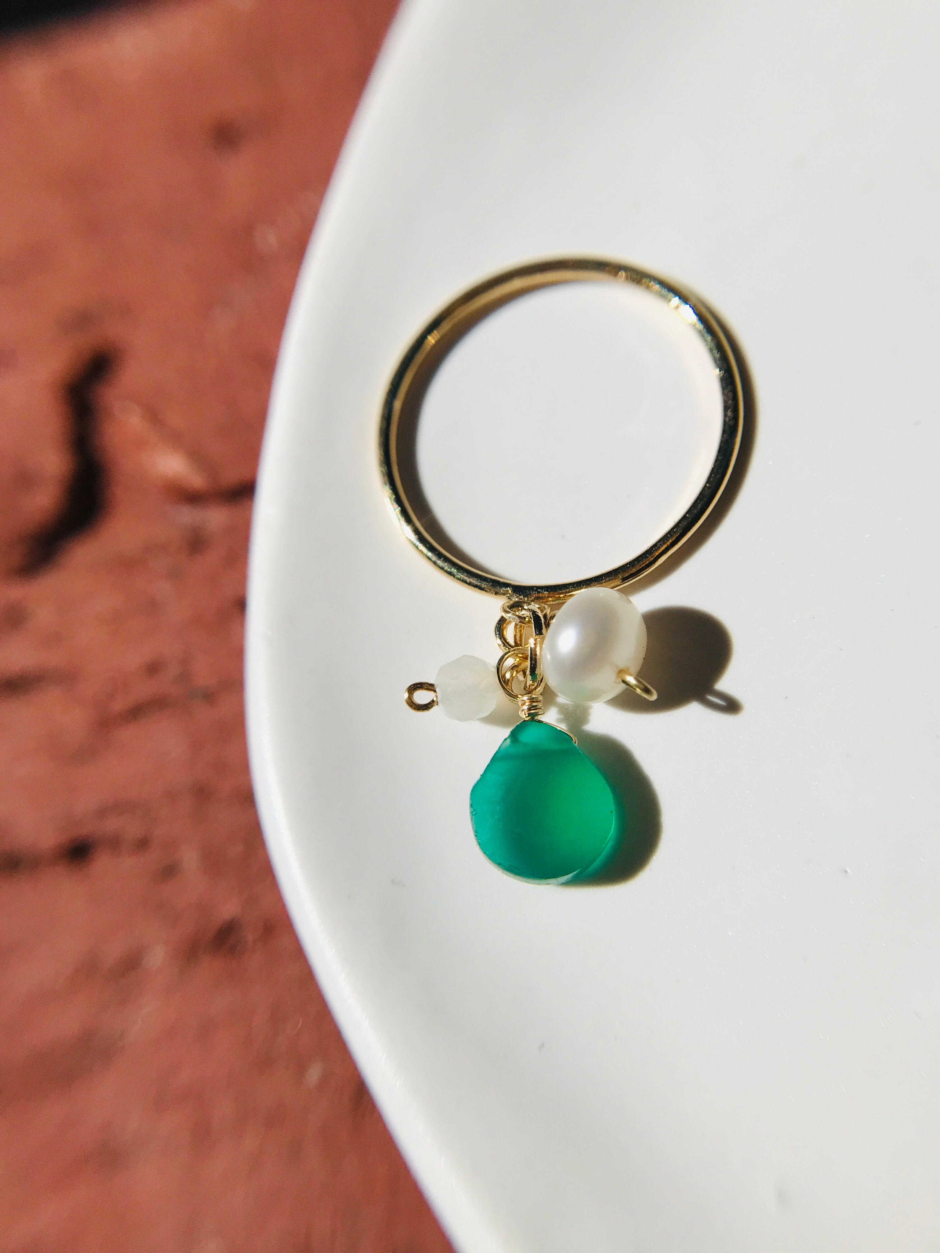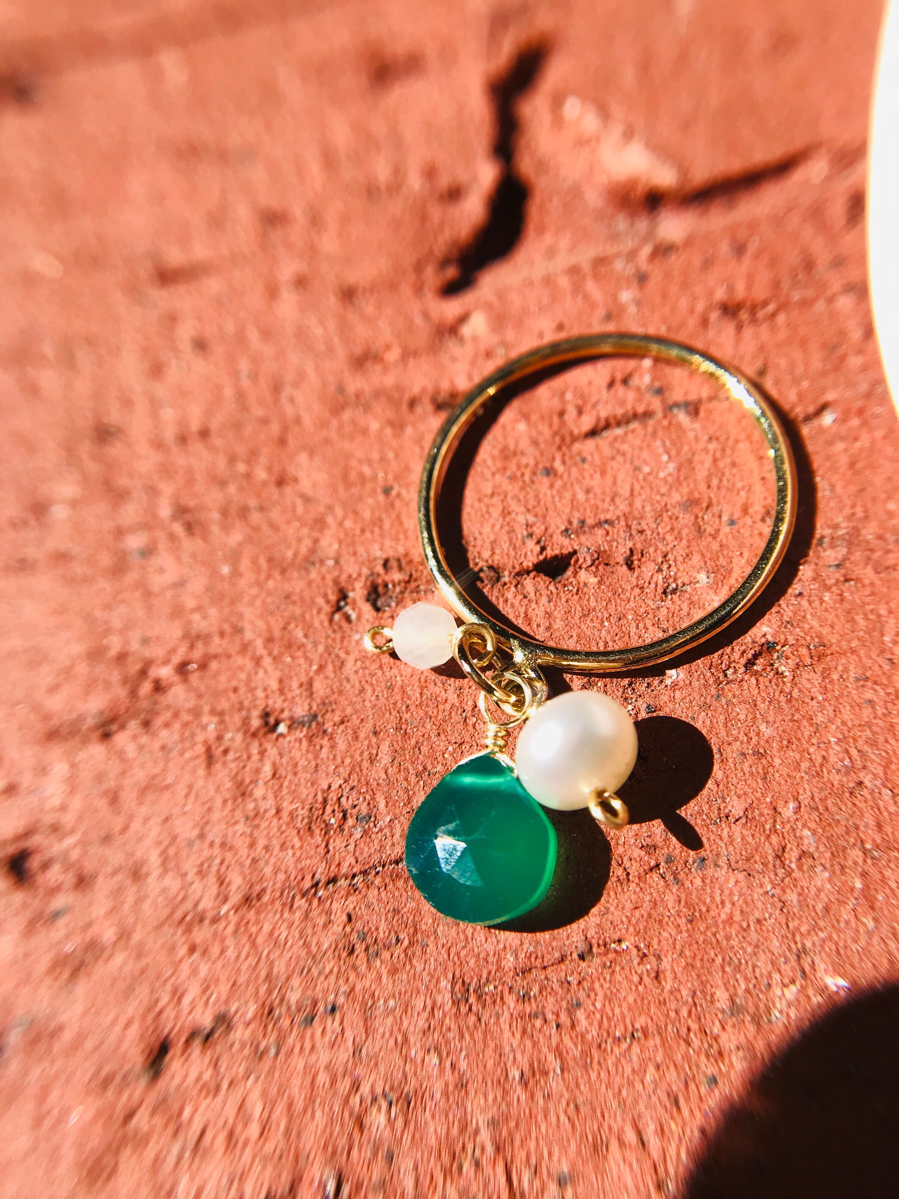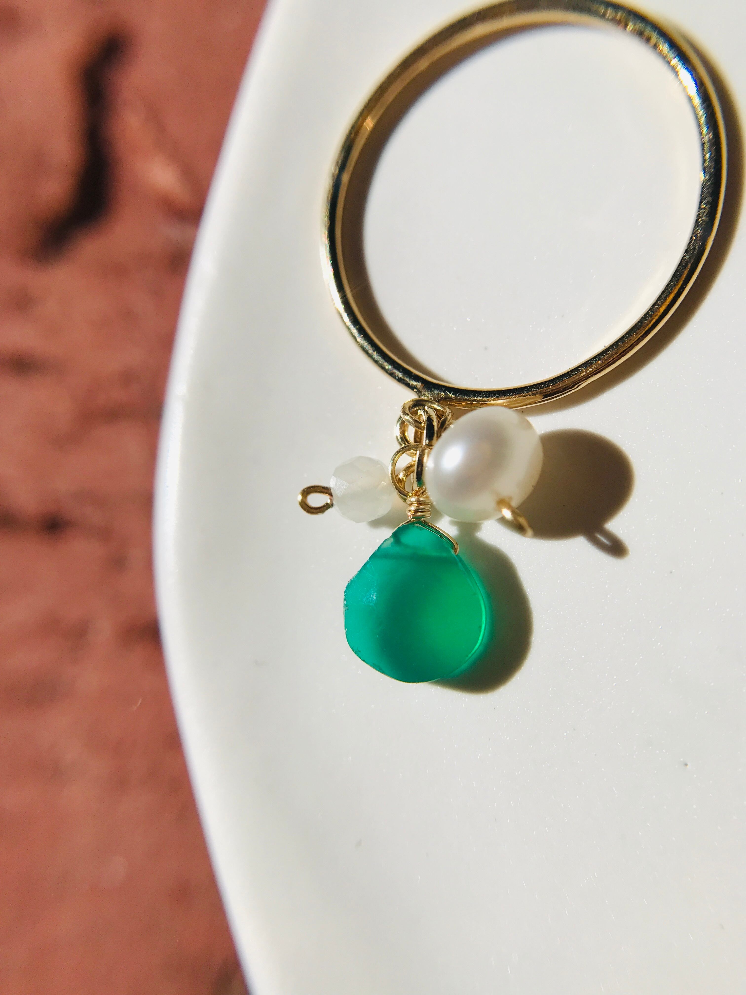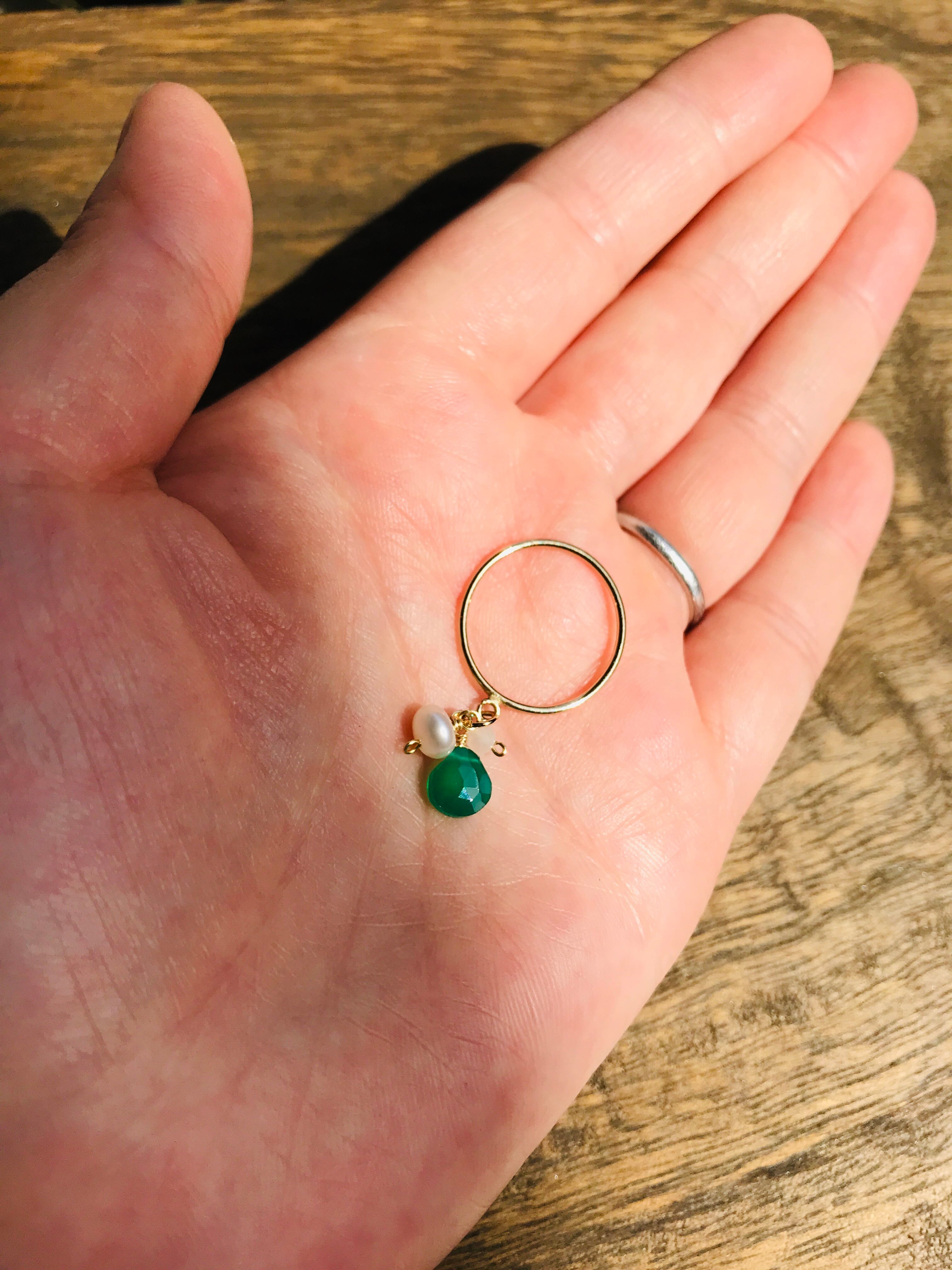 マロン型のグリーンオニキスを使ったkiranahオリジナルリングです。