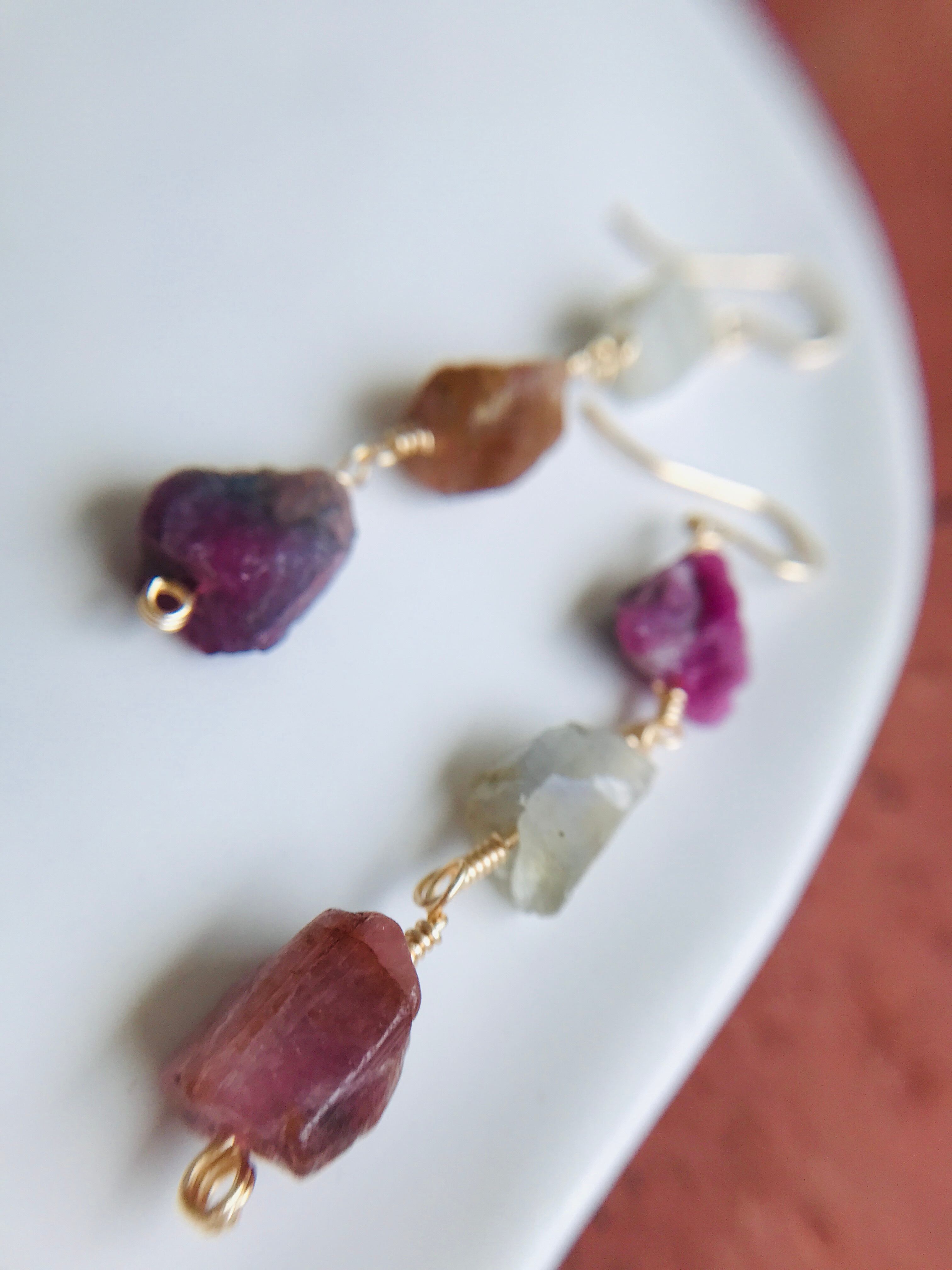 インド「ジャイプール」で直接買付した、トルマリンの原石をピアスにしたkiranahオリジナル商品です!