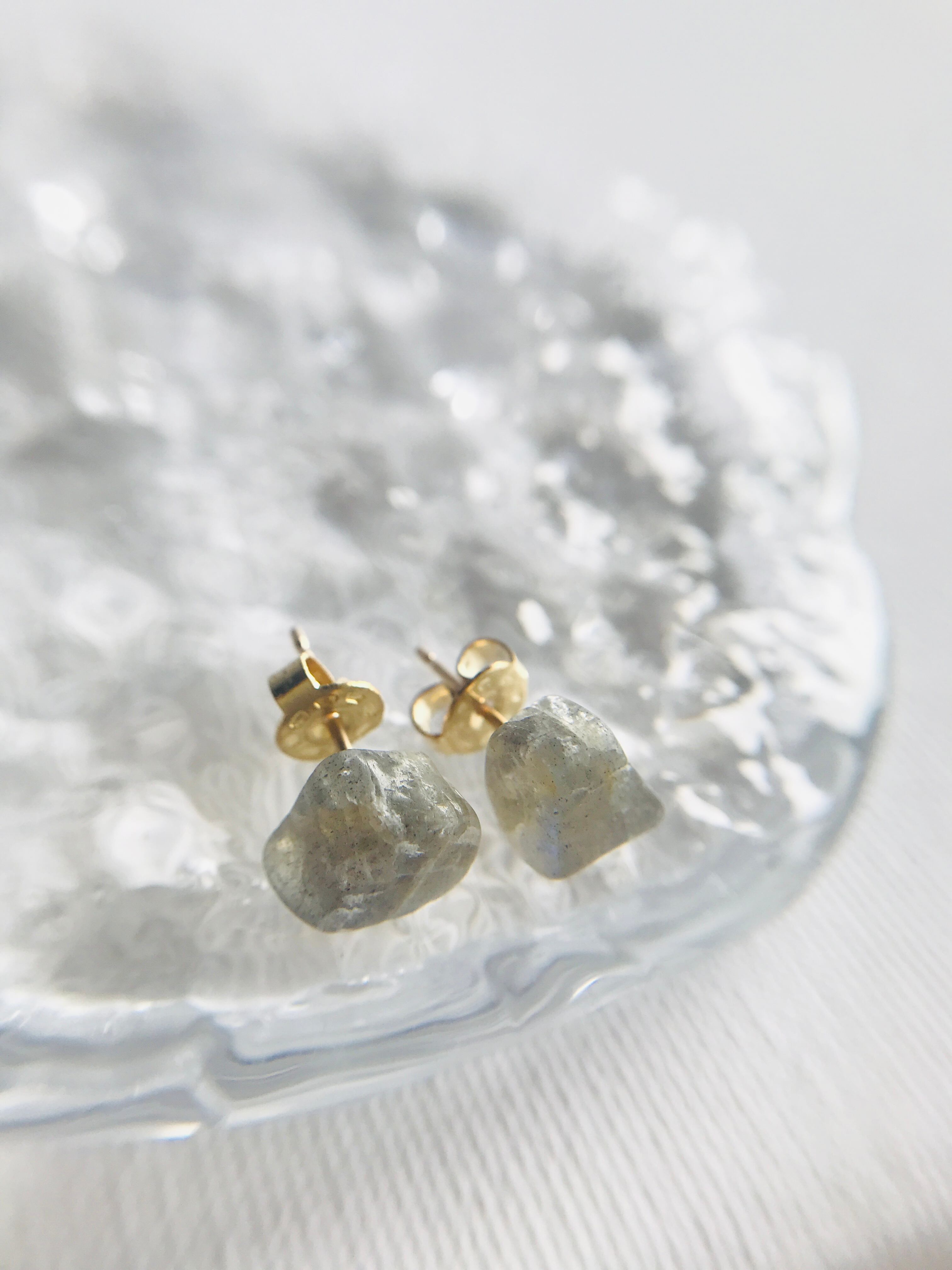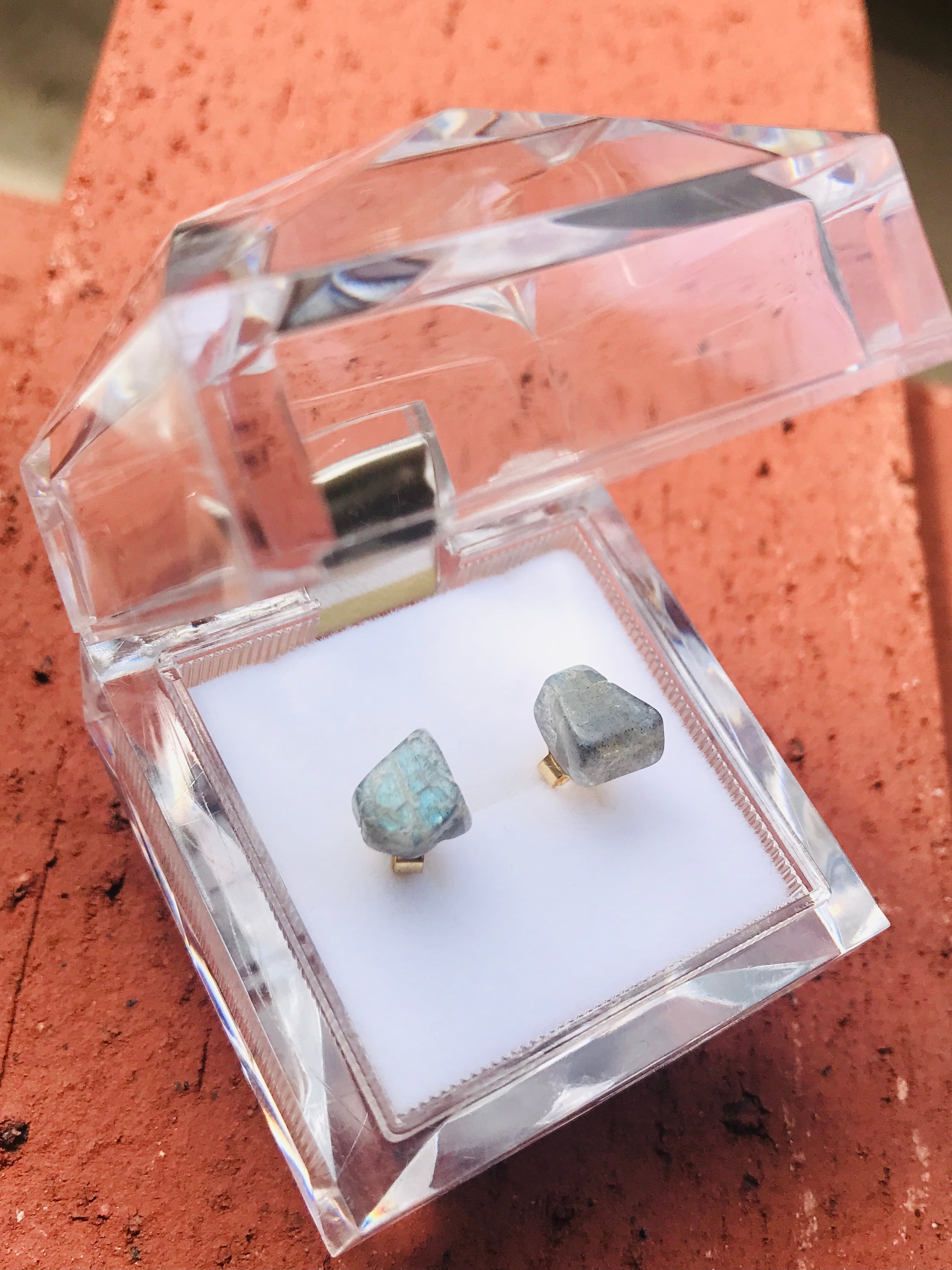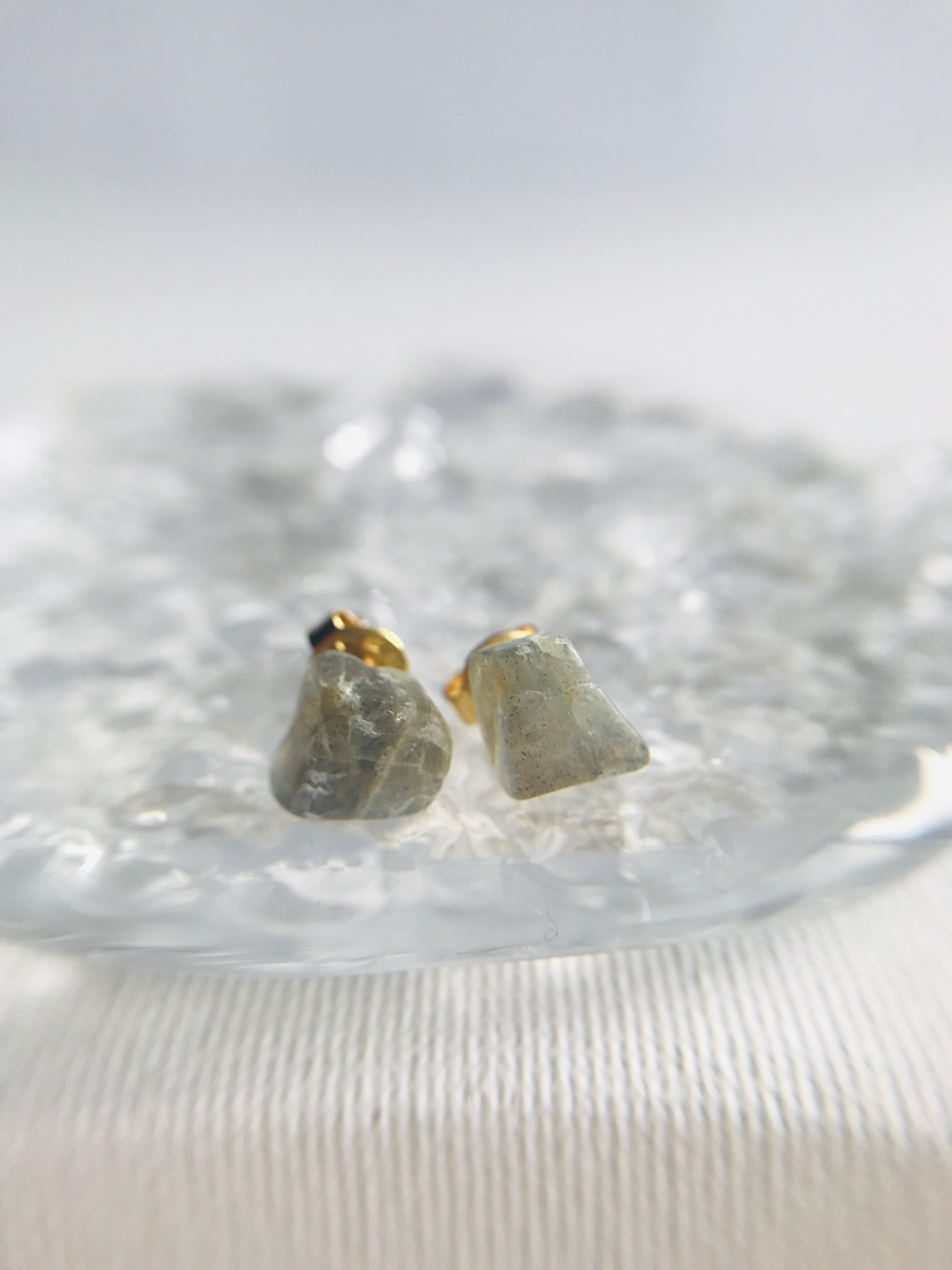 kiranah(キラナ)の原石ピアスは1つ1つ、きれいに見えるカットを探し、リューターで時間をかけて穴をあけてピアスにしています。
