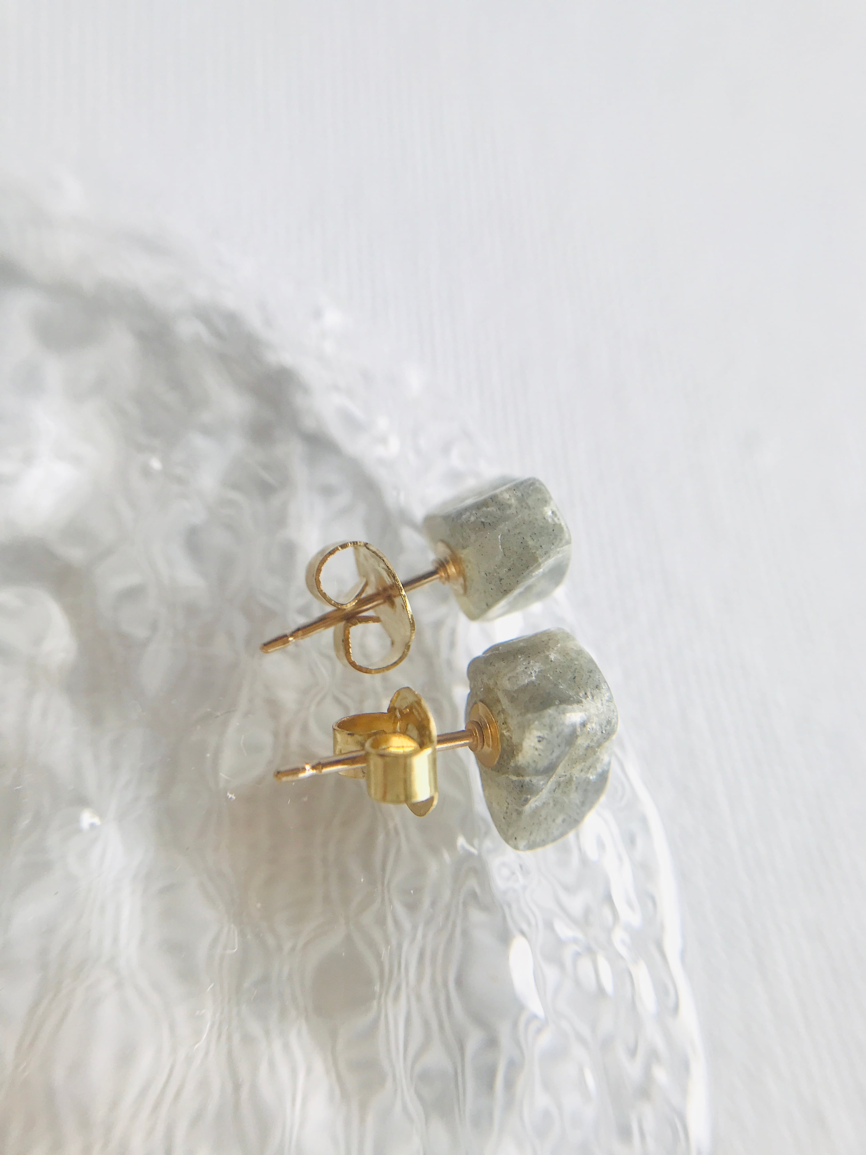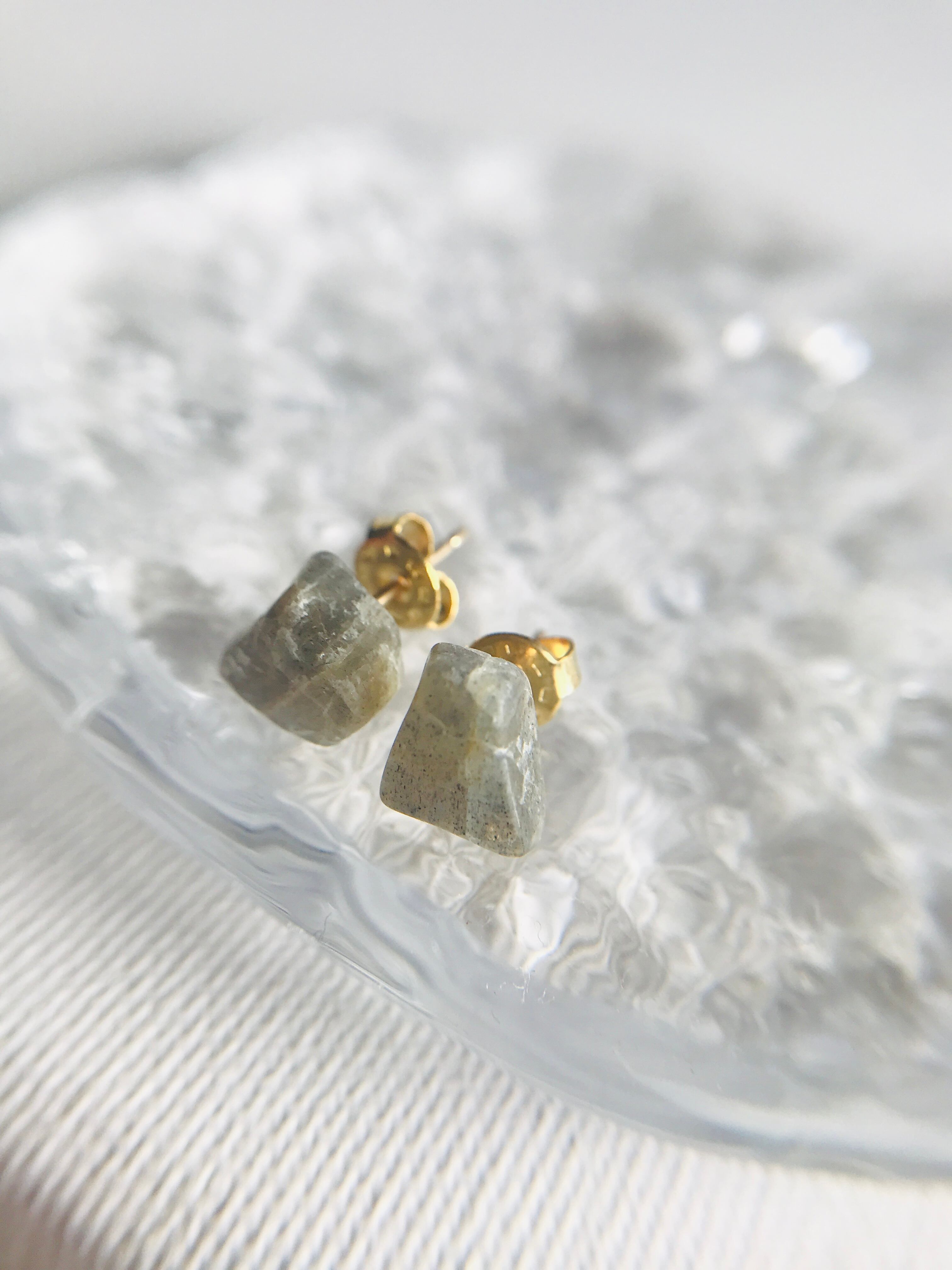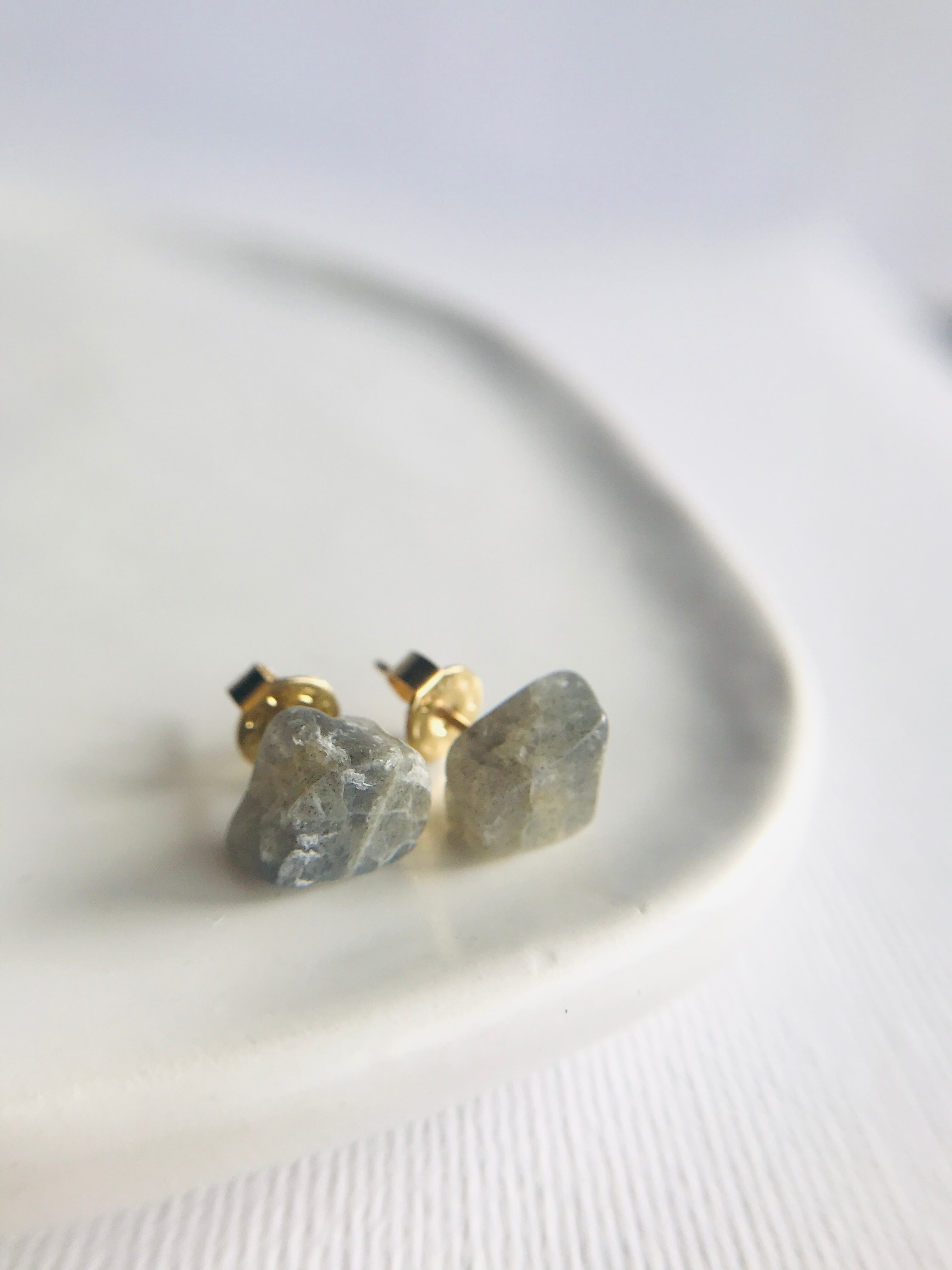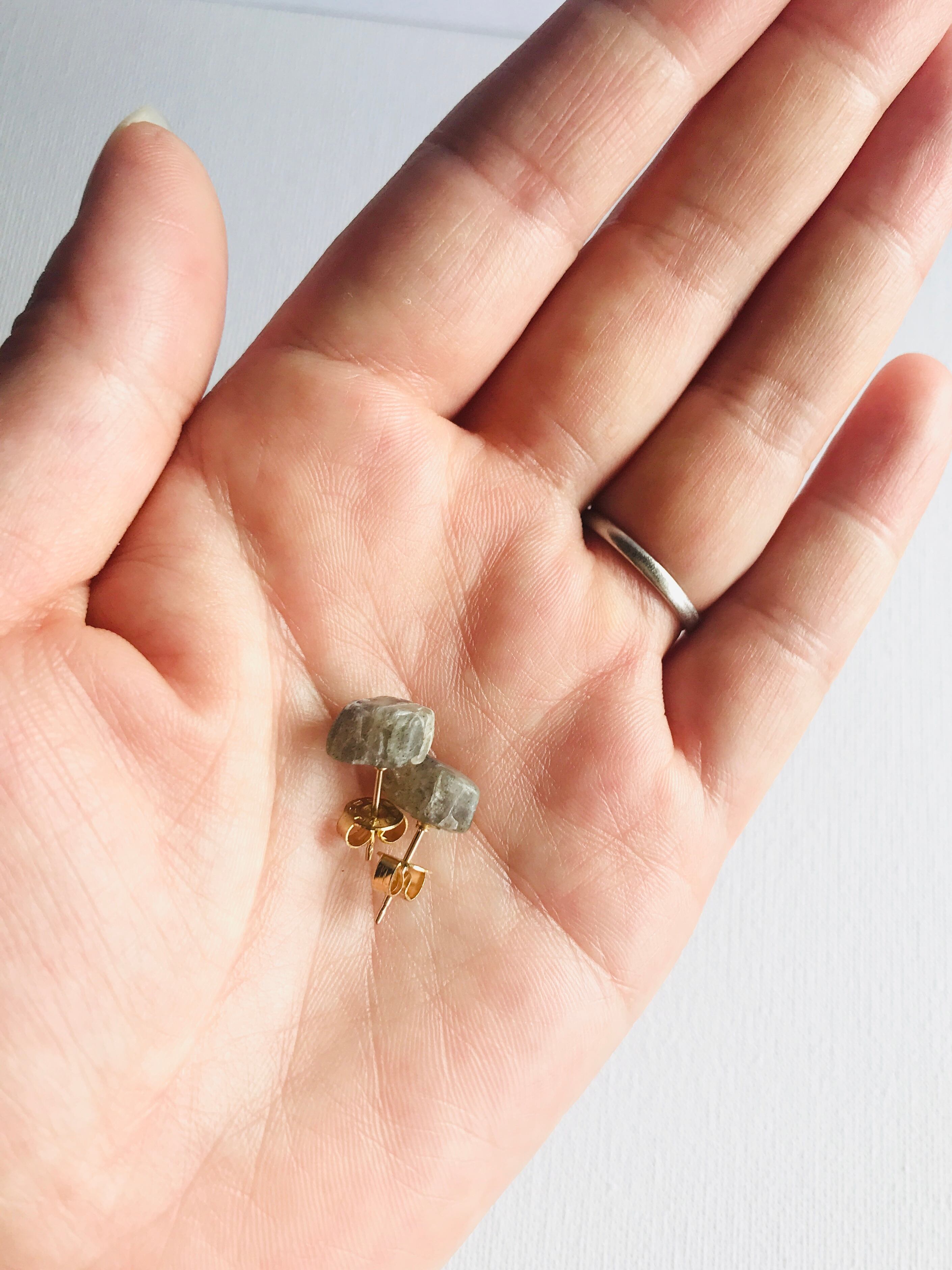 kiranah(キラナ)の原石ピアスは1つ1つ、きれいに見えるカットを探し、リューターで時間をかけて穴をあけてピアスにしています。
