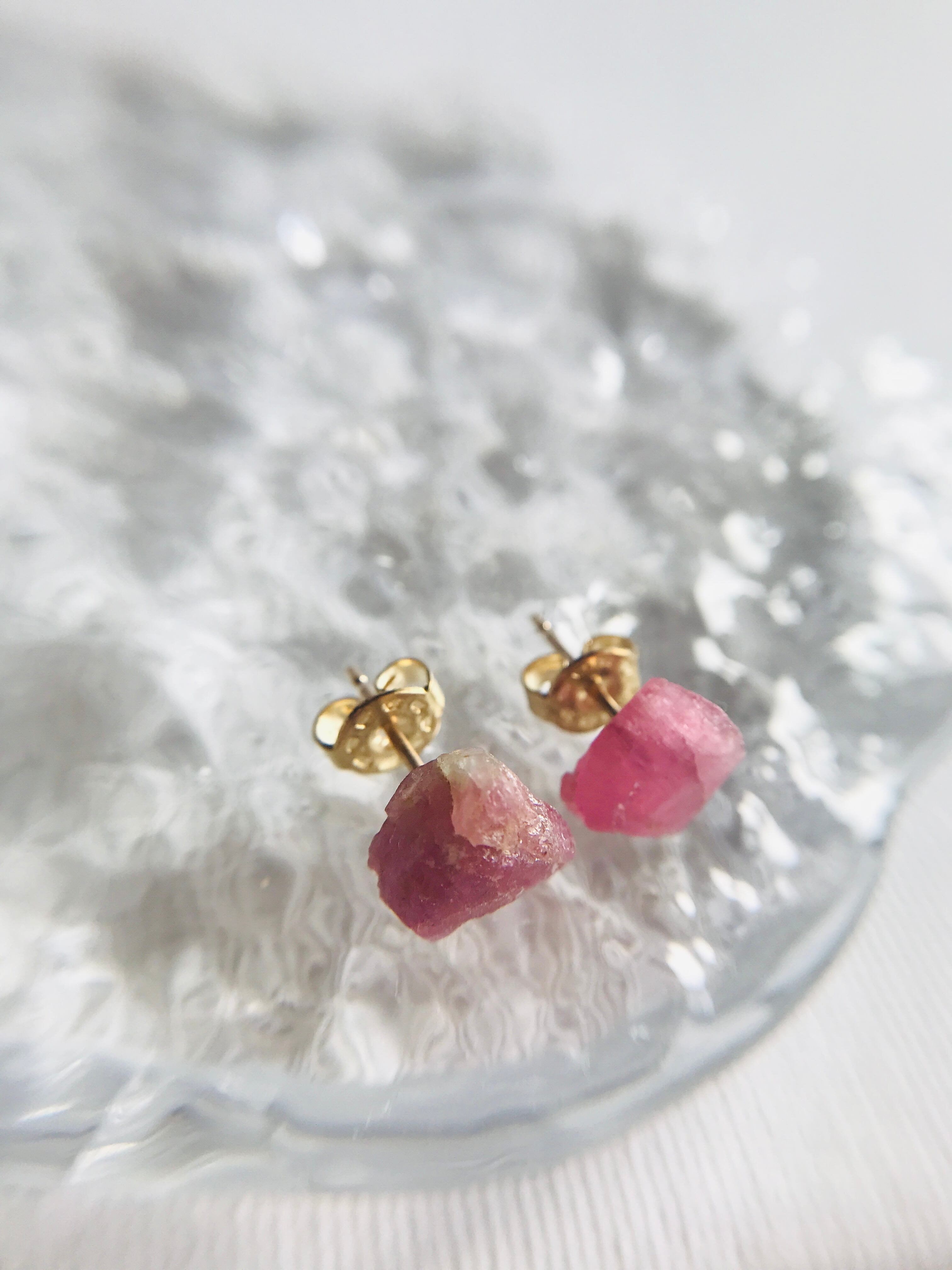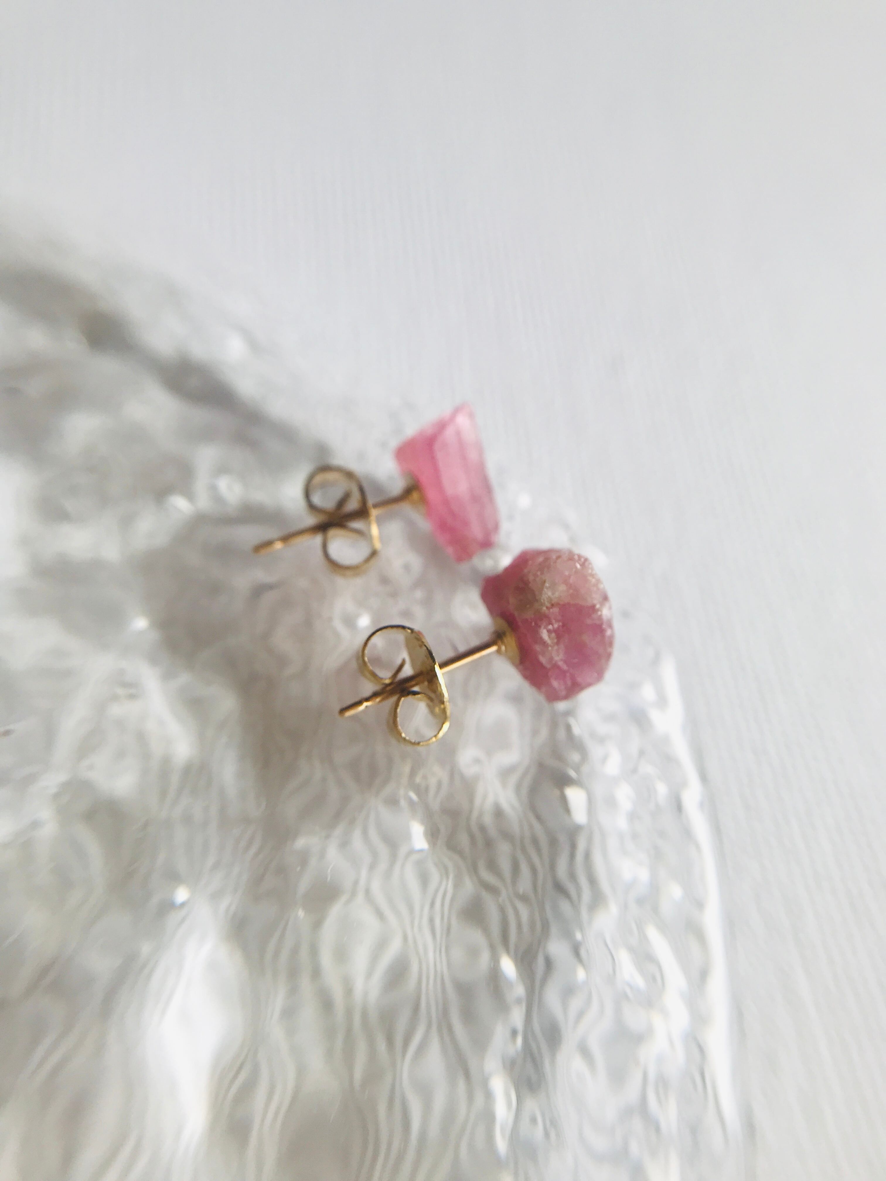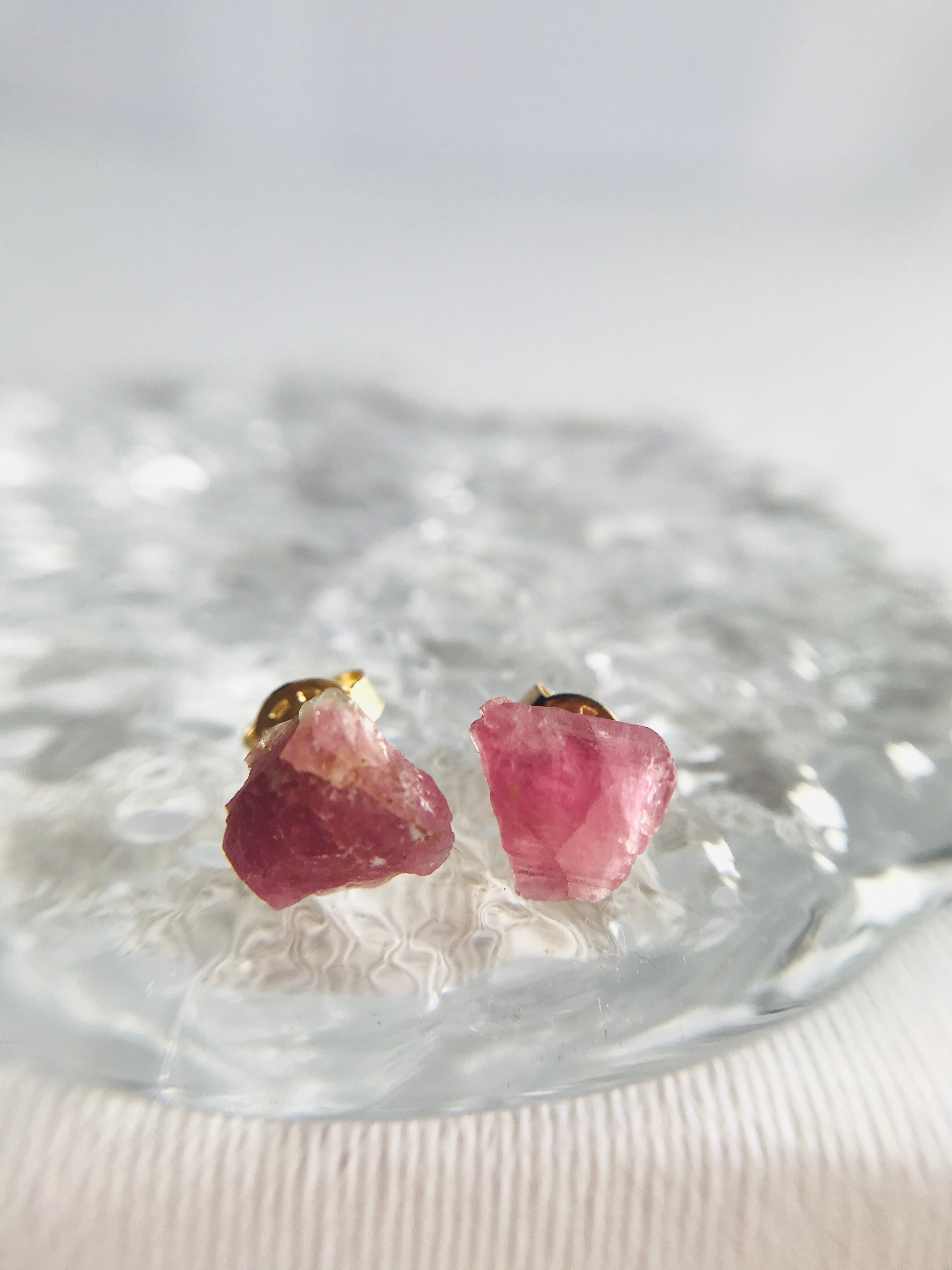 原石ピアス トルマリン 14kgf