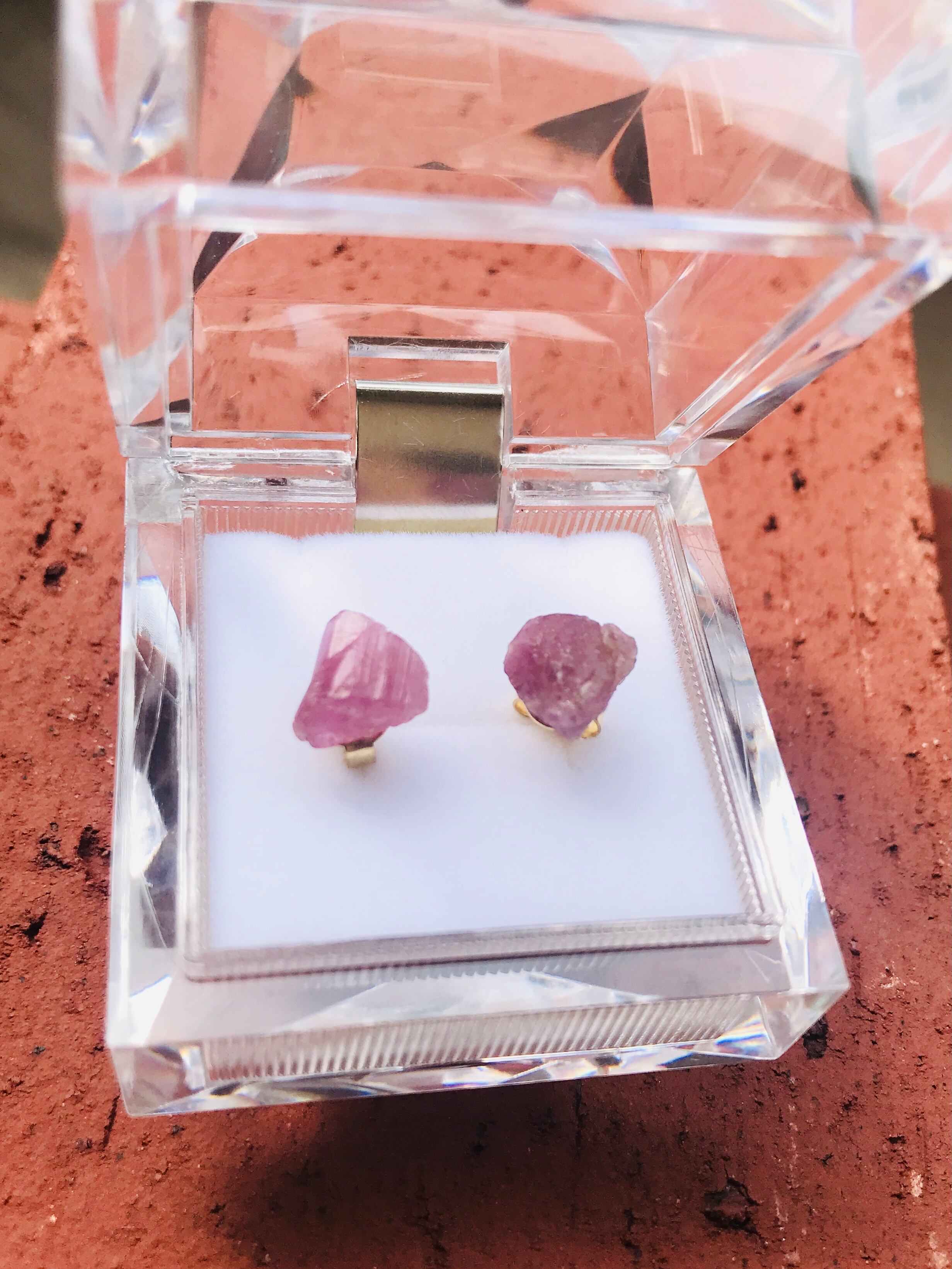 kiranah(キラナ)の原石ピアスは1つ1つ、きれいに見えるカットを探し、リューターで時間をかけて穴をあけてピアスにしています。